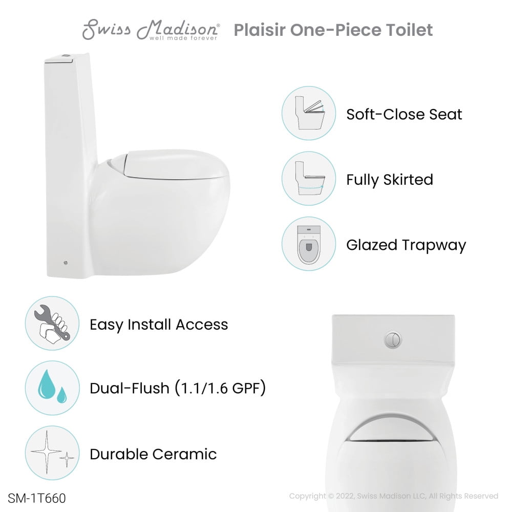 Plaisir One-Piece Elongated Toilet Dual-Flush 1.1/1.6 gpf