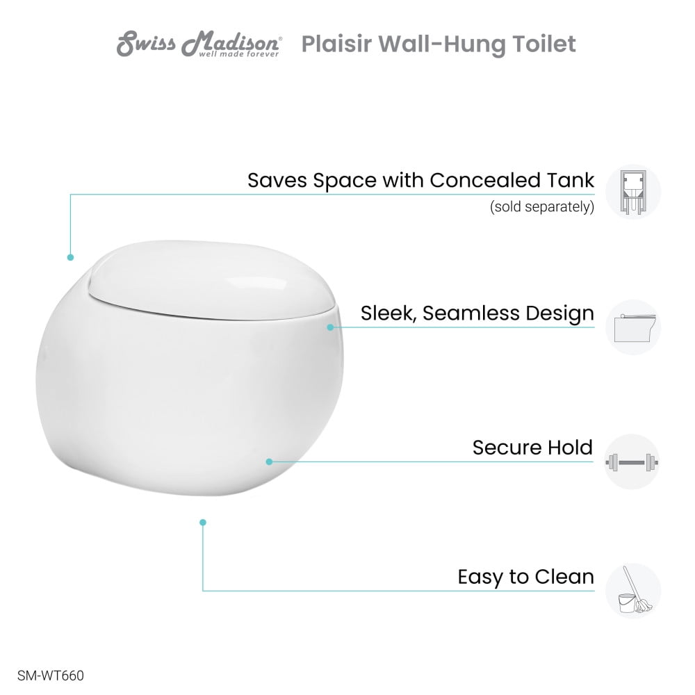 Space Saving: With the water tank in the wall, the Wall-Hung toilet saves space in your bathroom and is aesthetically pleasing in design. Weight Capacity: 500 Pounds Standard Elongated Bowl: Elongated bowl provides extra room and comfort. Durable Non-Porous Scratch Resistant Ceramic: Developed from ceramic, that is scratch-resistant and non-porous, providing a durable and reliable option that can withstand routine use. Soft Close and Quick Release Seat: Provides a silent and gentle closing mechanism for added convenience and safety. With just the push of a button, the seat detaches completely for a thorough cleaning. Standard Height: Between 15-17 inches, the standard height toilet is designed with ergonomic considerations, offering optimal comfort to users of all ages and body types. Required Components: Combined with the In-Wall Carrier tank system and the Actuator flush button; Sold separately. Collection: Part of the Plaisir Collection, explore additional products in this collection to complete the room.