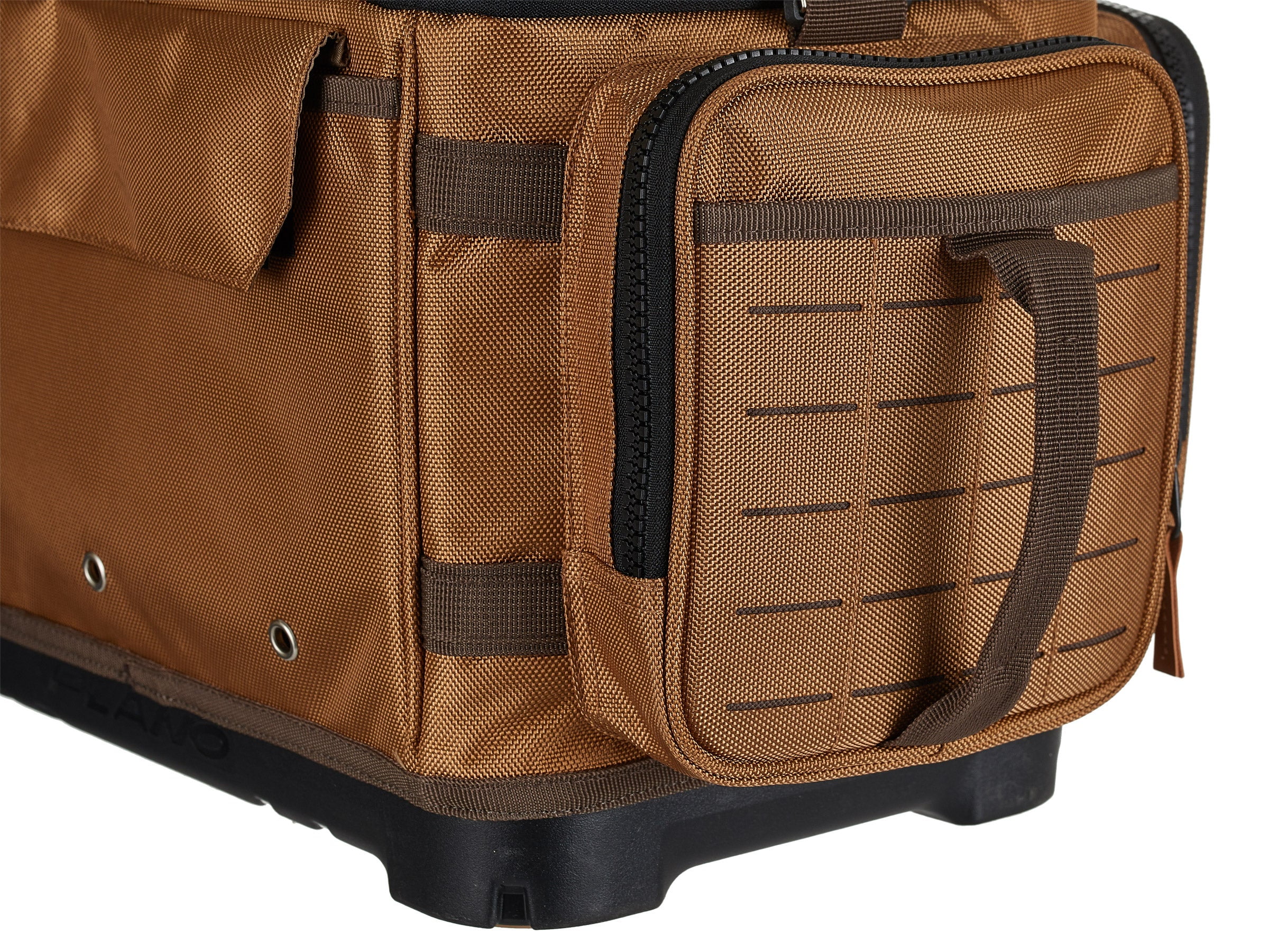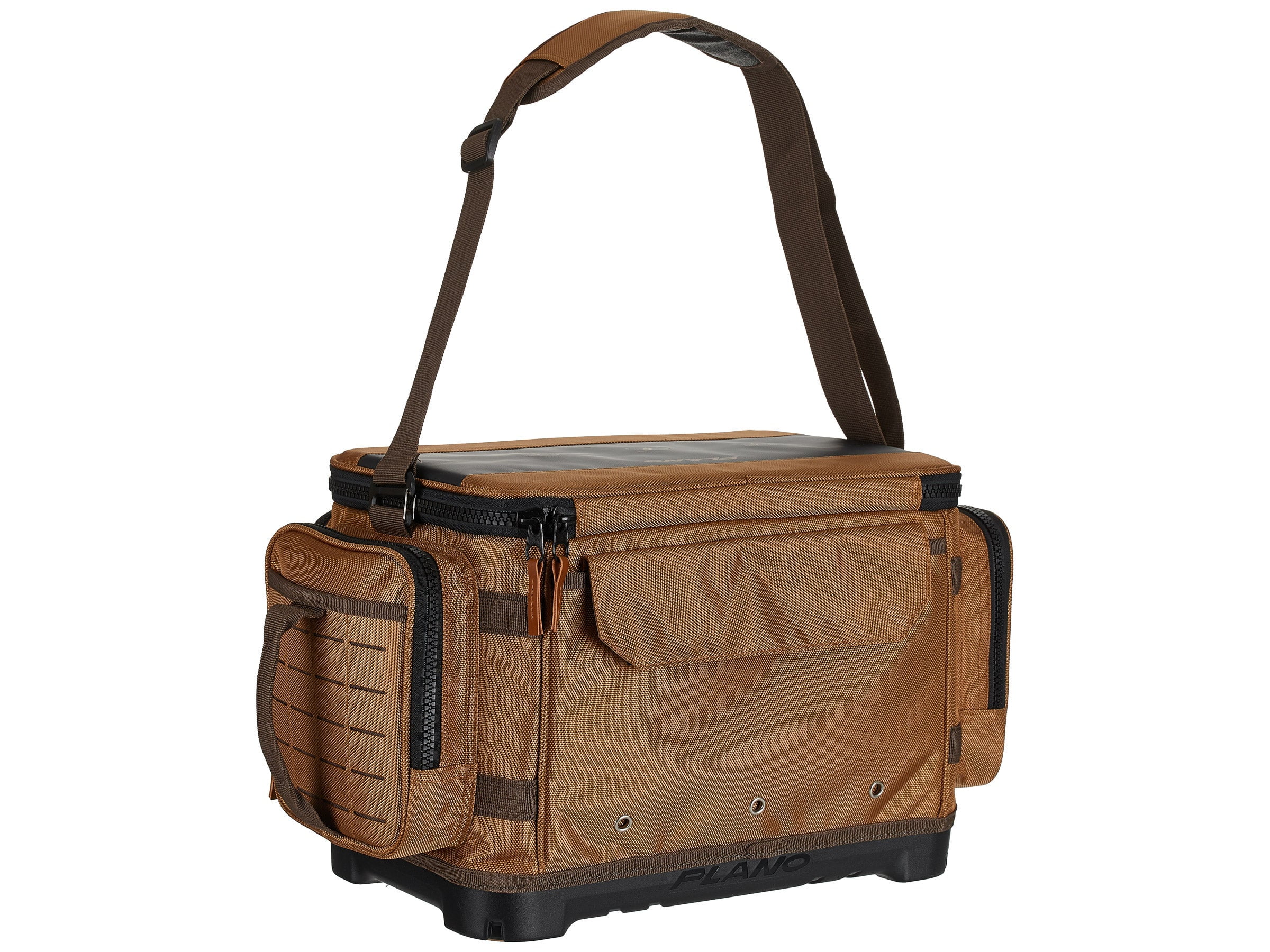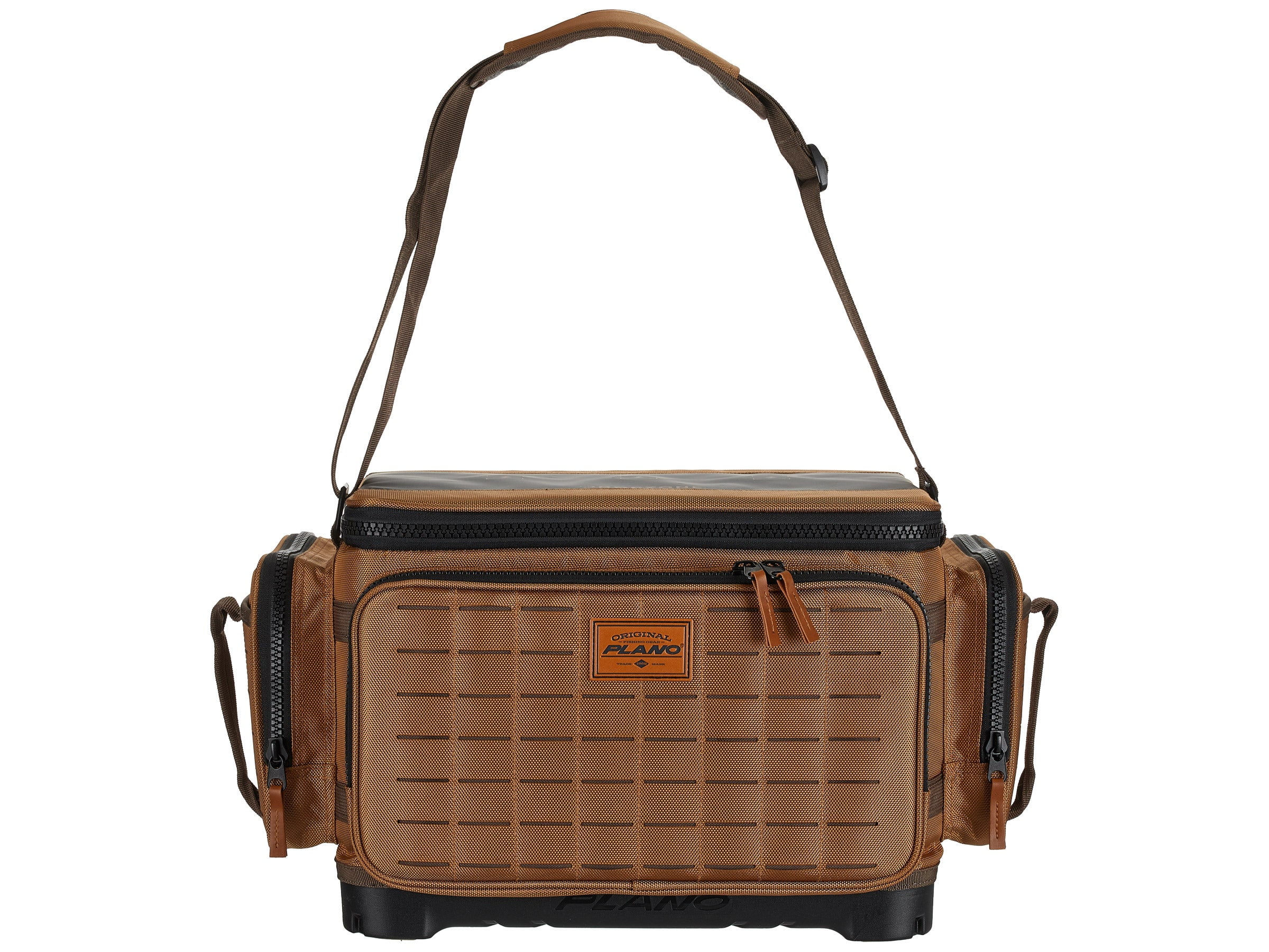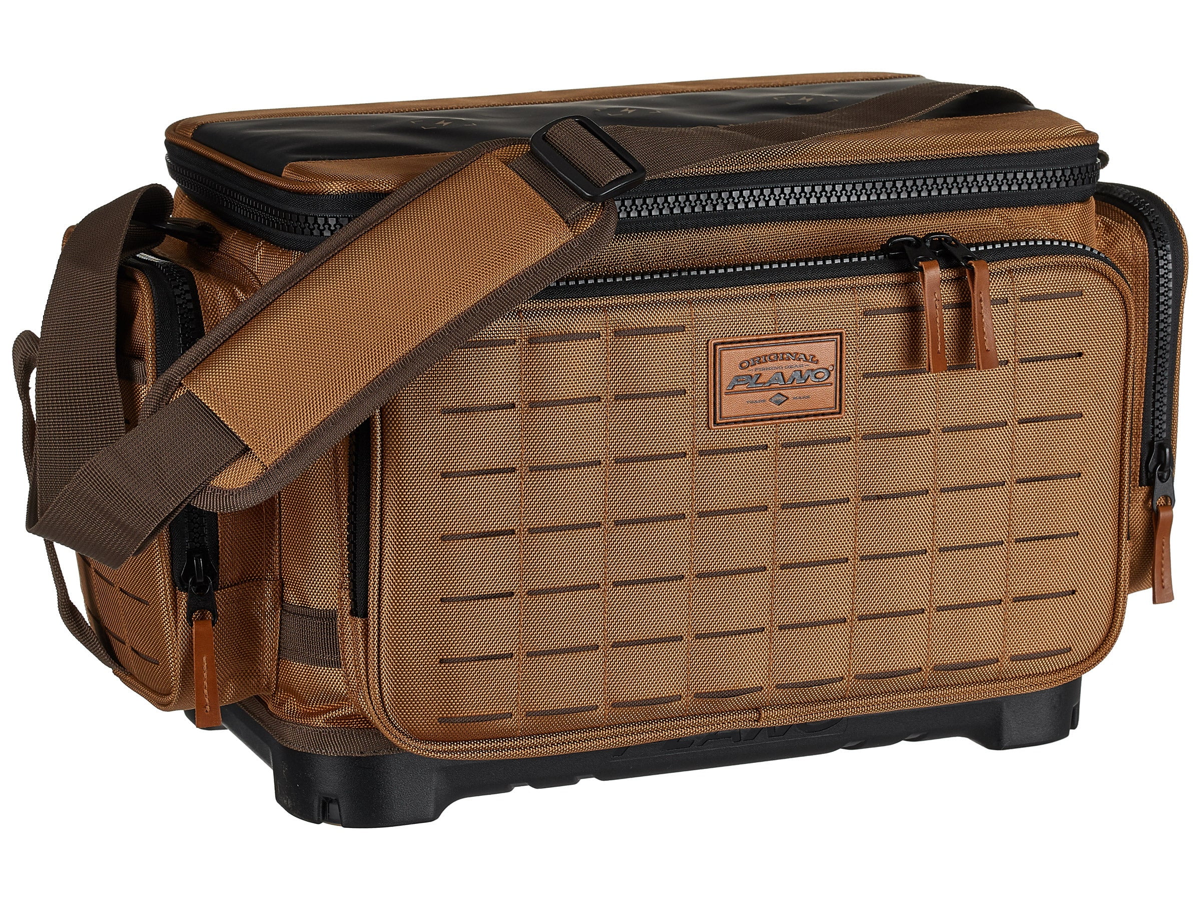 PLANO GUIDE SERIES 3700 SOFT TACKLE BAG: The 3700 Plano Guide Series tackle bags feature a hard-backed construction of rugged 1680 Denier fabric that will hold its shape for years, making it a quality investment for those constantly on the water. NEWLY REDESIGNED: Oversized molded zippers for durability & easier use. 2 handled side pockets double as additional carry option. Front compartment includes waterproof pouch. KITTED OUT FOR OPTIMAL ORGANIZATION: Includes (5) 3700 size and (1) 3600 Stowaways for premium tackle organization, plus a waterproof cell phone holder, license holder, and carabiner. STABLE IN CHOPPY OFFSHORE SURF: Non-skid TPR over molded foot pads will keep the Guide Series tackle bag from sliding around your boat. PATENTED DROPZONE MAGNETIC TOP provides quick access to tools and lures, with extra-strong magnets to keep gear in place. Laser cut MOLLE webbing offers even more custom storage. PRODUCT SPECIFICATIONS: Beige 1680 Denier fabric Dimensions: 19”L x 11.5”W x 11.25”H. PLANO has been helping anglers, hunters, and outdoor-loving families bust out of their routines for over 70 years. BE PLANO READY. Enjoy your pursuit to the fullest.