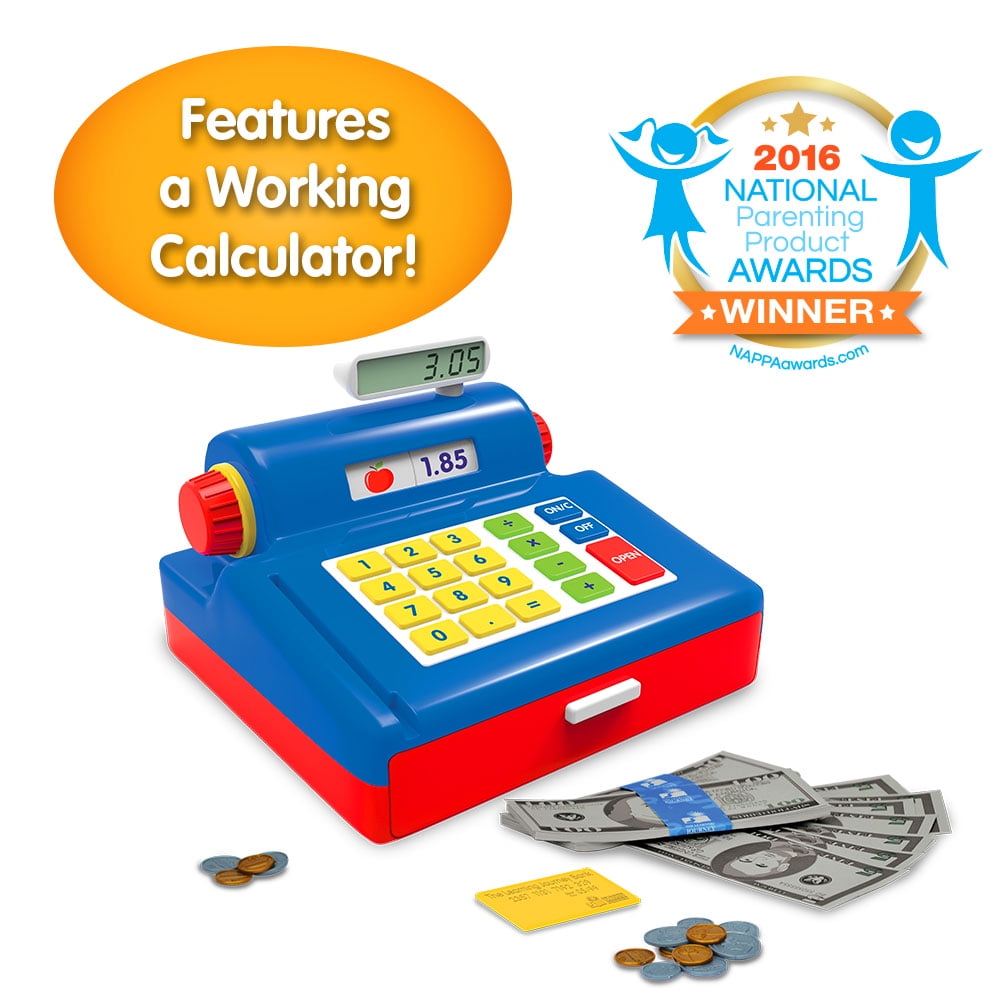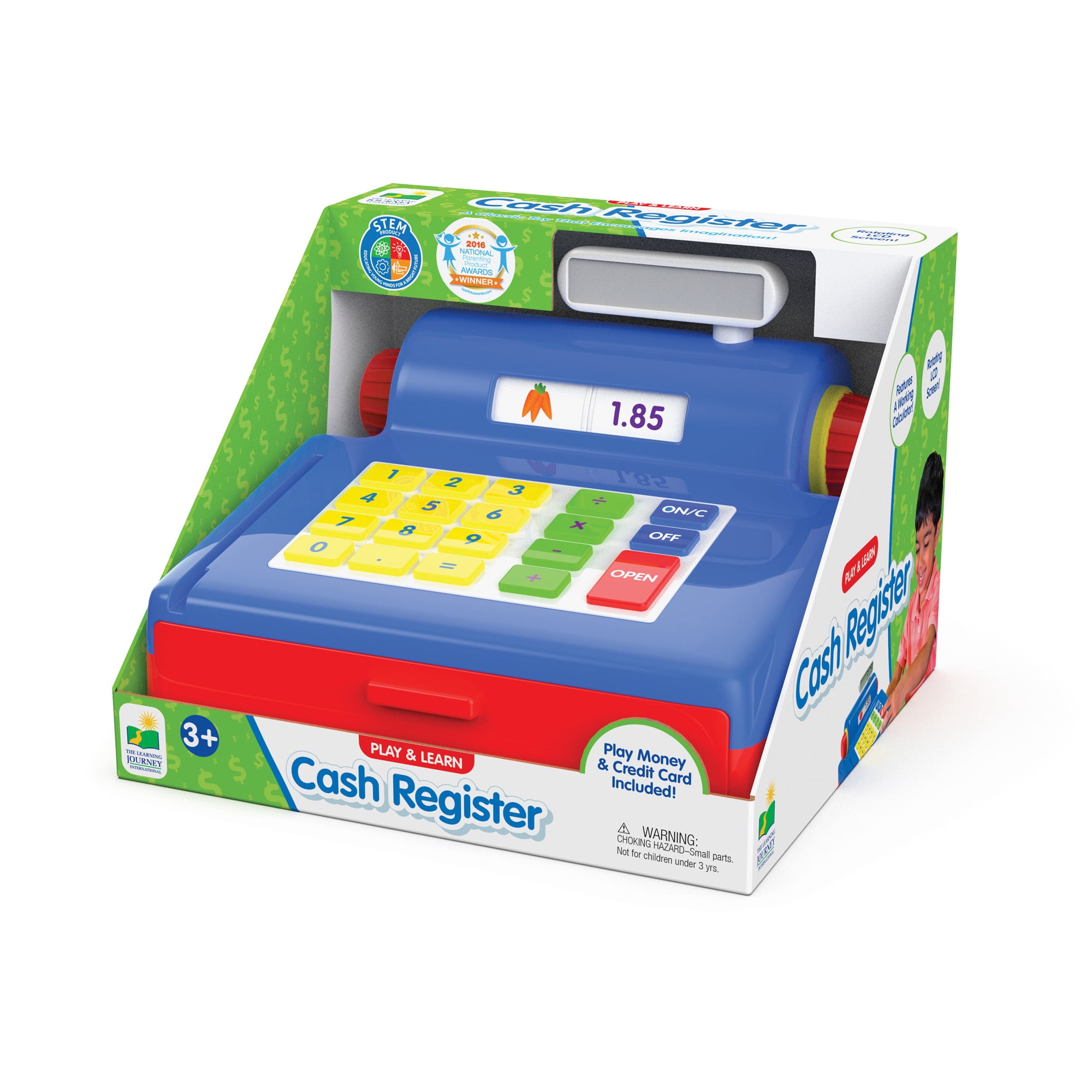 Play and Learn Cash Register:Age Range: 3 years and upAutomatic power shut-offCompact portable designDurable plastic constructionEncourages role-playingIntroduces numbers and basic counting skillsHelps build self-confidenceProvides hours of interactive learning funRequires 1 button cell battery (included)