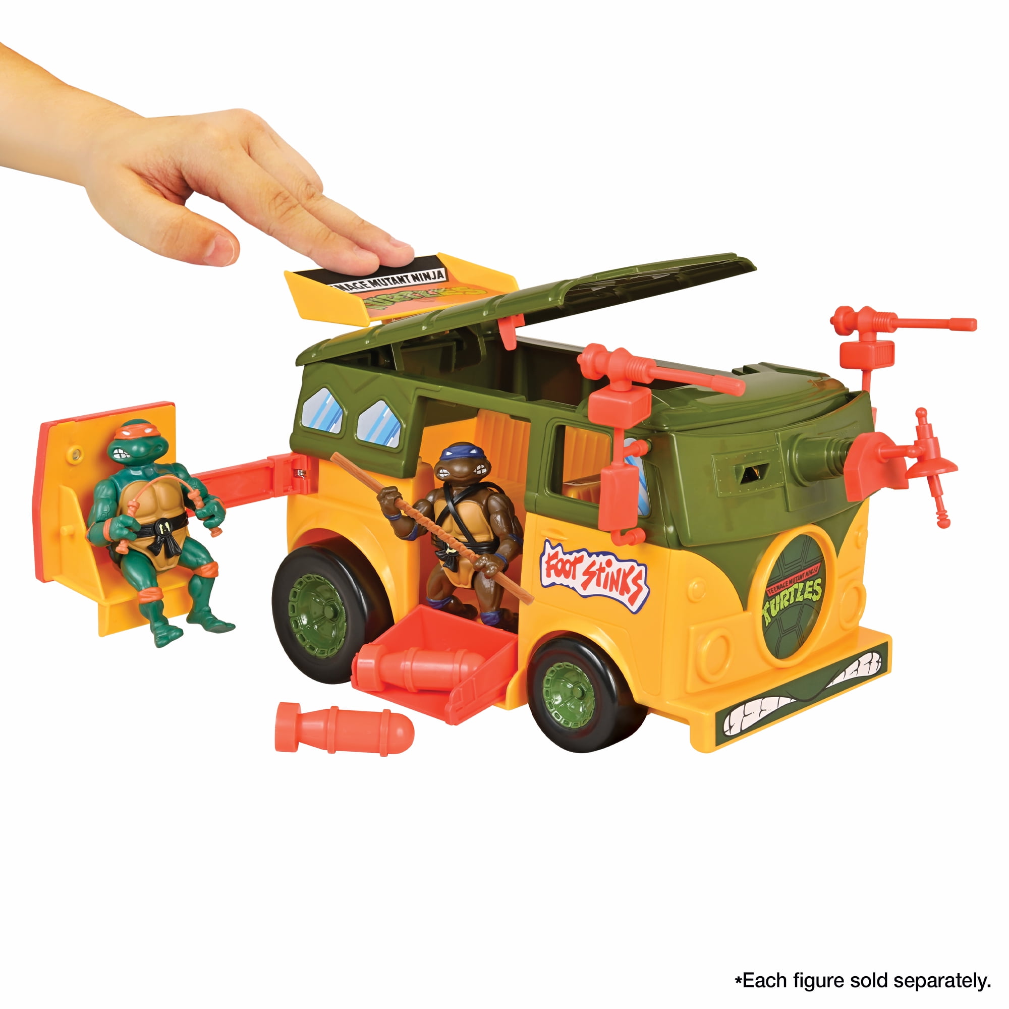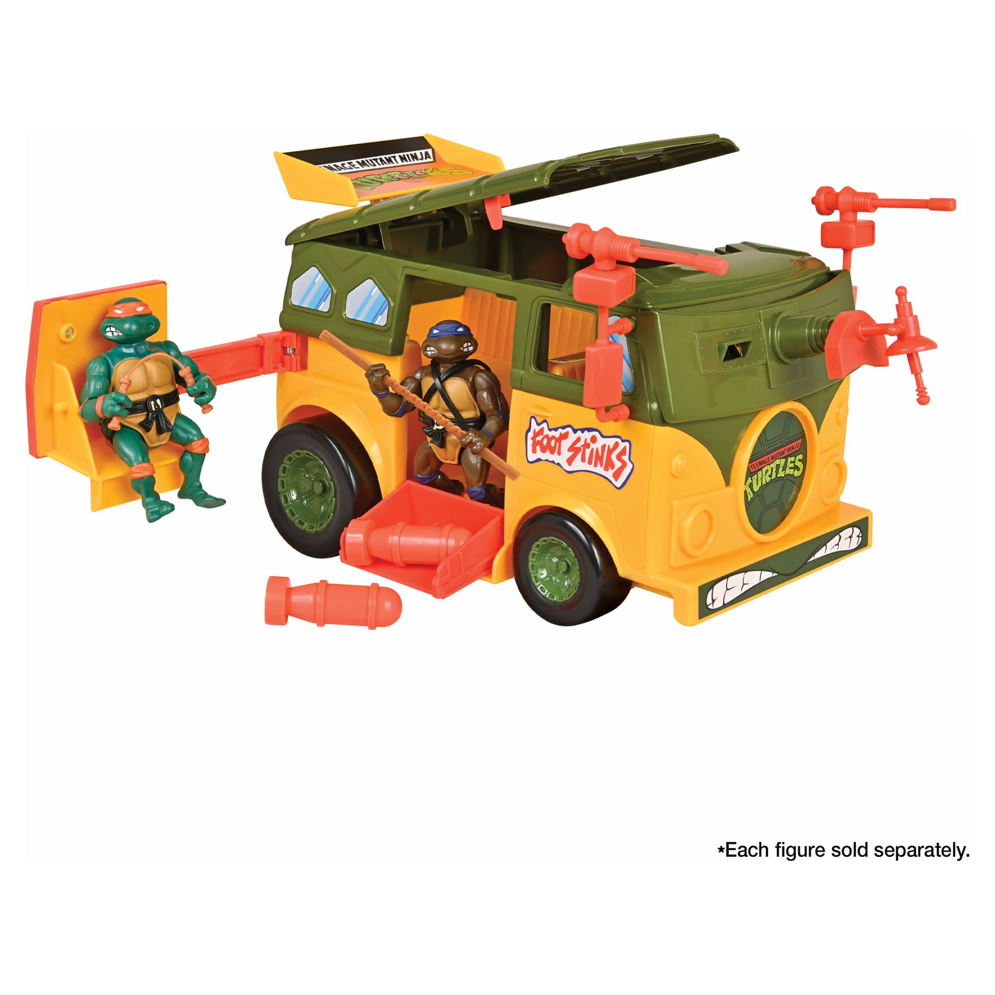 From Playmates. Roll up to the Foot Dojo to kick some shell with the Classic Original Party Wagon Action Figure Vehicle from Playmates! Heavily armoured and outfitted with every advanced weapon Donatello could invent, this mobile fortress is an unstoppable force! The Spring-Action Foot Tenderizer on the side is perfect for dislodging any clingy Foot Soldiers while the flip-top gives you easy access to the pair of Whacko Bombs inside. Perfect for pairing with the rest of your TMNT collection, you’ll have Shredder running for cover with this heavy-duty destroyer on the roads. Action figures pictured are sold separately.