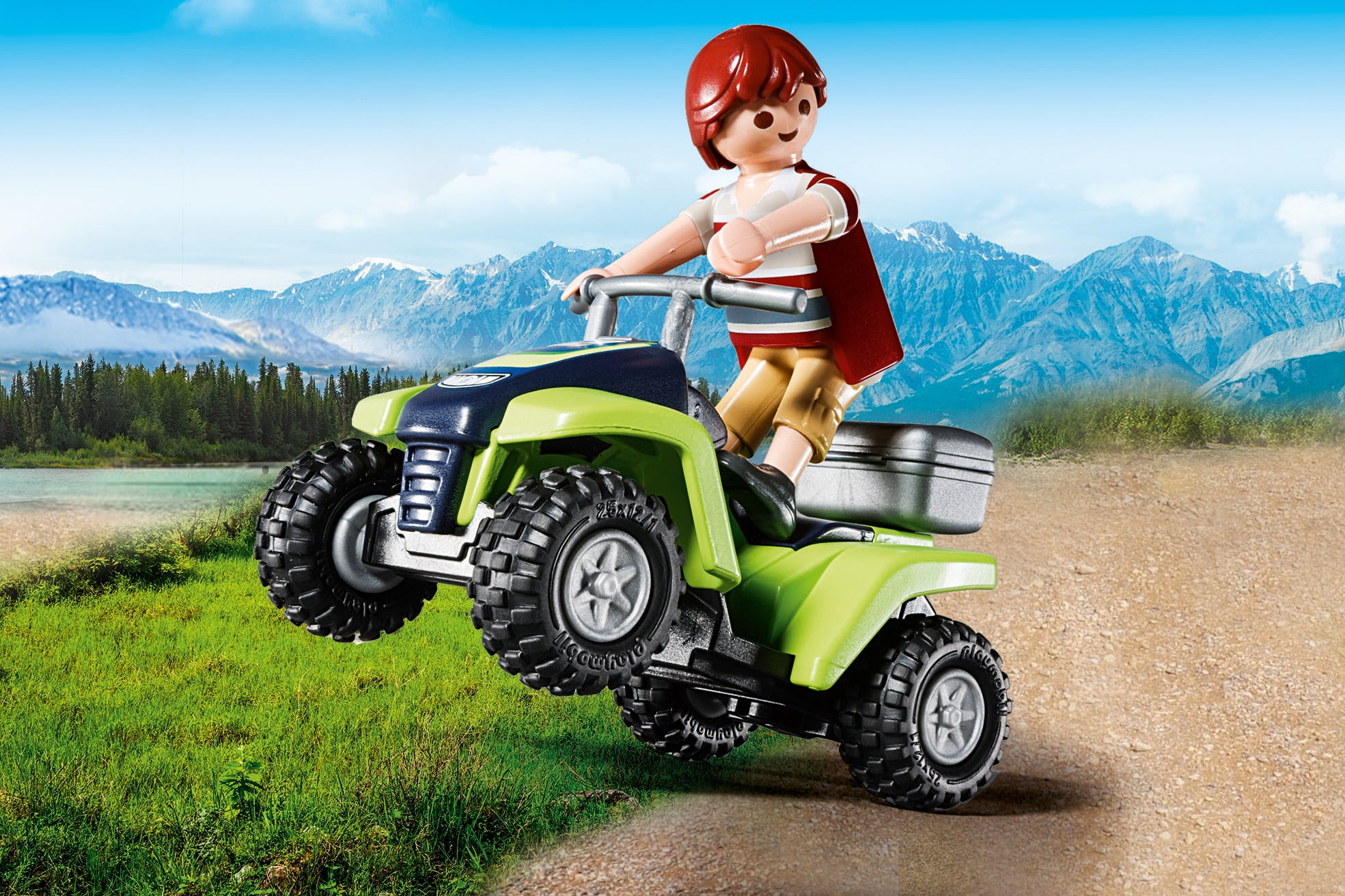 Start by climbing aboard the camper and heading out for new places. Distance isn’t a problem thanks to the camper’s furnished kitchen. When you reach your destination, take the bikes for a ride on the trails or go canoeing down the river. After a day full of activities, you’re bound to be hungry, so fire up the grill to start your dinner and then gather around the picnic table to enjoy a family meal. When it’s time to travel to your next destination, hook the trailer up to the camper and use it to transport the quad. Set includes three figures, quad, floating canoe, bicycles, pots and pans, utensils, dishes, food, trash can, raccoons, fire extinguisher, bucket, camping supplies, and lots of other accessories. Recommended for ages four years and up.