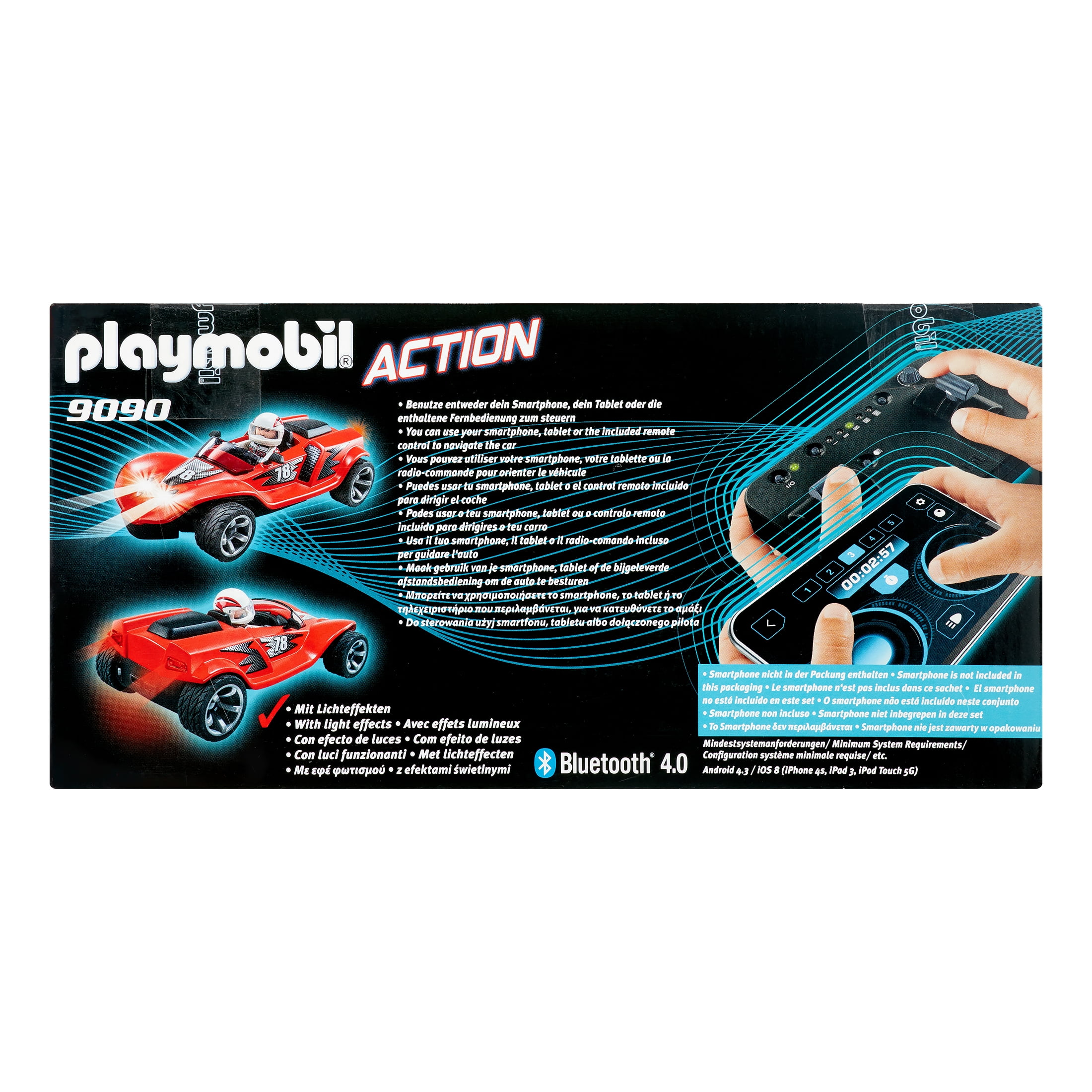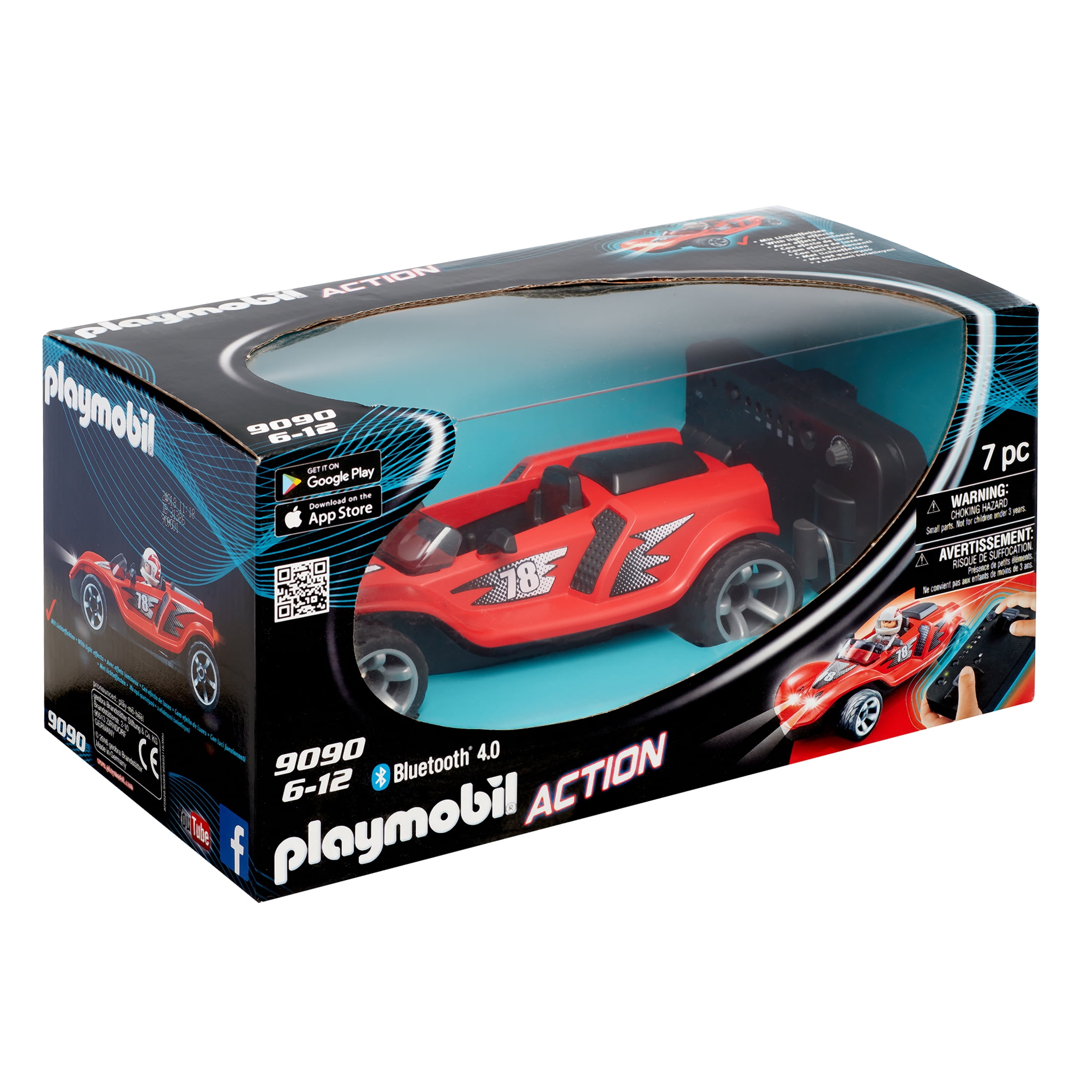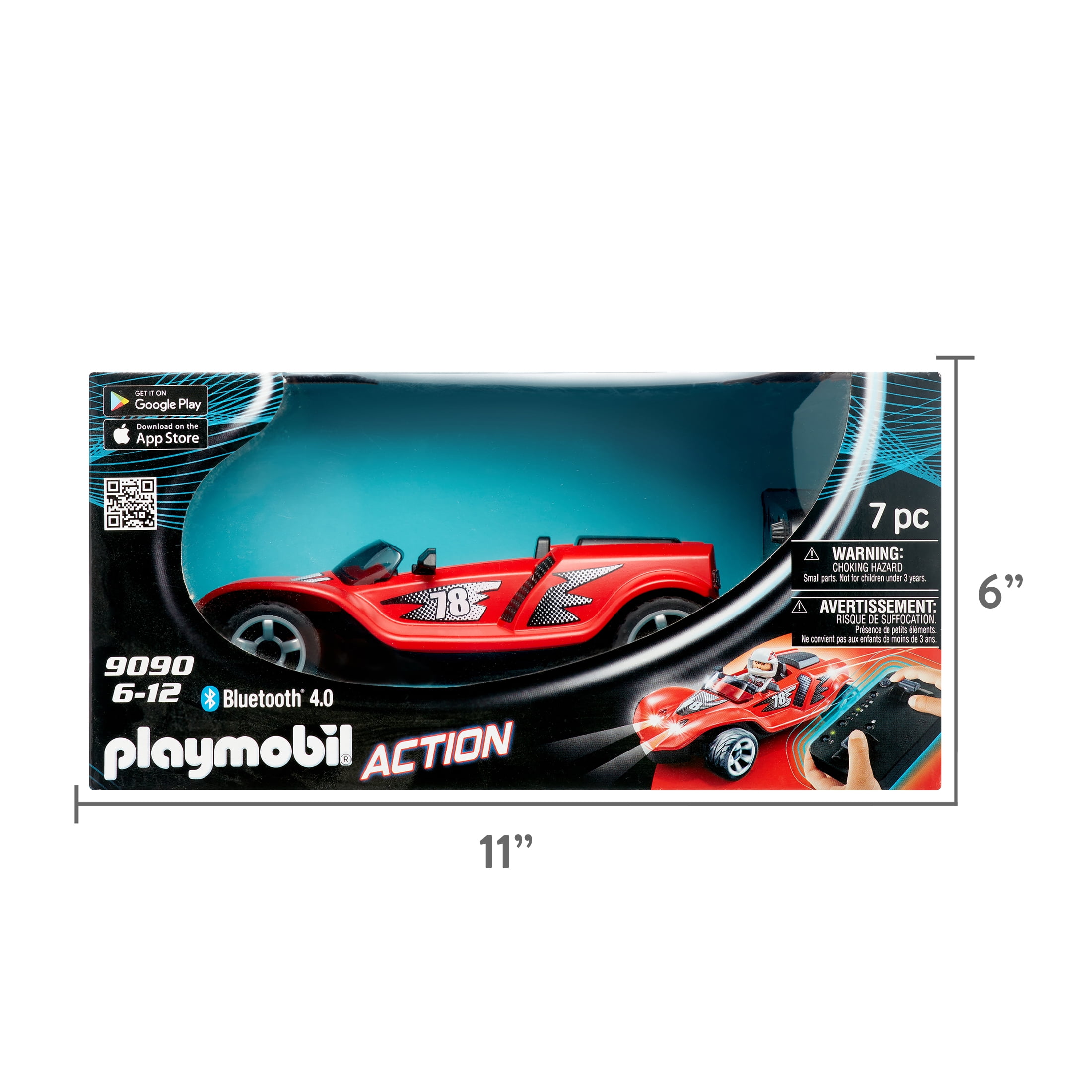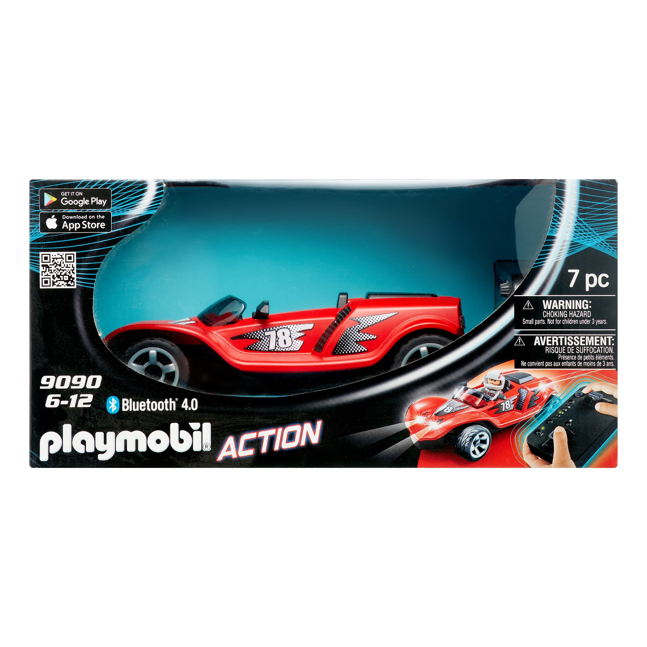 Thanks to Bluetooth technology, kids can turn a smartphone into the remote control by downloading the free RC Racers app (available for iOS and Android) Or, simply use the included remote control unit to steer the car on its route Functioning lights can also be activated from the remote control and add to the fun! Includes one figure with helmet, racecar, and remote control Remote control and vehicle combined require 7 x AAA batteries (not included) Collect all three PLAYMOBIL RC Racers (9089-9091 sold separately) and compete with your friends! Recommended for ages six to twelve