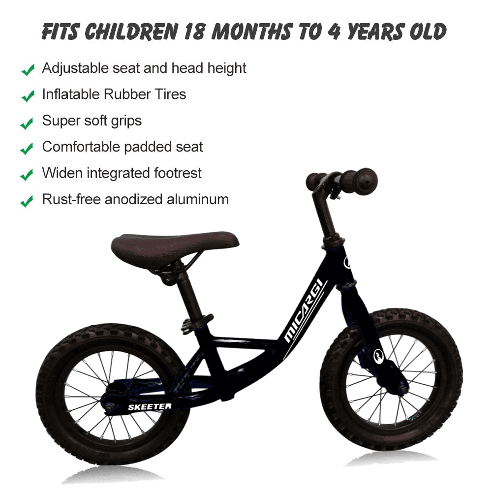 PlayWorld 12″ Push Bike Balance Bicycle Steel Frame Air Tire, Black Wheel Kid’s Bike – Black Tons of fun: Great fun for kids and usually becomes their favorite toy, hands down. It’s guaranteed to be tons of fun! Easy to use: This toy is easy to use and comes ready for playtime right out of the box. Affordable: PlayWorld offers the best value for the best price, Every time and this toy will make your kid happy without spending a fortune. Make your kid smile: Want to make your kid smile? At PlayWorld our toys are created with the kid in mind. So make them smile today with our latest innovations in fun. PlayWorld: A brand you can trust. PlayWorld makes over 2000+ toys for kids including everything from RC cars, BMX bikes, stuffed animals, plush toys, interactive animals, toy kitchen sets, and every kind of toy imaginable. So buy from a brand you can trust. Buy PlayWorld and every toy comes with our 100% fun guarantee. Highlights: Durable steel frame Push bike; with awesome graphics Easy assembly so it’s quickly ready to ride Adjustable seat for the right fit This push bike has the look and features to make one awesome ride for your child. The durable, steel frame, in vivid colors features exciting graphics that will have you child racing to victory. This bike was designed with safety in mind with sleek contour, the comfort grip handlebars, and the padded seat. The alloy adjustable design makes it simple to adjust the seat to the right height. Seat Features: Padded seat, Adjustable Seat Position, Adjustable Seat Height Bicycle Frame/Component Features: Adjustable Handlebars, handlebar comfort grip Bicycle Frame Material: Steel Rim Material: Steel Seat Material: Vinyl Assembly Details: Adult assembly required, tools not provided CPSC Choking Hazard Warnings: Choking_hazard_small_parts Bike use: Recreation Maximum Weight: 50 lbs Bike Size Chart: Bike Wheel Size Average Height Average Age 12″ 26″-38″ 2-5 14″ 28″-42″ 2-5 16″ 38″-48″ 3-7 18″ 42″-52″ 5-9 20″ 48″-56″ 7-13 24″ 54″-62″ 10-15 26″ 5’2″+ 14+ 27″ 5’2″+ 14+ 27.5″ 5’2″+ 14+ 28″ 5’2″+ 14+ 29″+ 5’2″+ 14+ All sizes in inches unless otherwise noted.