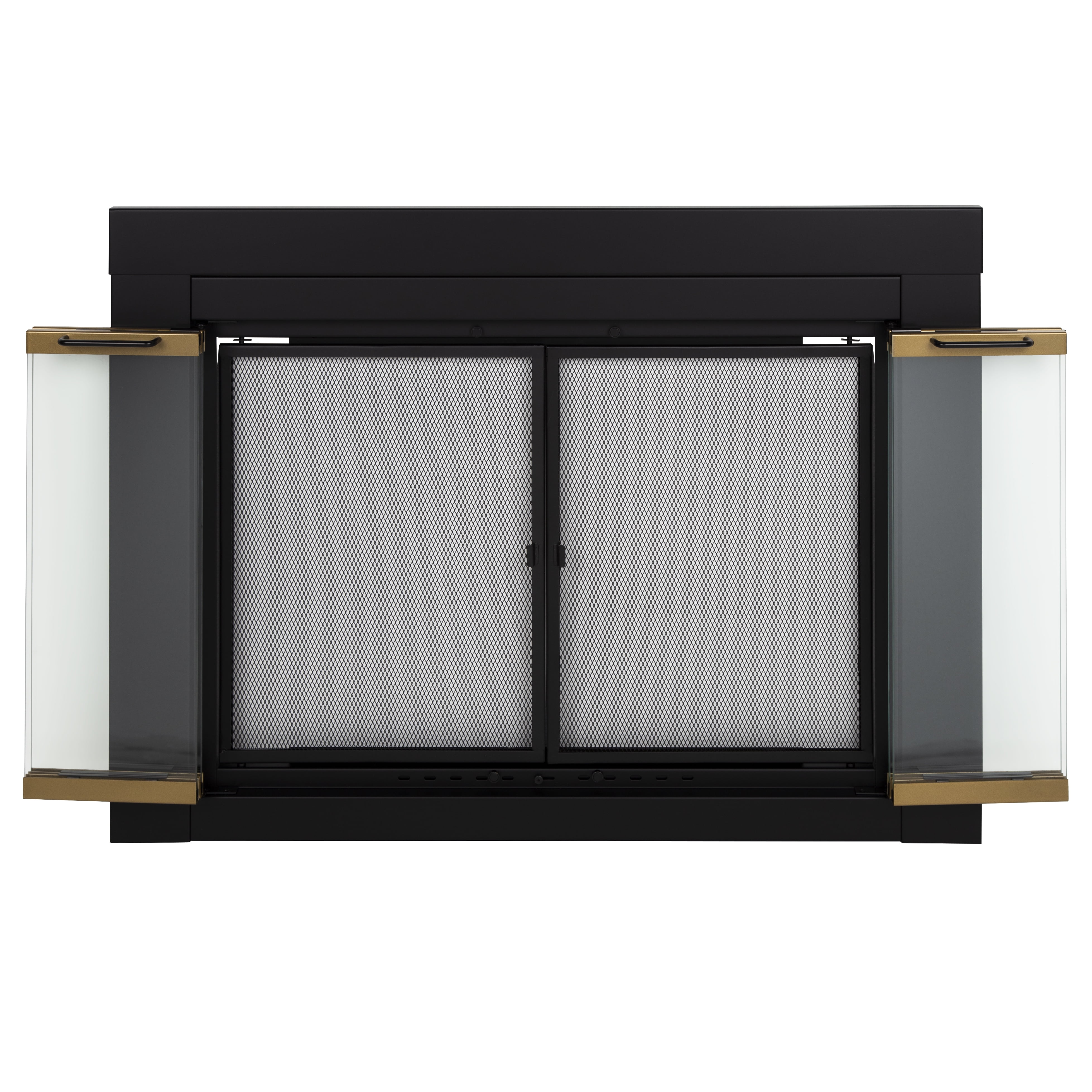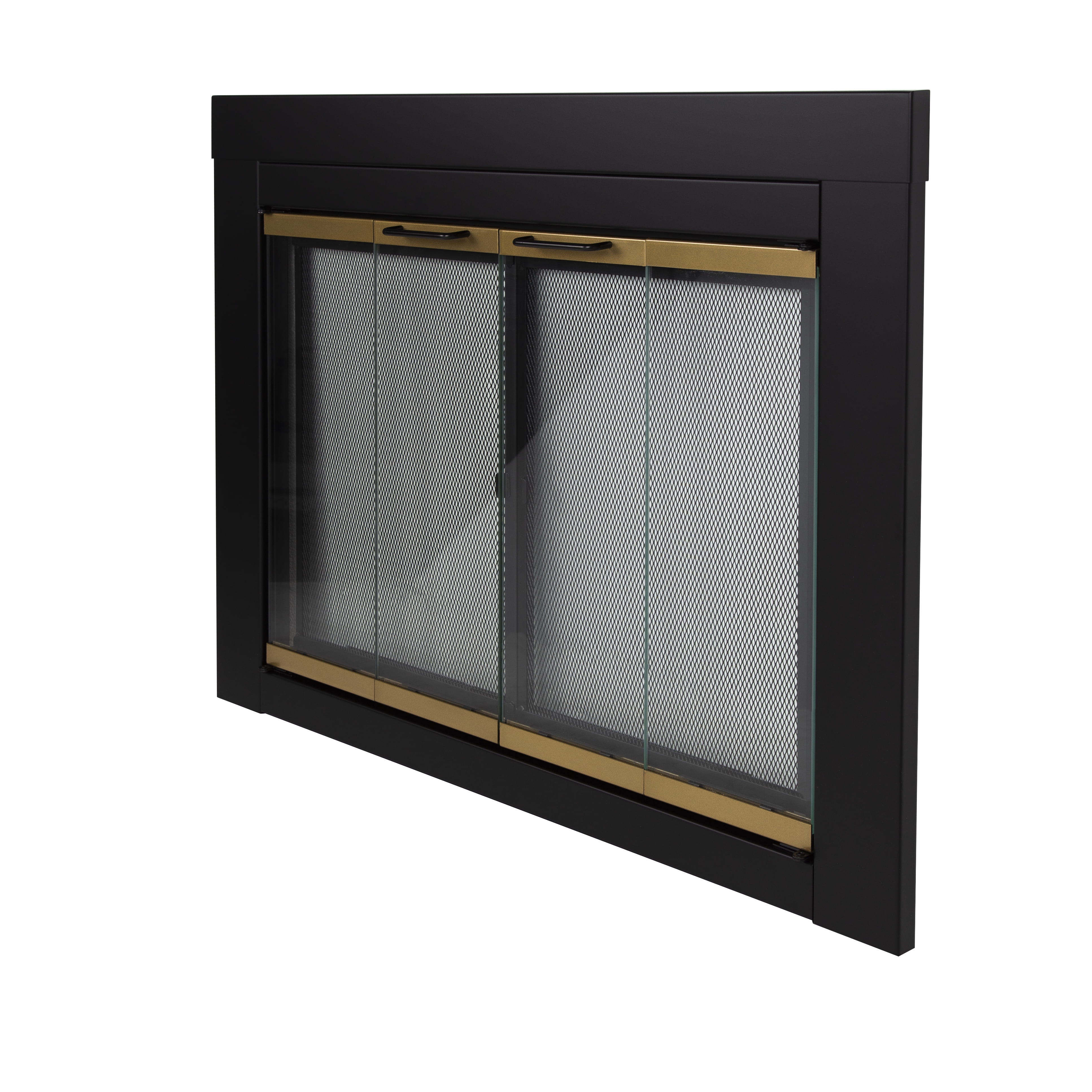 Pleasant Hearth Arrington Black with Gold Trim Fireplace Glass Firescreen Doors- Small