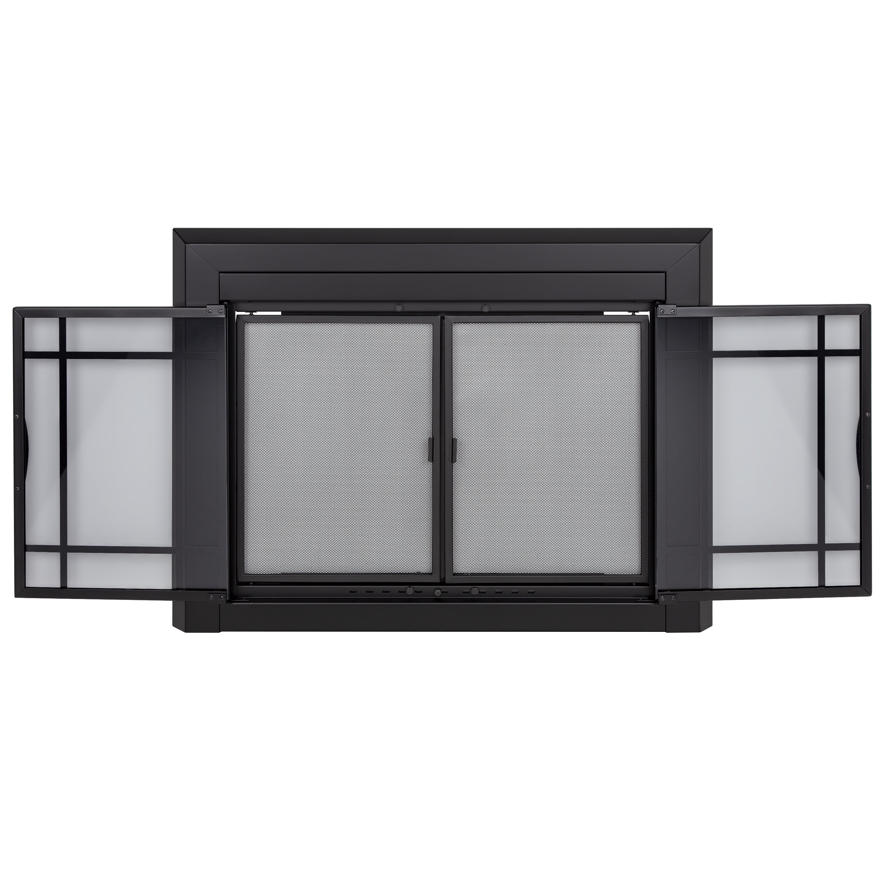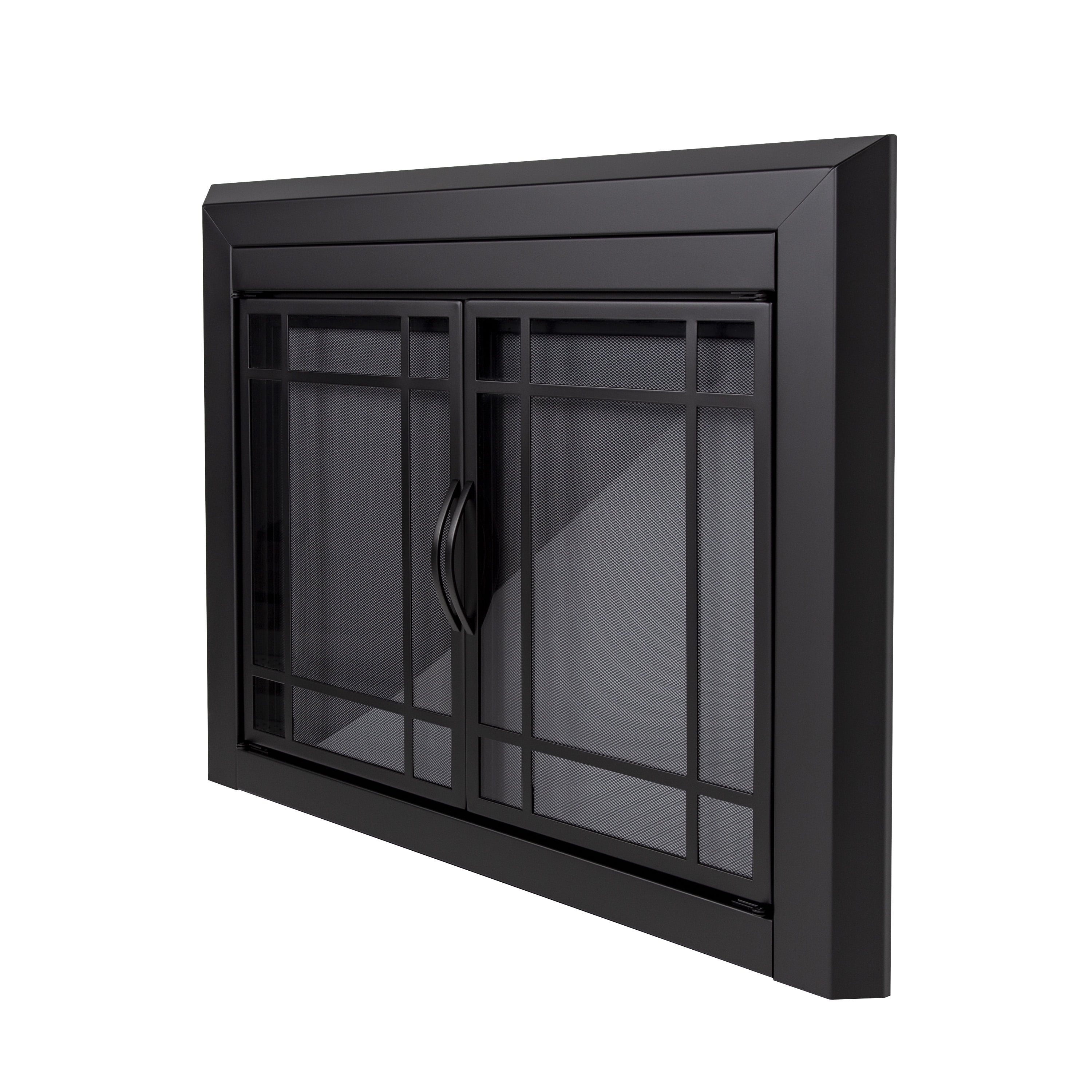 Pleasant Hearth Easton Black Fireplace Glass Firescreen Doors – Large