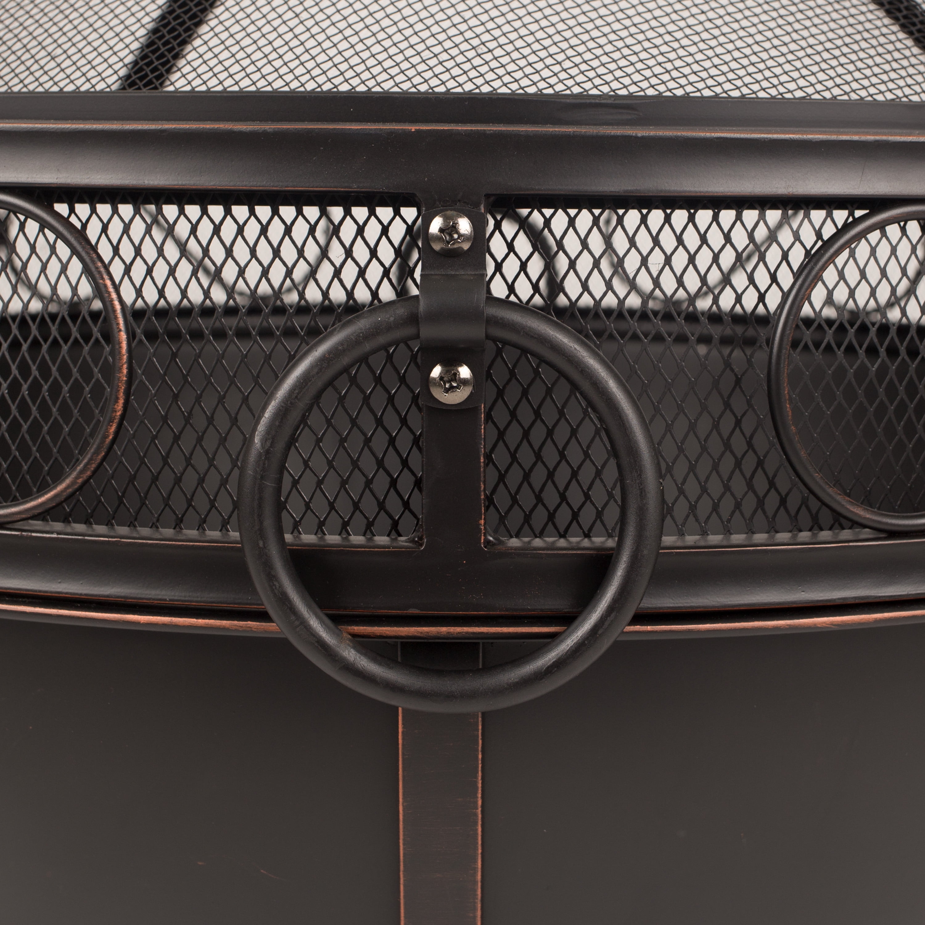 The Pleasant Hearth Bellora Wood Burning Fire Pit is the perfect accessory for your outdoor patio. Decorative accents located on the sides of the bowl are highlighted with a rubbed bronze finish. The 13″ deep, 28″ diameter fire bowl features the CirculAir system which raises the fire wood and allows oxygen to circulate for a longer lasting fire. When the fire pit is cool, it’s easy to move your pit with the attached ring handles. The fire pit includes a mesh cover to help prevent escaping sparks, a cooking grid for grilling and a poker to tend the firewood.