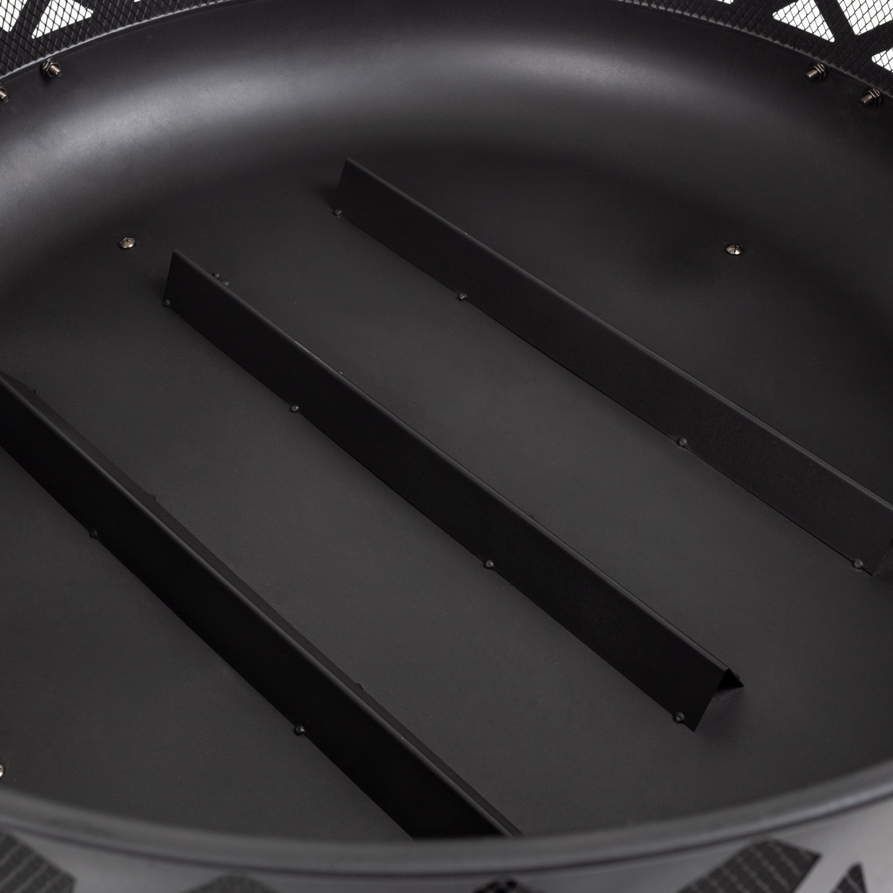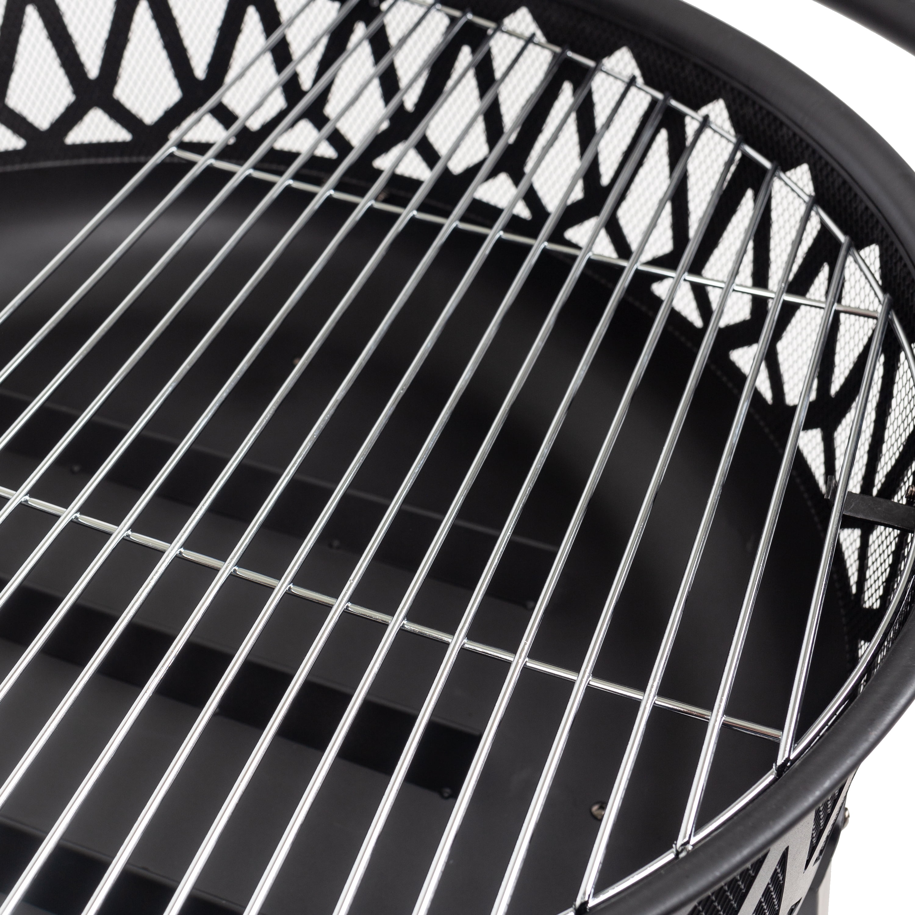 30″ round, 12″ deep fire bowl coated with high temperature paint Includes cooking plated grid for BBQ’ing The built-in Circulair™ system provides more air flow for bigger flames and a more consistent fire. Large wood capacity Mesh cover to reduce the number of escaping sparks Holes for proper water drainage Durable steel construction Black finish