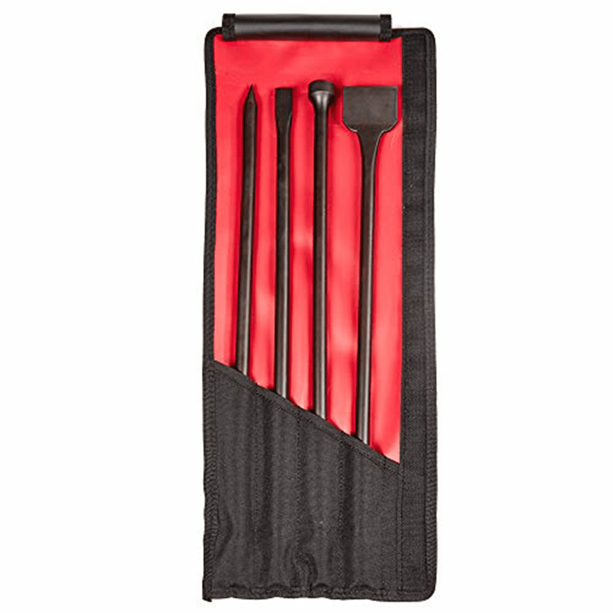 Features & Benefits: Standard .401 turn type parker shanks for air guns Fully hardened and tempered shock resistant tool steel Made in the/li> Lifetime warranty Set includes: punch taper, cold chisel, hammer and scraper.