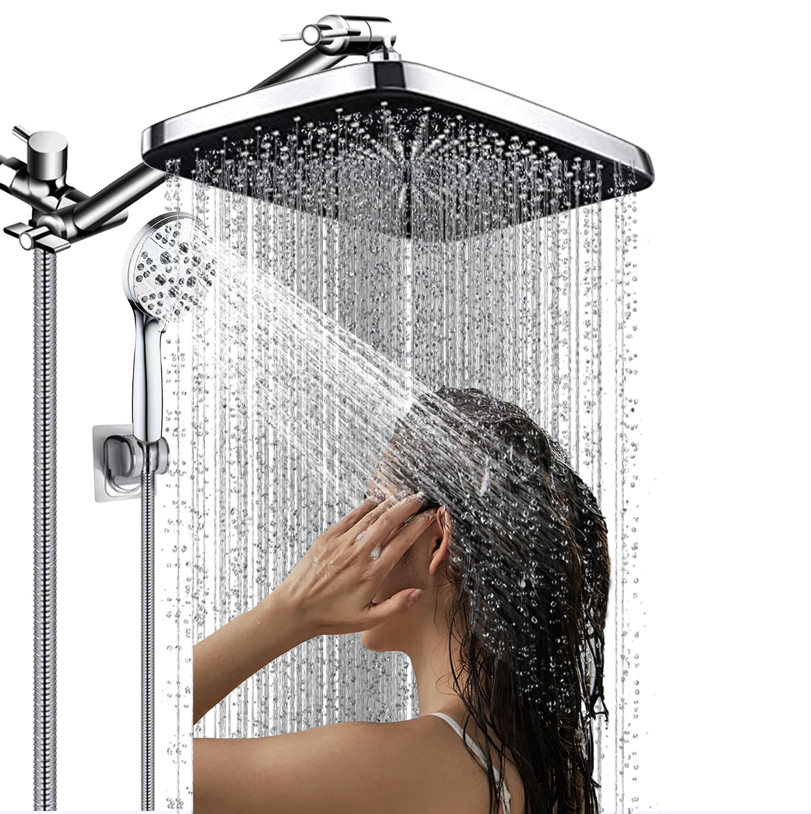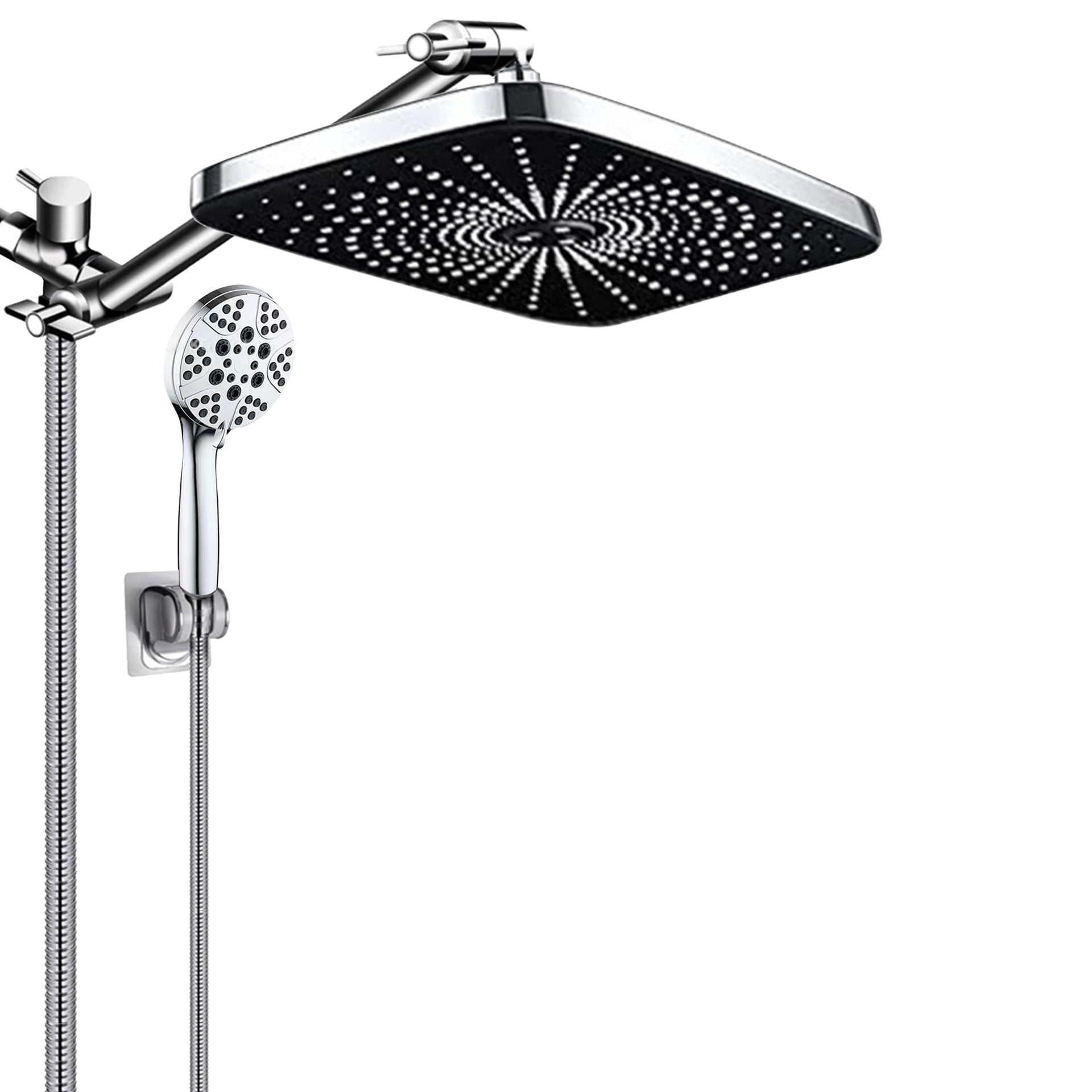 Podoy, 5 Modes 12″, High-Pressure Showerhead & Handheld Shower 12-inch large square rain showerhead offers full body coverage with a waterfall design Constructed from 304 stainless steel for excellent rust resistance and durability Solid ball nut with 360-degree adjustable rotation for a leak-free connection Ultra-thin design and advanced air pressurization technology ensure an exceptional rain experience Features 5 modes: power rain, light rain, heavy rain, water outlet closing mode, and water spraying mode