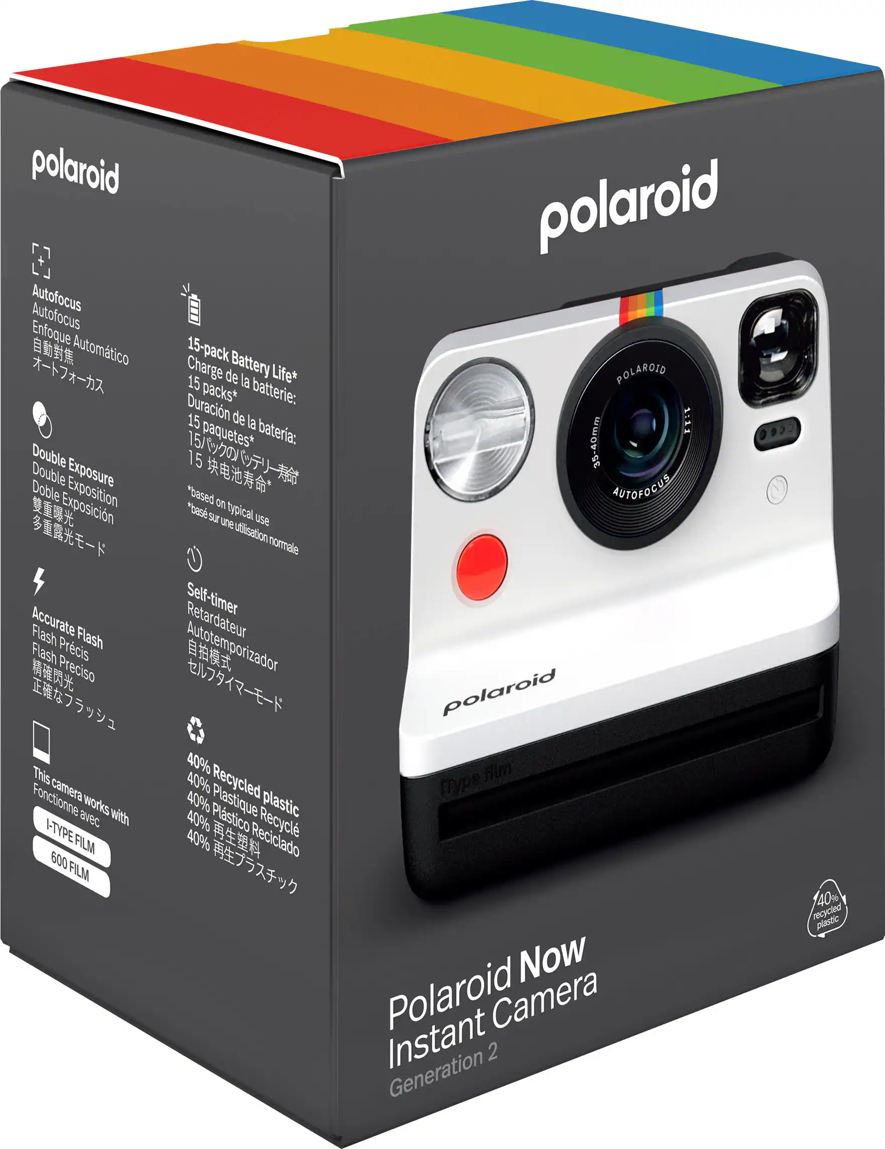 Welcome to the beautifully imperfect world of Polaroid photography with the Polaroid Now Generation 2 camera. The classic, iconic analog instant camera comes with autofocus, a self-timer, and double exposure. All in a classic design, and now made with 40% recycled materials. Compatible with Polaroid i-Type & 600 film in the original Polaroid instant film format.