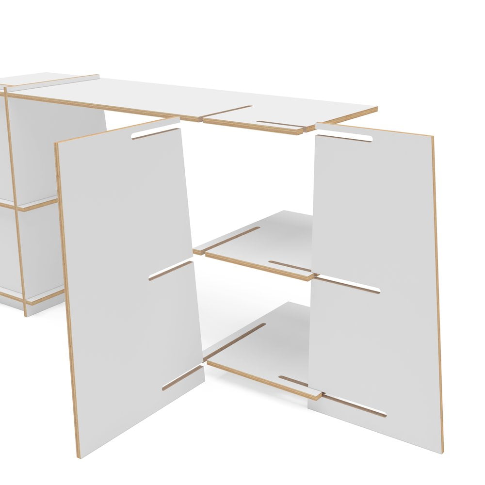 EcoFriendly Flora Writing Desk with Shelves, White The EcoFriendly Flora Writing Desk is a perfect addition to any home office. The simple modern design with white finish will compliment any existing décor. The Flora desk has the spacious table top that provides plenty of work space and 4 open shelves for storage. This desk is constructed from FSC certified wood and is design with a system of fitting parts that can be quickly assembled without tools. Assembly does not require hardware, dowels or glue meeting the maximum score to be considered a “green” product. This desk pairs perfectly with other items from Polifurniture’s EcoFriendly line. Modern design with white and light walnut finish Spacious table top 4 open shelves provide plenty of storage space Constructed from FSC certified wood Easy tool free assembly