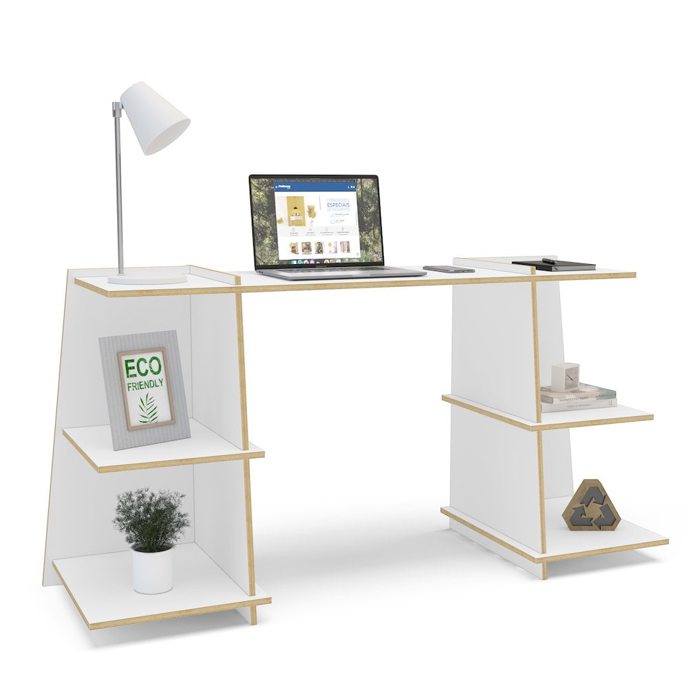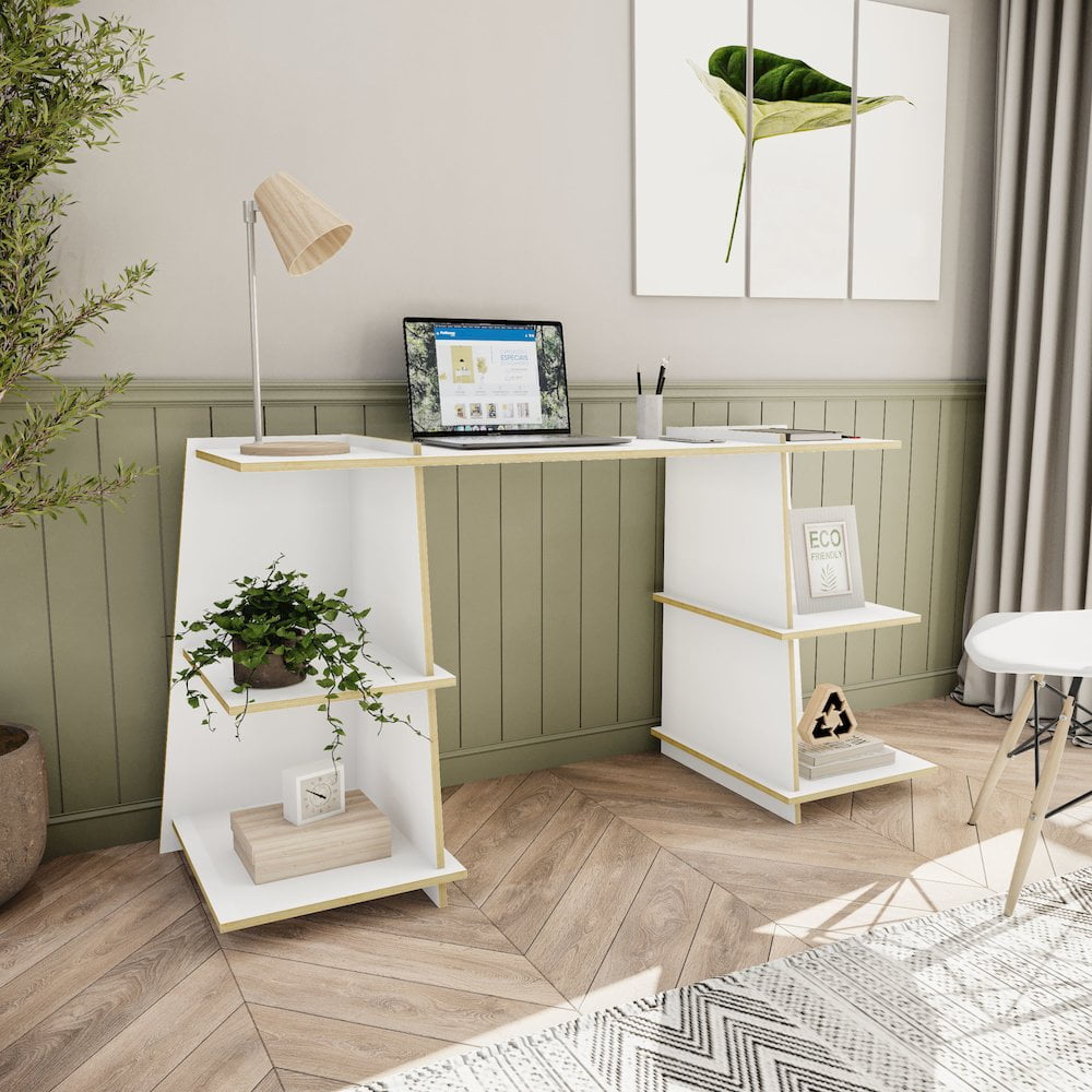 Polifurniture EcoFriendly Flora Writing Desk with Shelves, White