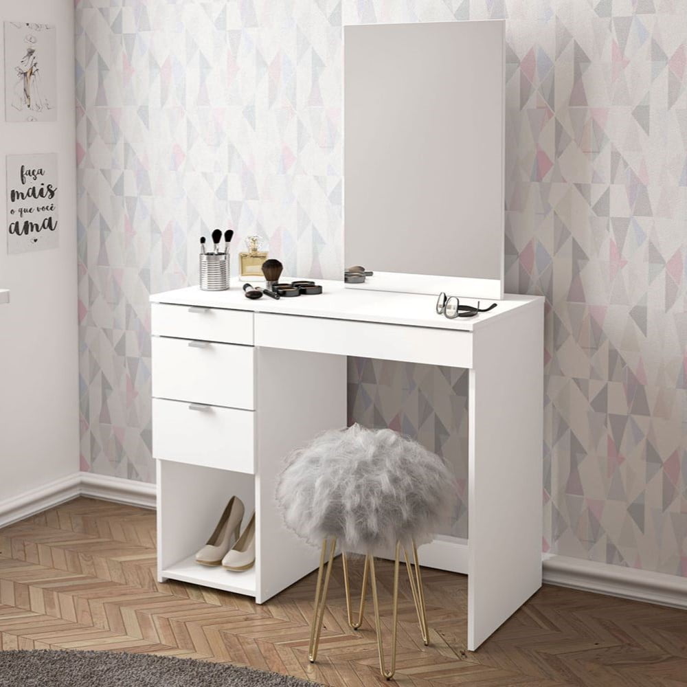 Polifurniture Joplin Modern Bedroom Makeup Vanity for Adults and Teens , White Finish