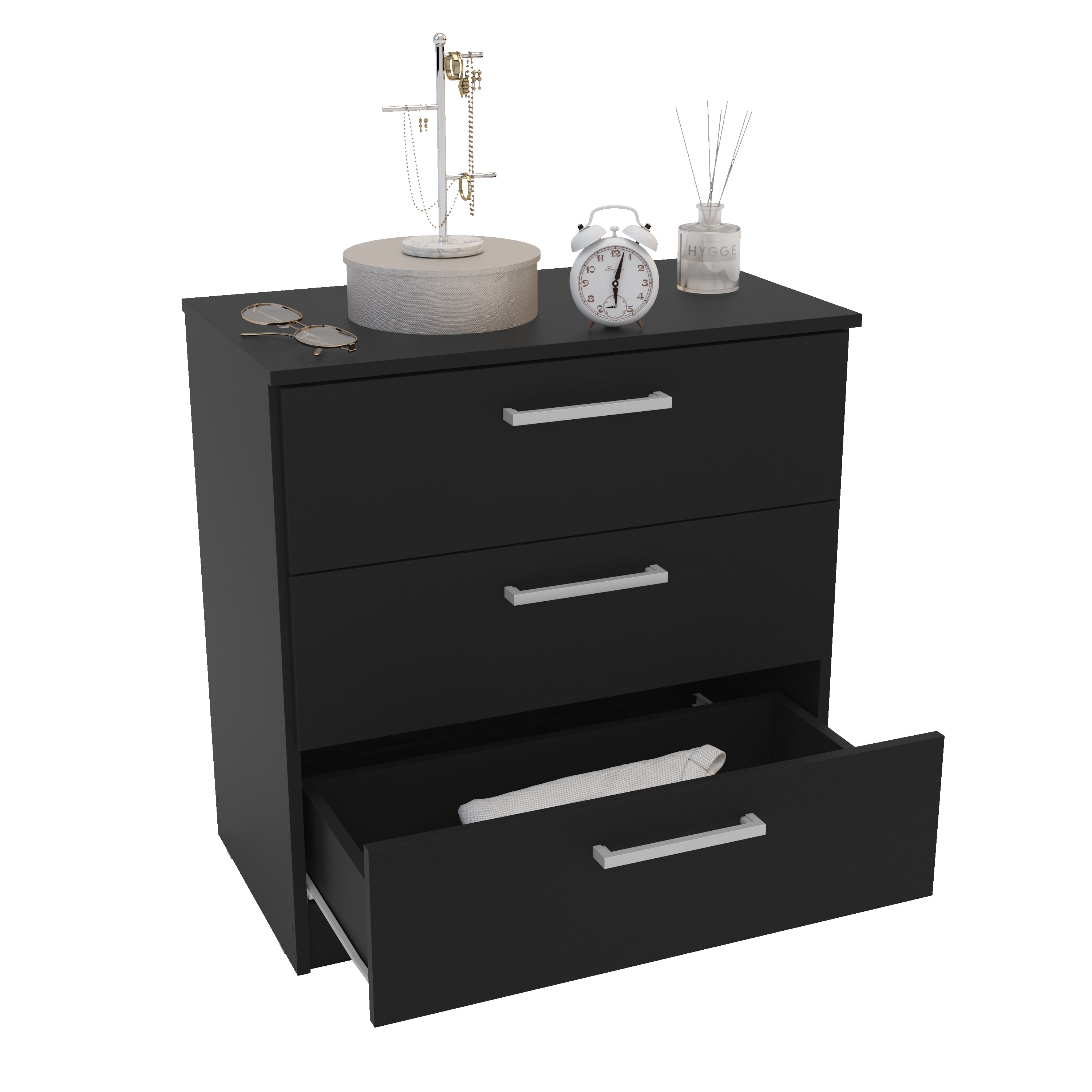 Polifurniture Juliette Modern 3 Drawer Wood Dresser, Black