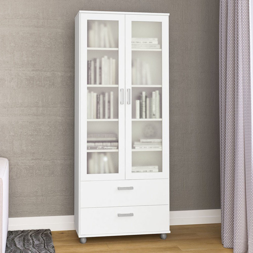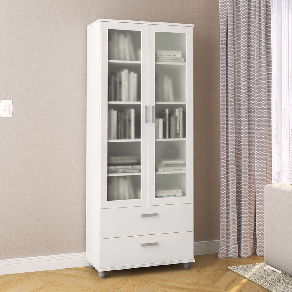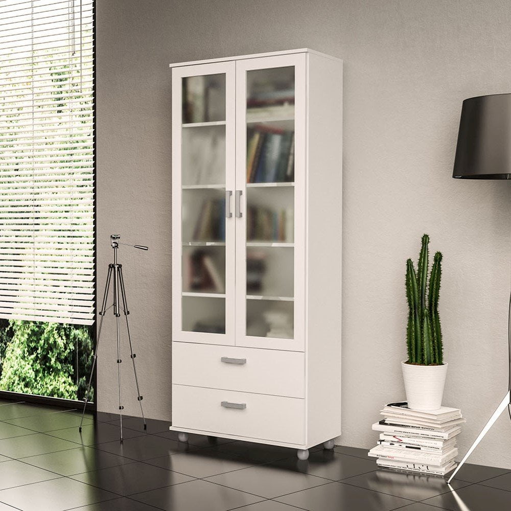 Polifurniture Livramento 70 in. Standard Bookcase with 2 Doors and 2 Drawers, White