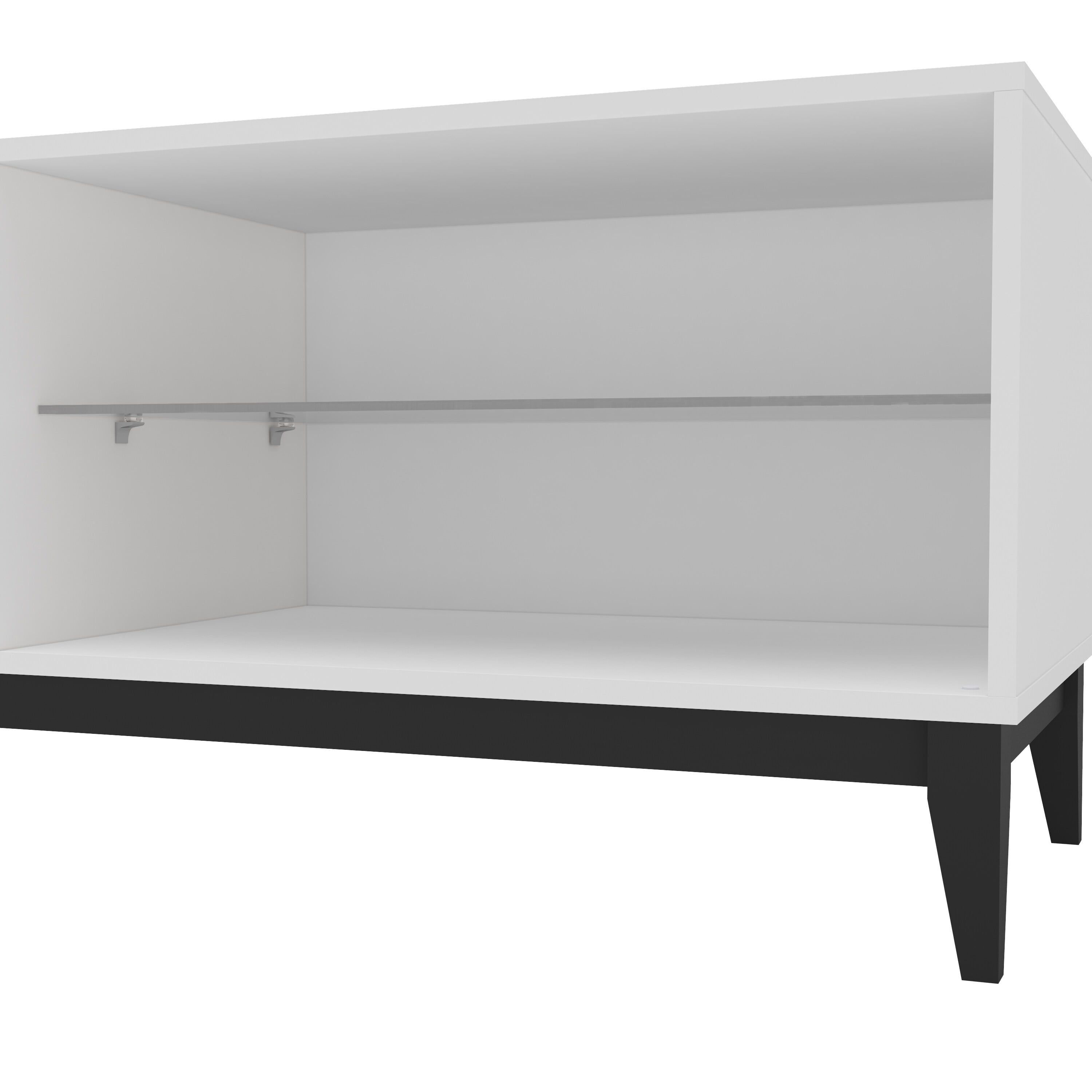 Update the look of your living room with the sleek modern design of the Melrose TV stand from Polifurniture. This TV stand is constructed from engineered wood and has a durable melamine finish to protect against everyday use. It’s available in two color options and will complement any current home décor. This TV stand will accommodate TVs up to 65 inches and offers tons of storage space. There are two large storage drawers on metal glides that will keep your entertainment area neat and organized. The open section with glass shelf is perfect for electronic components. Assembly required. Assembled dimensions: 59 in. W x 17.5 in. D x 20 in. H.