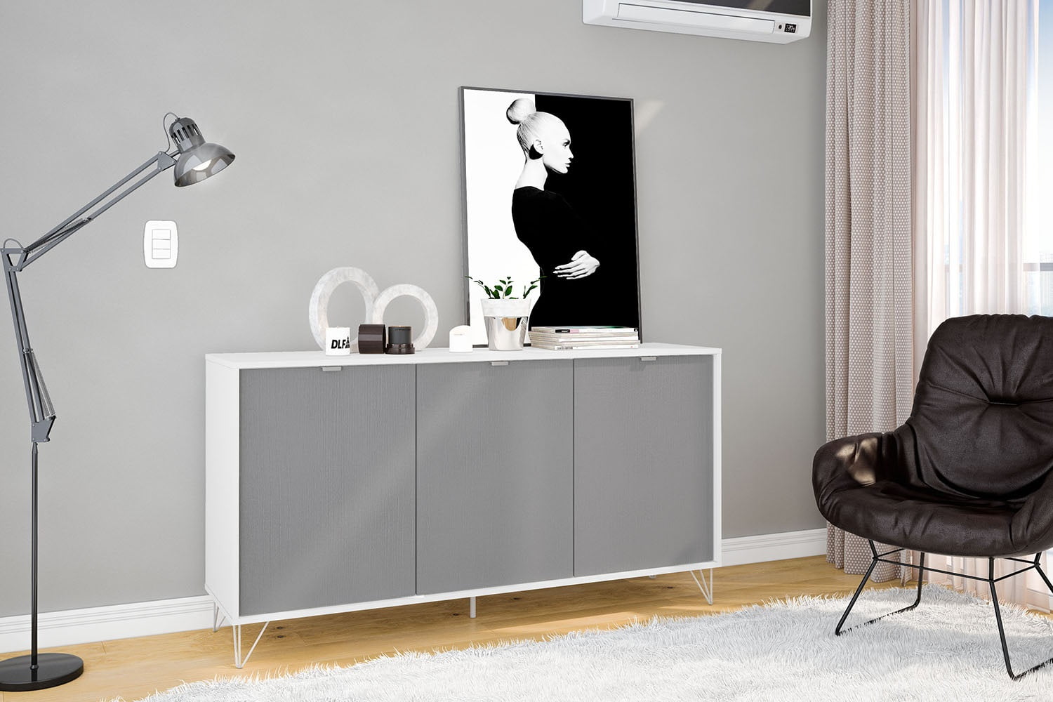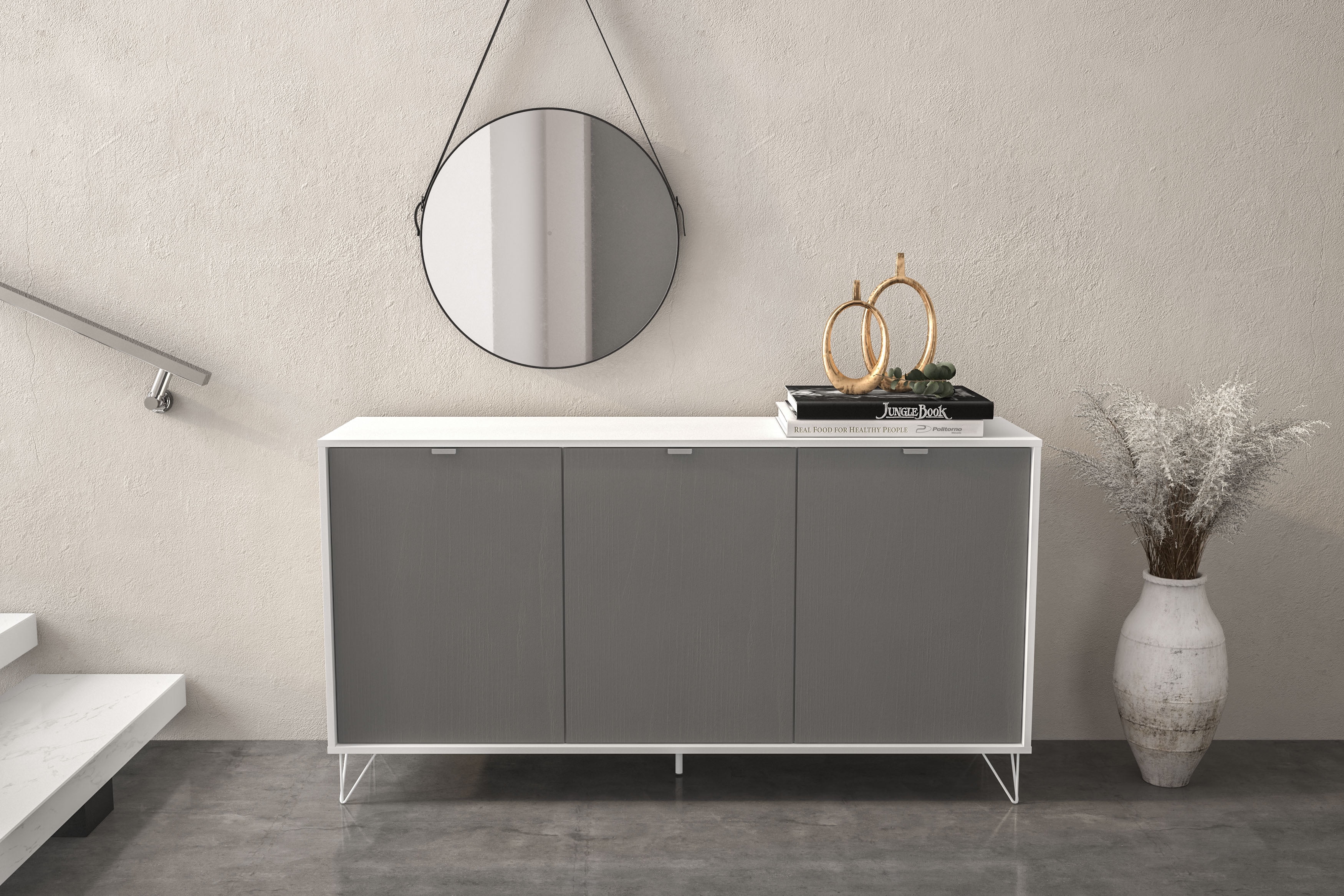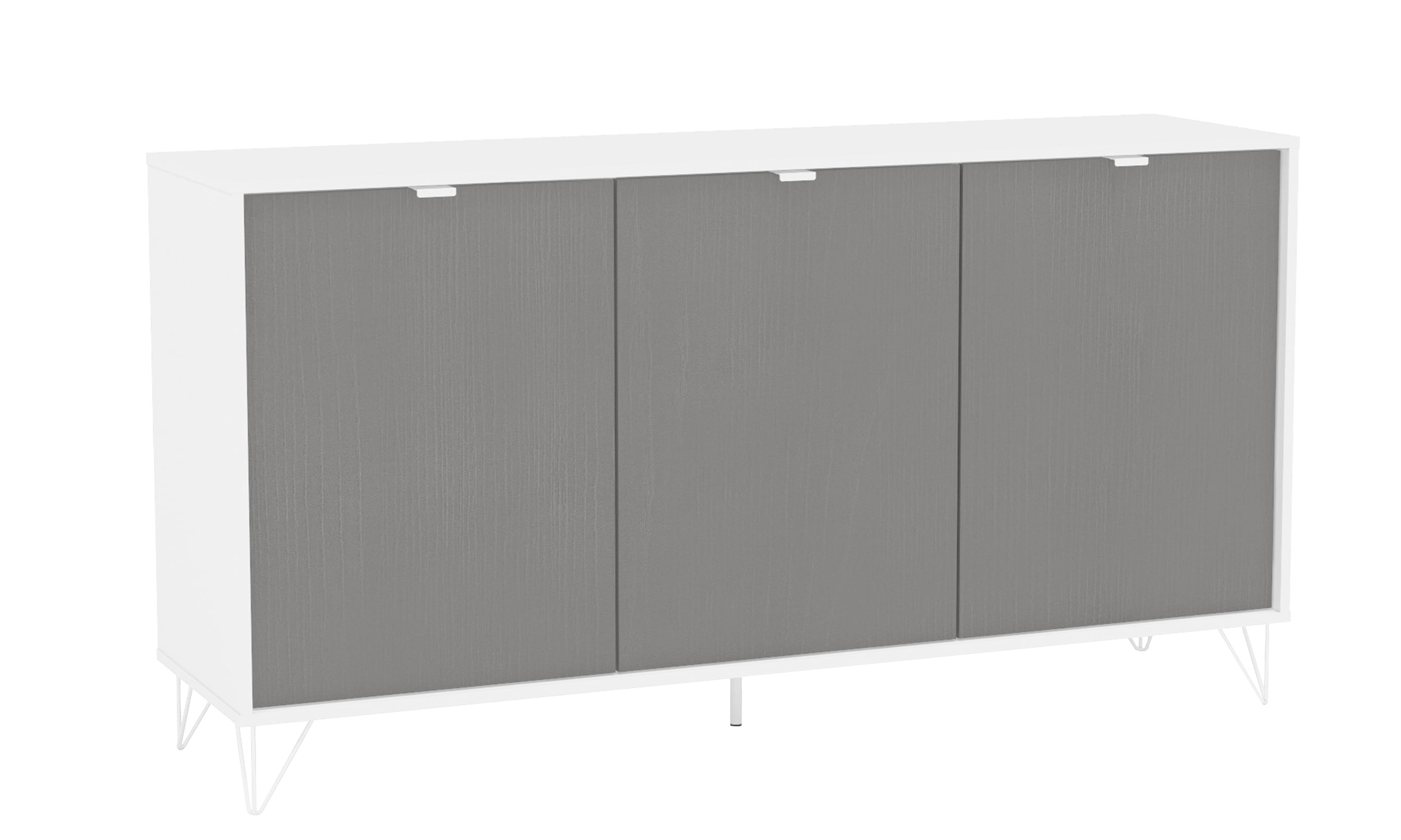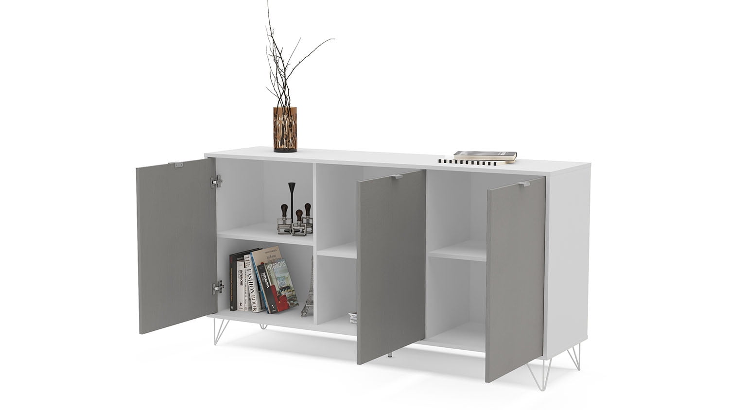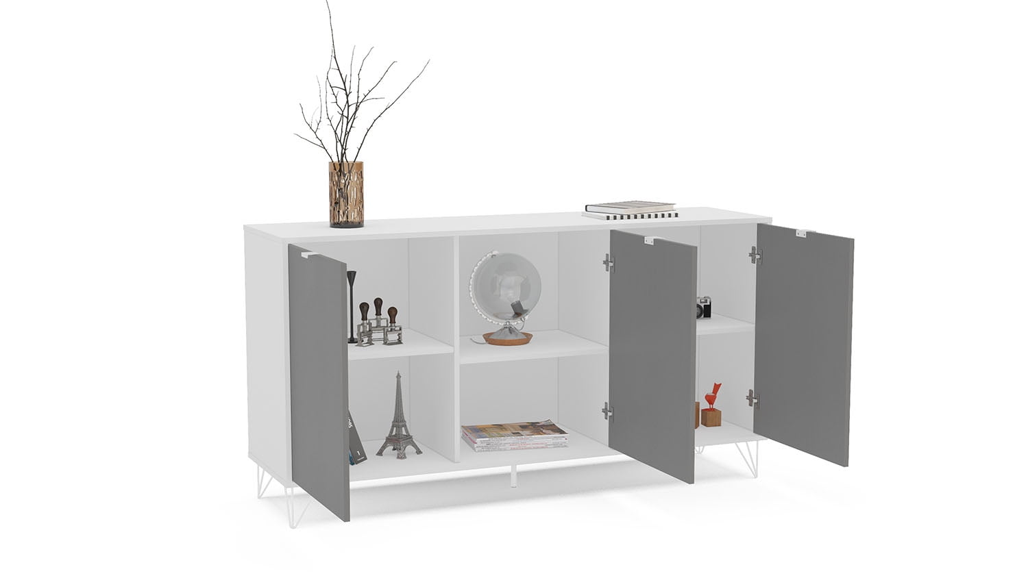 Polifurniture Montreal Modern 59 in. 3 Door Sideboard with 3 Shelves, White & Gray