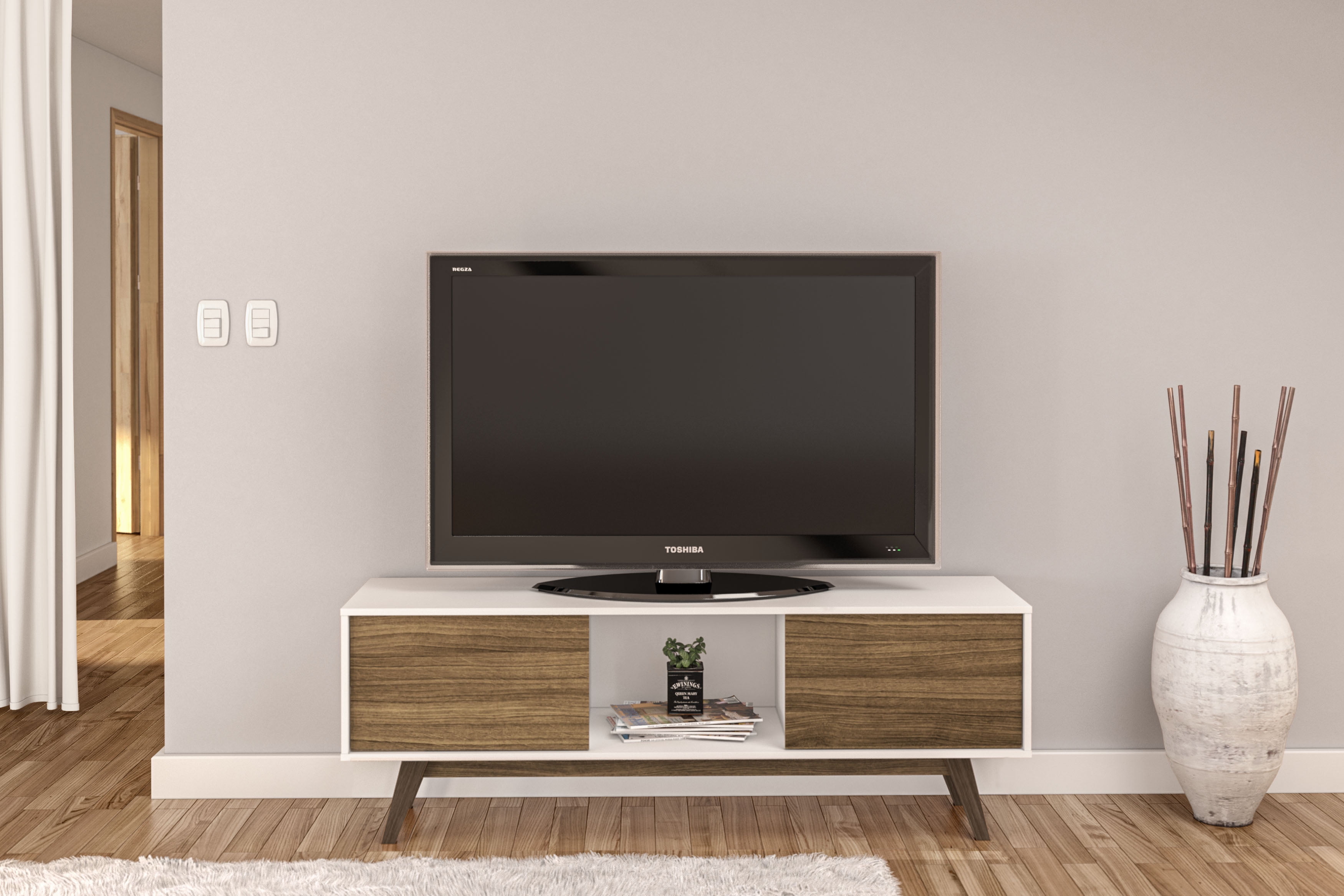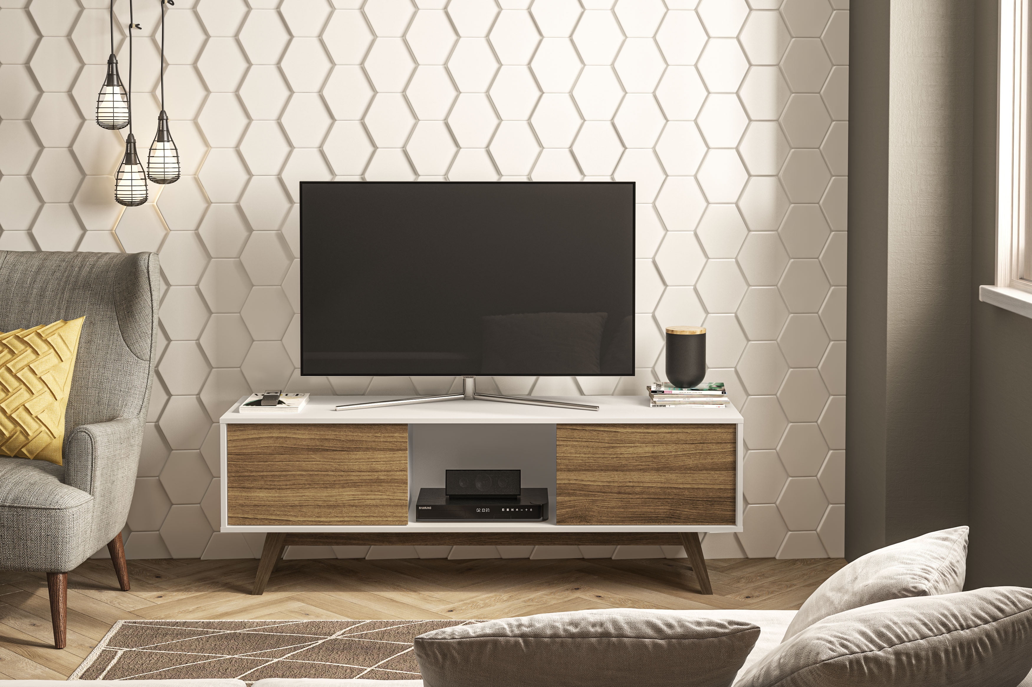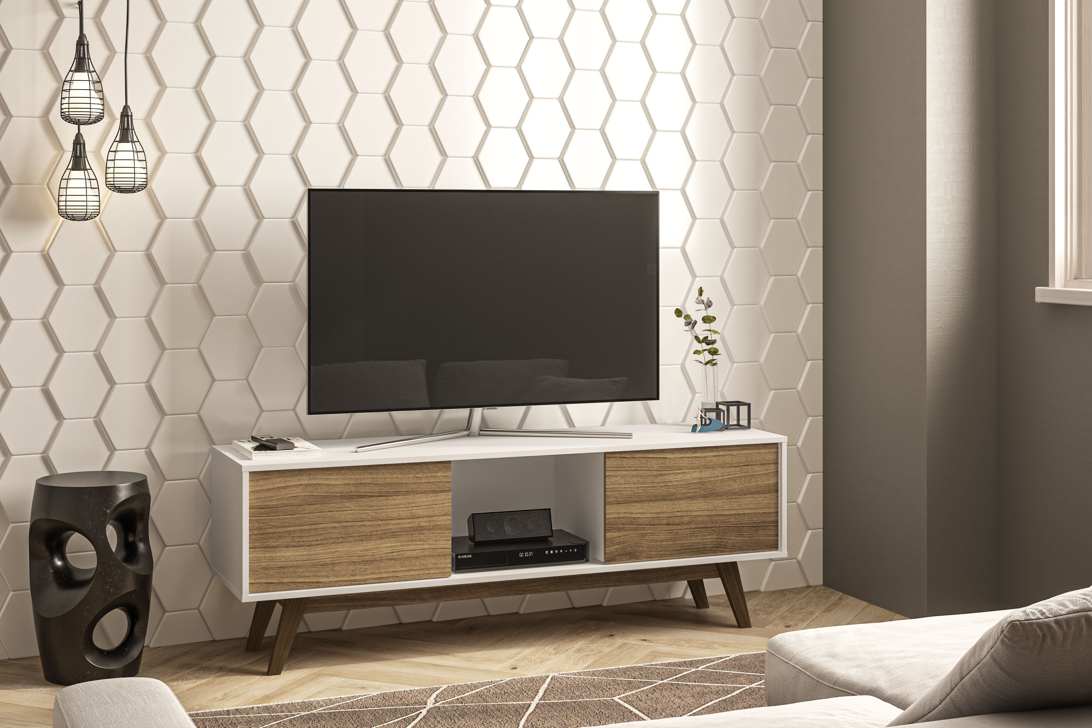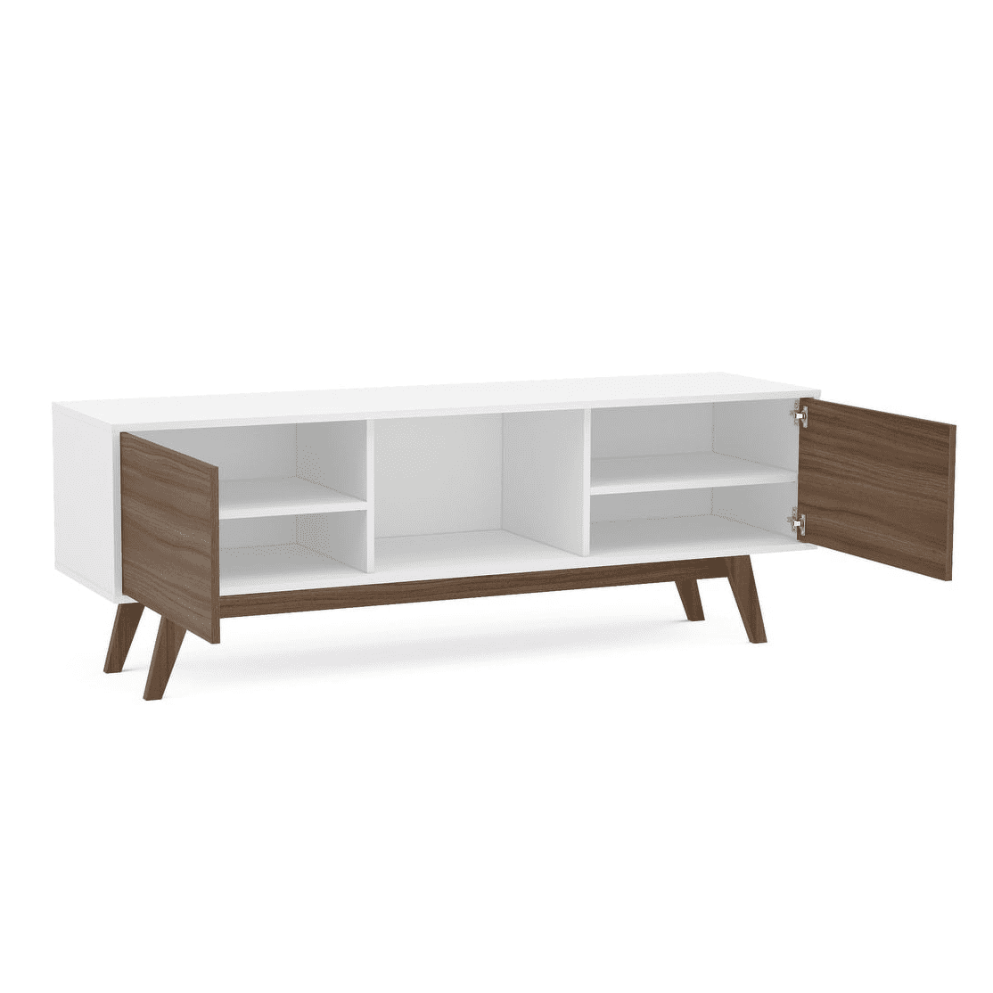Polifurniture Porto Rico 2 Door TV Stand for TVs up to 65″, White & Walnut