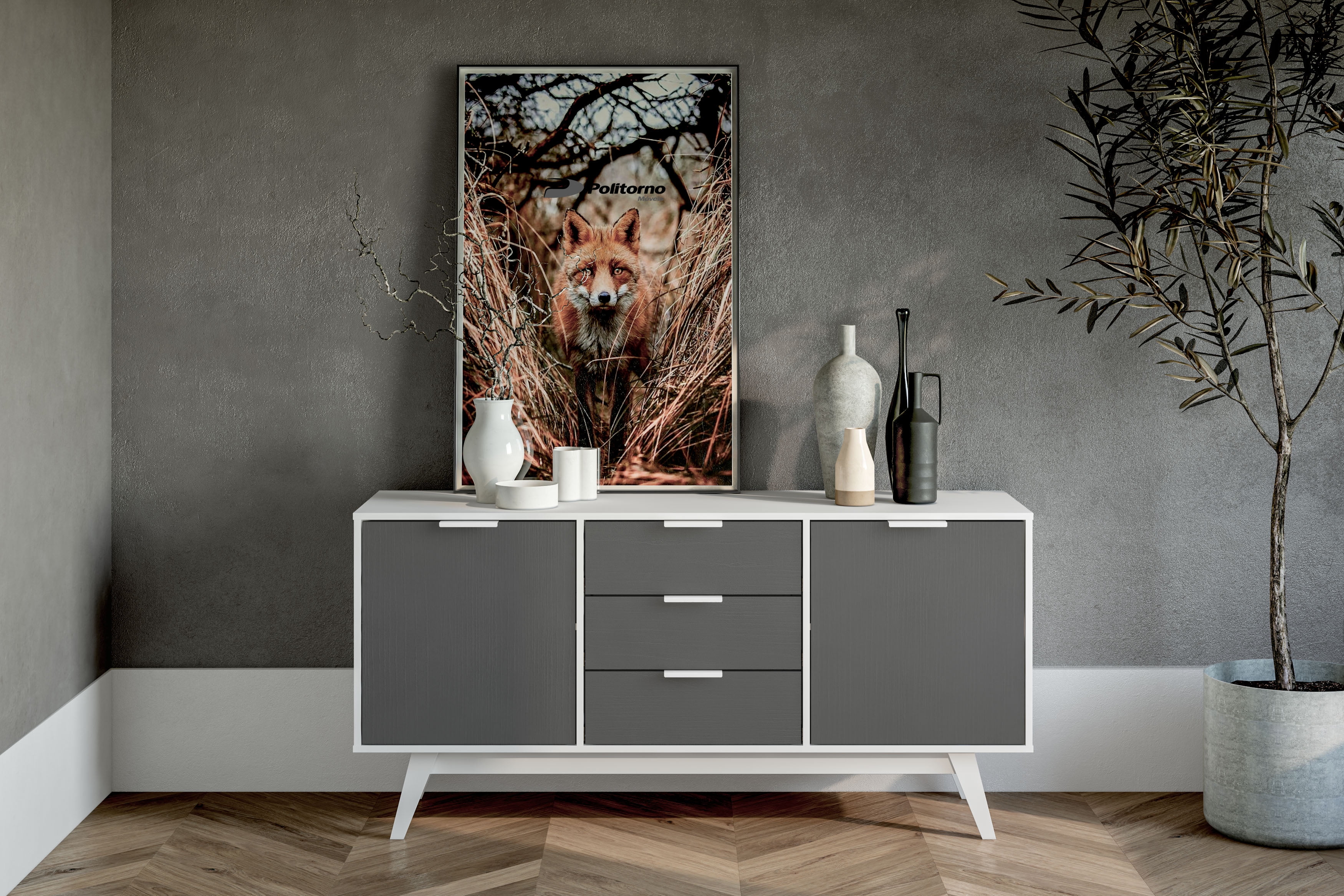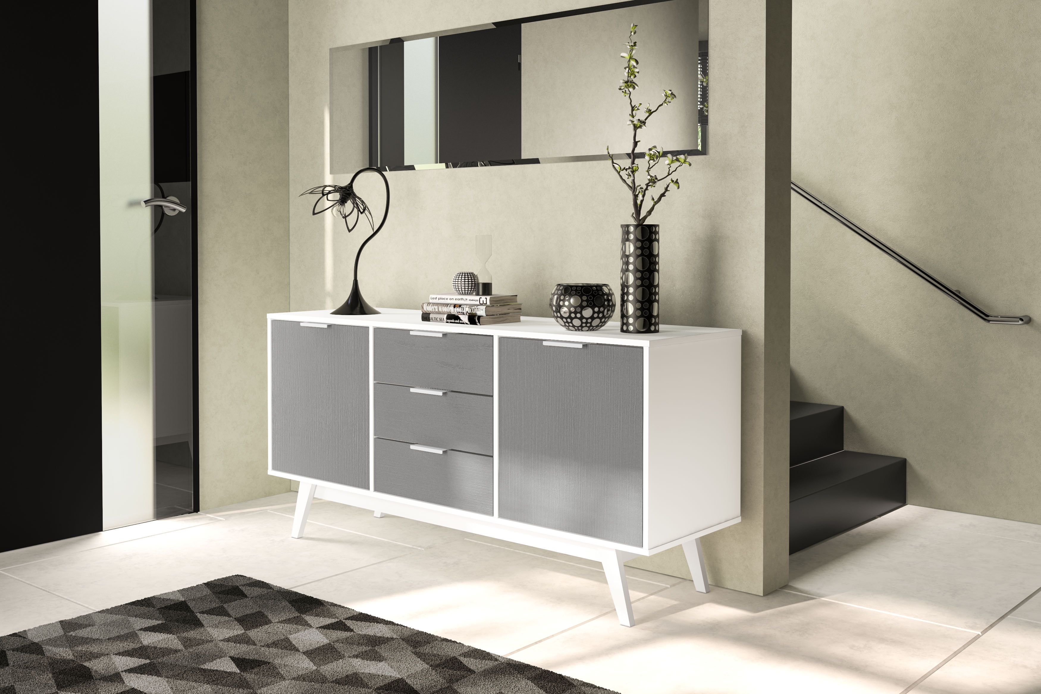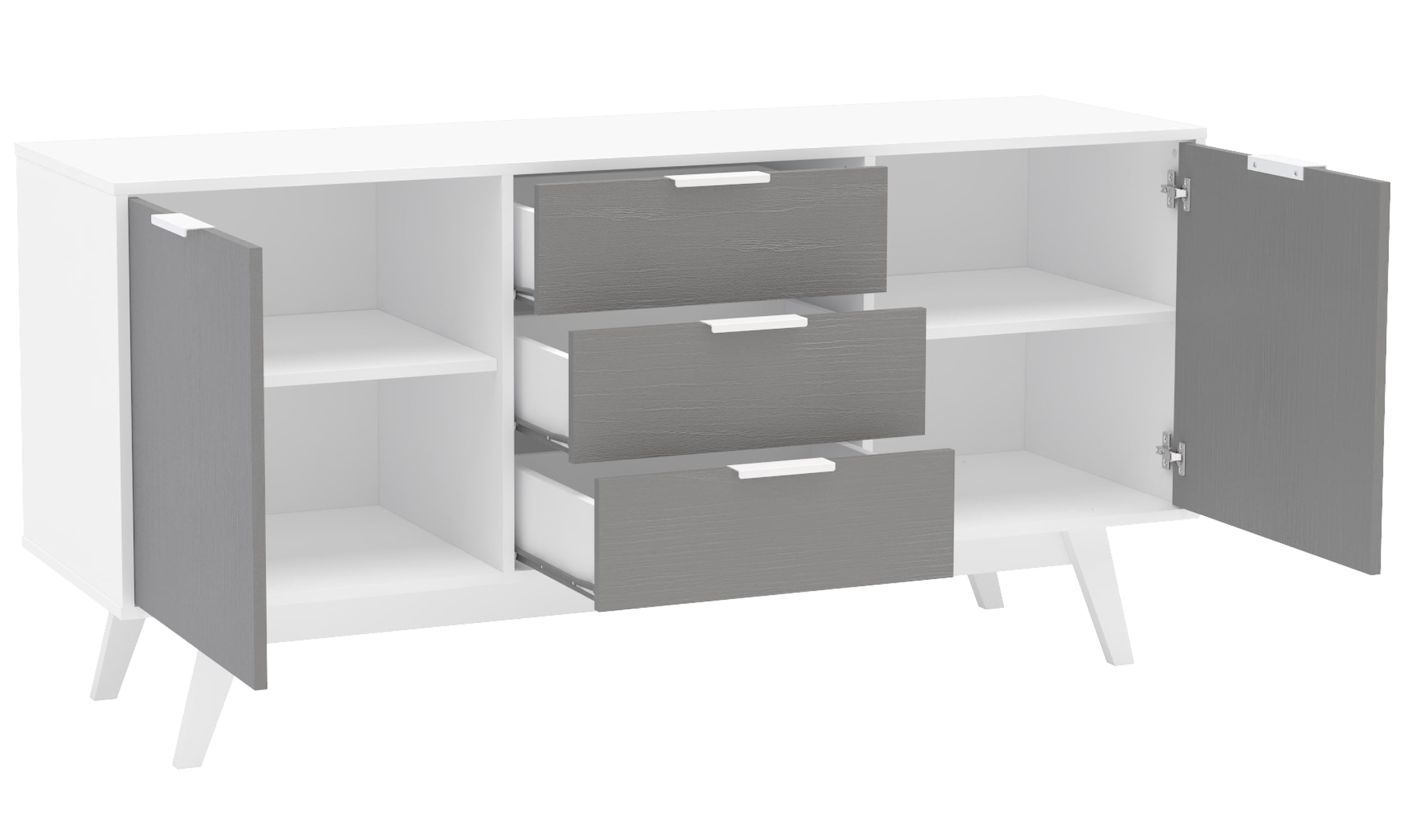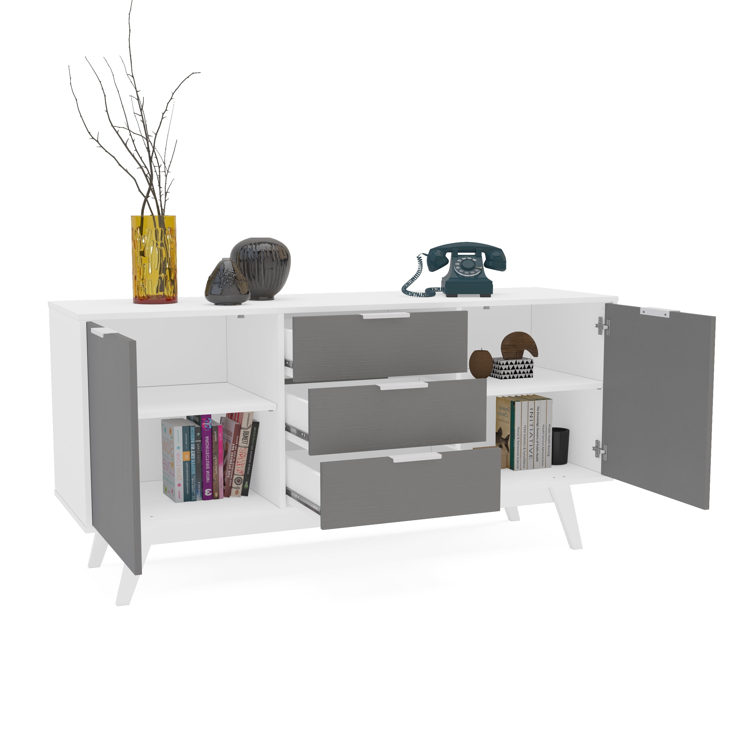 Polifurniture Shard 59 in. Sideboard with 2 Shelves & 3 Drawers, White & Gray