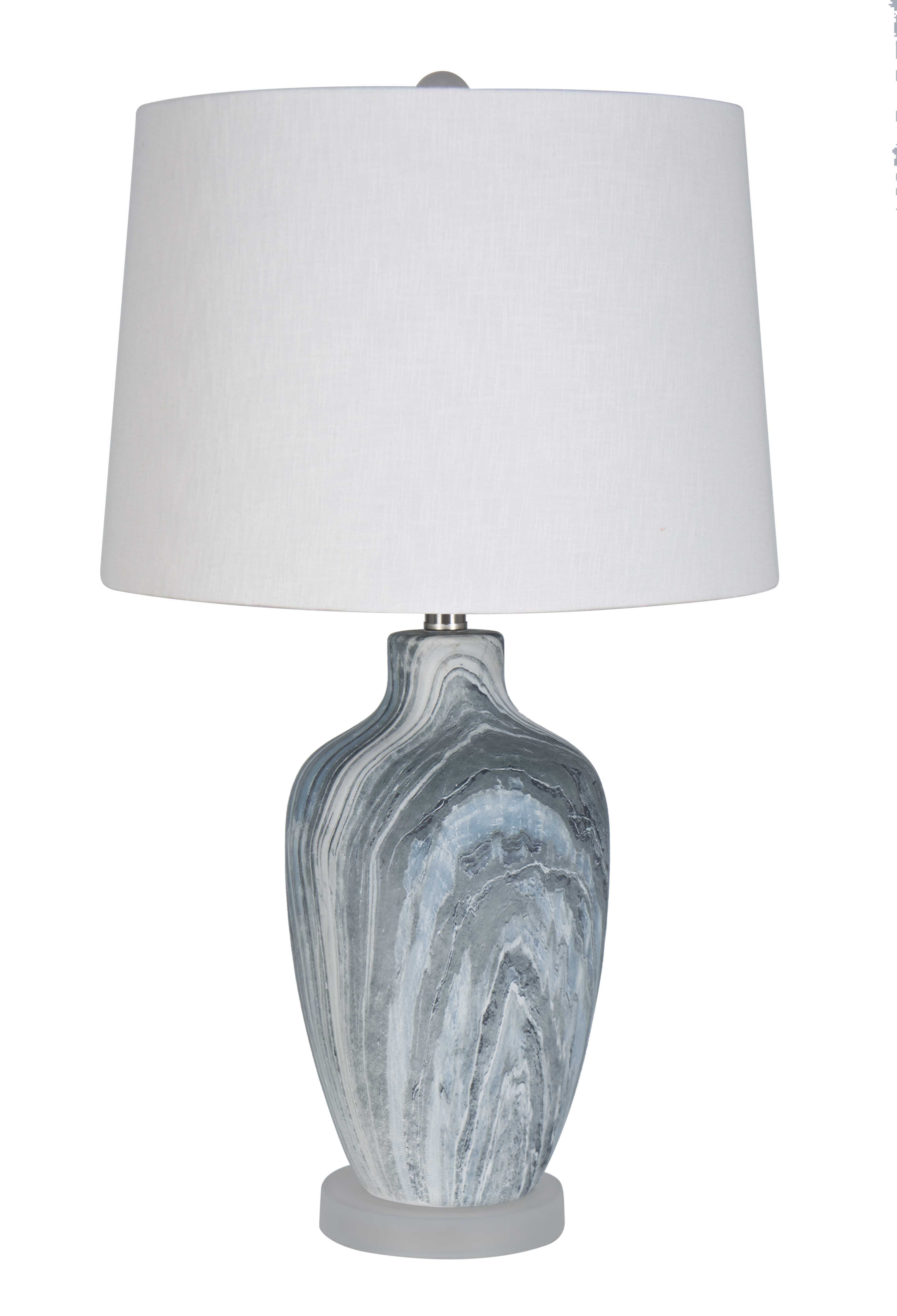 Made from ceramic, poly and fabric Requires one maximum 60-watt E26 medium base bulb (sold separately) 5-foot of cord Voltage: 120V Heathered Oatmeal Hardback Fabric Shade Shade is 9.5″ wide x 8.5″ high Ceramic, Polyester Resin, Fabric import from China Clear cord
