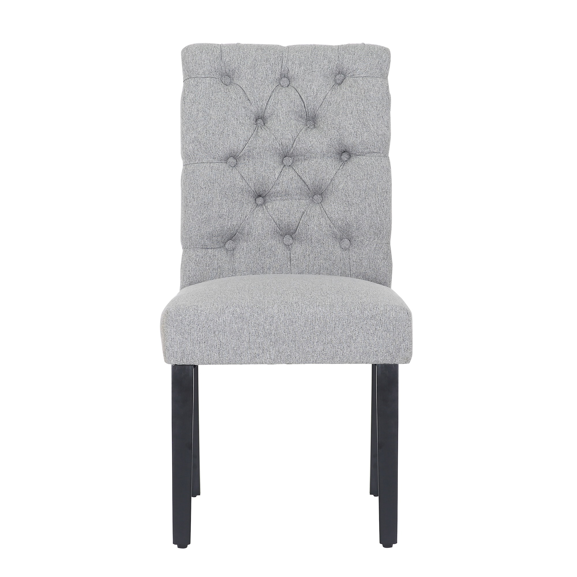 Upgrade your dining experience with the Grandview Tufted Upholstered Linen Fabric Dining Chair. Whether you’re entertaining guests or enjoying a family meal, this chair provides both comfort and elegance. Its classic linen fabric, chic diamond pattern, button tufted detailing, and nailhead trim add a touch of sophistication to any space. With its solid wood frame and thick foam cushioning, you can sit comfortably for hours. Features: Classic linen fabric with a chic diamond pattern Button-tufted back with thick padding for comfortable seating Sophisticated nailhead trim detailing Solid wood frame for durability and stability Thick foam cushioning for added comfort Easy assembly with all tools provided