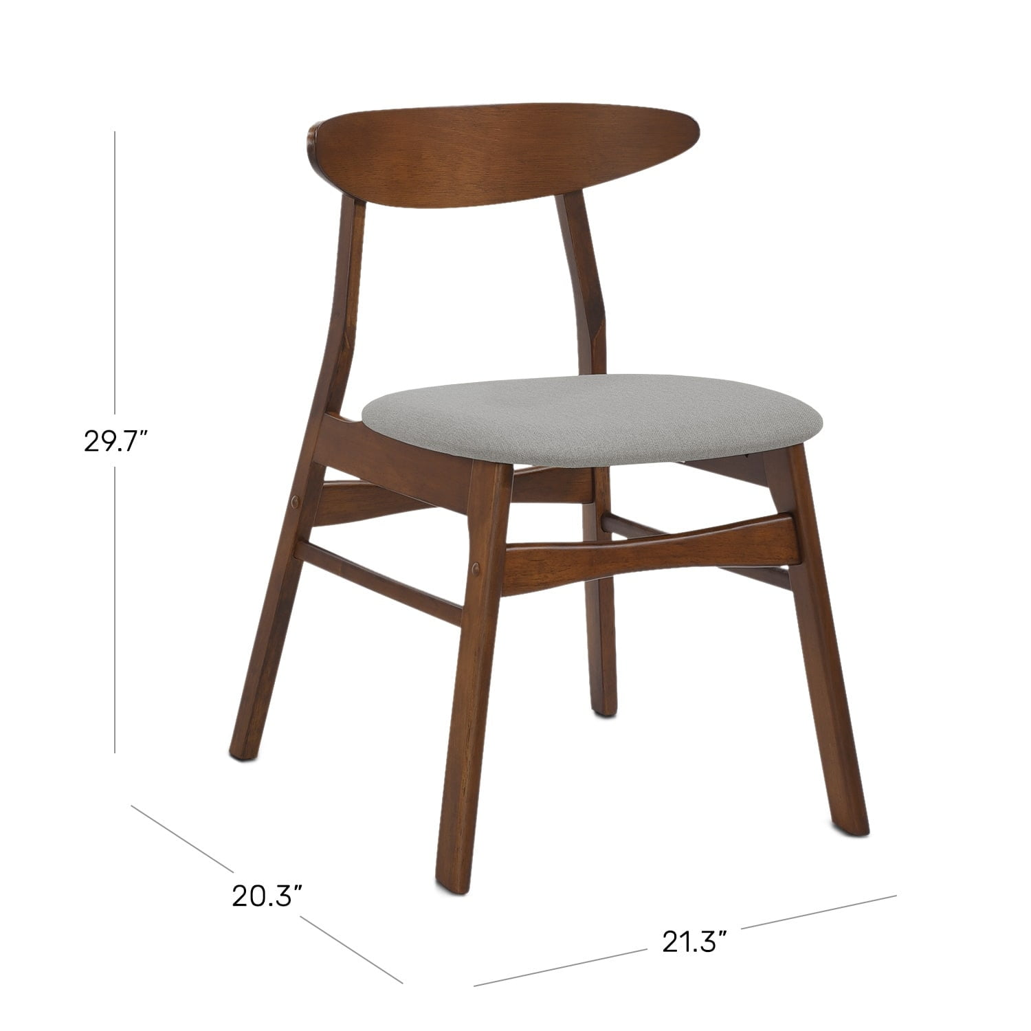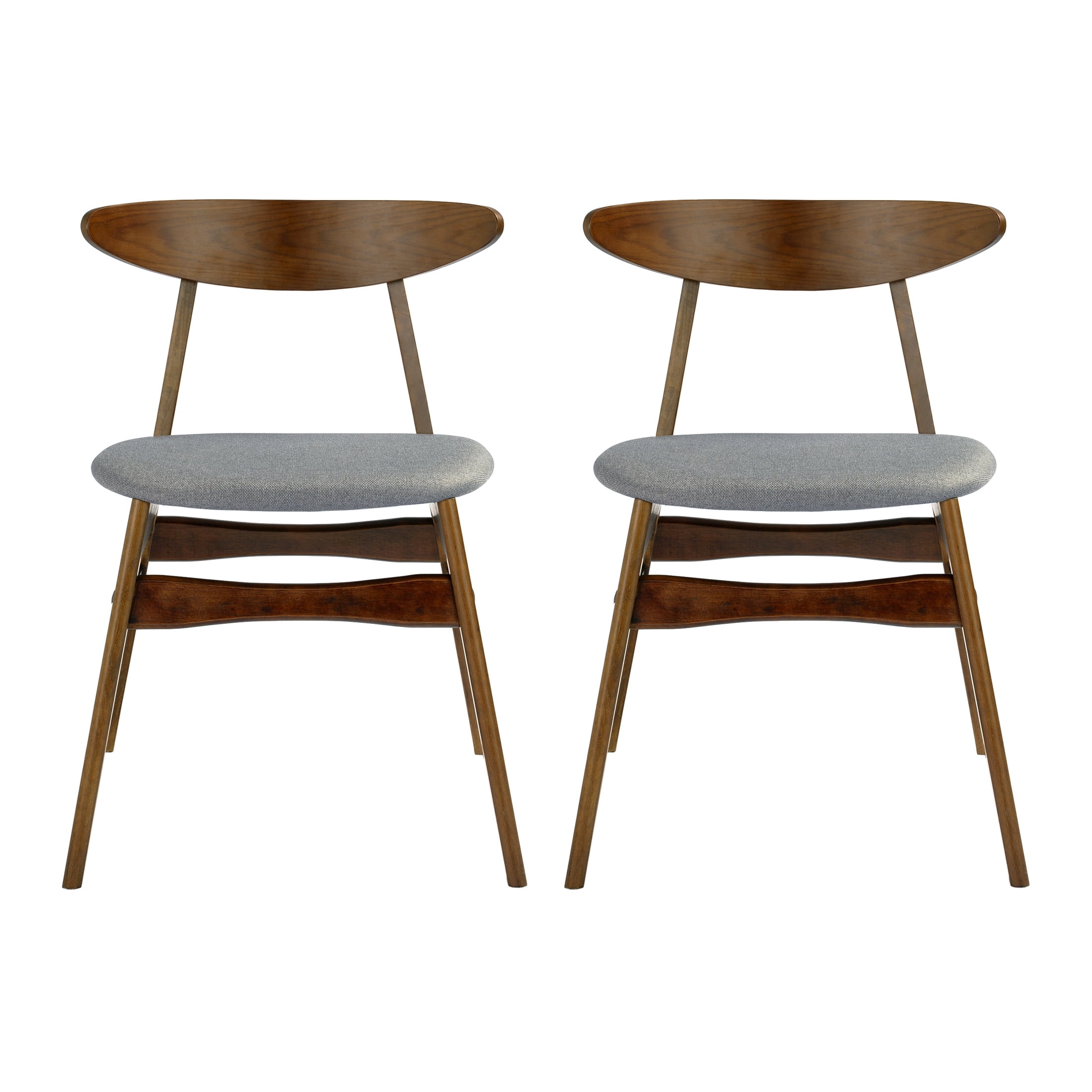 Add stylish seating to your dining area with the Grandview Upholstered Dining Chairs. These chairs feature mid-century modern style splayed legs and a curved backrest that provide both fashion and comfort. The upholstered cushioned seats offer durability and support for long-lasting use. With tapered legs, these chairs complement modern, farmhouse, and rustic decor. This set includes two chairs, making it perfect for smaller dining areas or as additional seating in larger spaces. Features: Set of 2 dining chairs Made of rubberwood and fabric Cushioned seats for added comfort Curved backrests provide ample support Iconic mid-century modern splayed legs Tapered legs complement various decor styles Matching table sold separately under item #32038678.