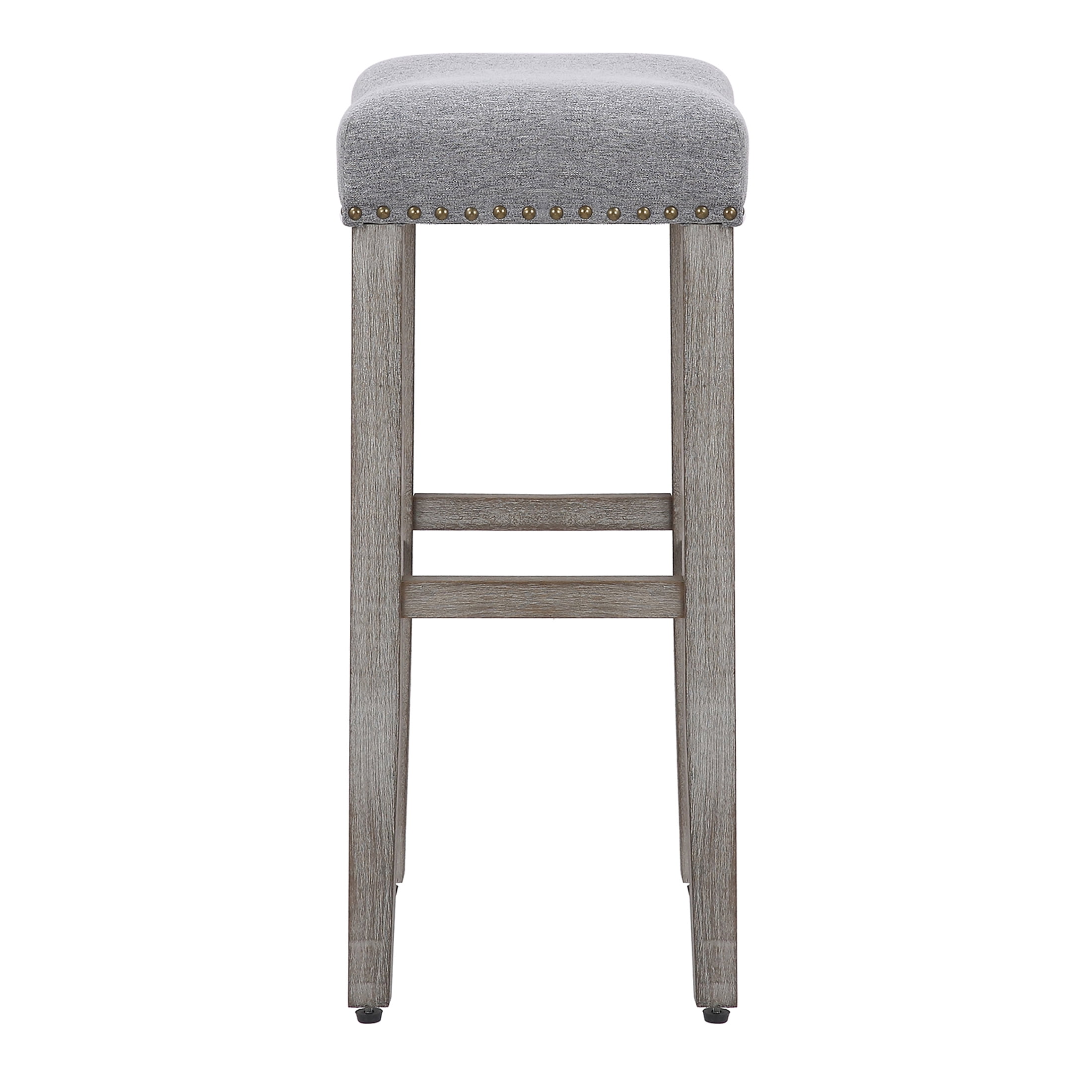 Create a space for private conversations with the Jameson Upholstered Polyester 29″ Bar Stool with Gray Legs – (Set of 2). The dense polyurethane foam padding ensures comfort and resilience, while the antique gray solid rubberwood legs add a touch of elegance. Whether you’re sharing heartfelt talks or simply enjoying each other’s company, these stools provide the perfect seating experience for cozy togetherness. Features: Set Includes: Two (2) Jameson 24″ Saddle Seat Bar Stools Antique Gray Solid Rubberwood Legs Add a Touch of Vintage Charm to the Design for Aesthetic Appeal Adjustable Feet Levelers Balance the Chair on Uneven Floors, Ensuring Stability Without Wobbling Saddle-Style Seat with Bronze Nail Head Trim Enhances Comfort and Style, Offering a Cozy Seating Experience with Added Visual Appeal Solid Rubberwood Frame and Legs Ensure Lasting Durability and Stability for Reliable Support Generously Padded with Dense Polyurethane Foam for Comfort and Resilience S-Shaped Springs and Elastic Construction Ensure Long-Lasting Shape and Support Dimensions: Assembled Dimensions Per Stool: 18.5″ W x 13.4″ D x 29″ H Seat Height – Floor to Seat Per Stool: 29″ Seat Width Per Stool: 18.5″ Seat Depth Per Stool: 13.4″ Additional Details: Item Weight Per Stool: 11 lbs. Weight Capacity Per Stool: 260 lbs. Recommended Uses: Counter Stool, Art Stool, Bar Stool