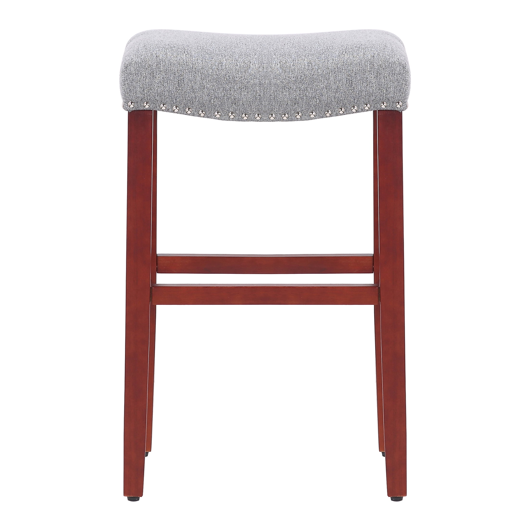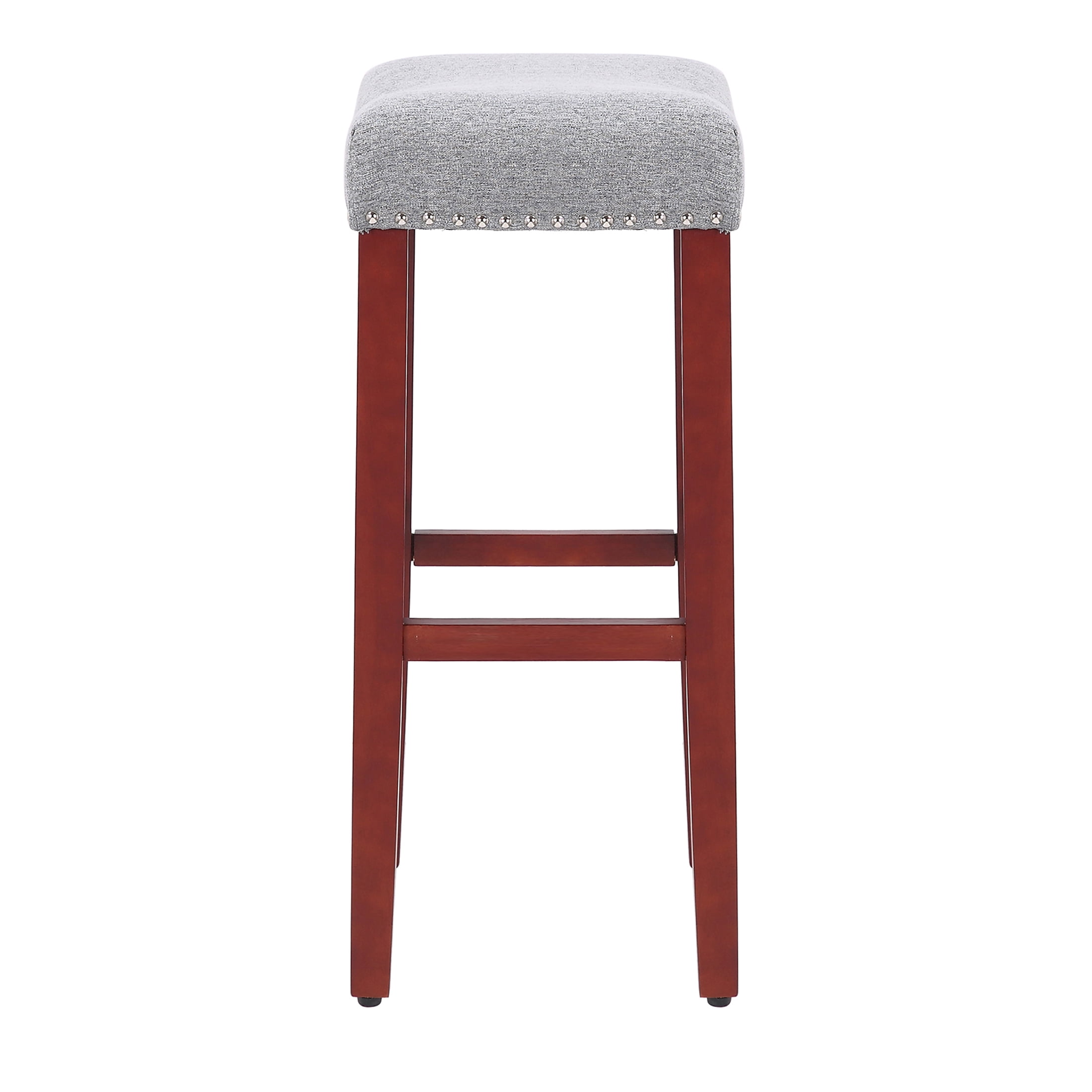 Polytrends Jameson Upholstered Polyester 29″ Bar Stool with Cherry Legs – (Set of 2) Cherry/Gray