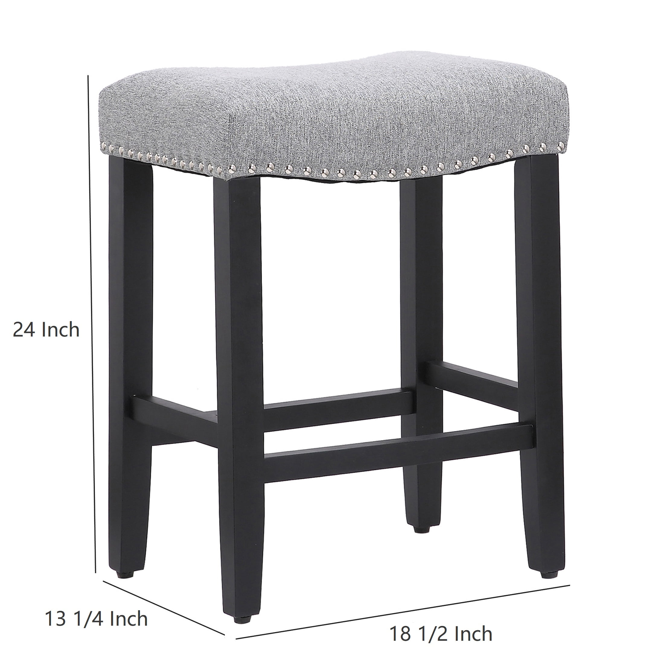 Sink into serenity with the Jameson Upholstered Polyester 24″ Counter Stool – Saddle Seat/ Black Legs. Crafted for solitary comfort, this stool features antique black solid rubberwood legs that add a touch of vintage charm. The saddle-style seat with bronze nail head trim offers an intimate seating experience, perfect for quiet reflection or enjoying a moment of personal leisure. Features: Antique Black Solid Rubberwood Legs Add a Touch of Vintage Charm to the Design for Aesthetic Appeal Adjustable Feet Levelers Balance the Chair on Uneven Floors, Ensuring Stability Without Wobbling Saddle-Style Seat with Bronze Nail Head Trim Enhances Comfort and Style, Offering a Cozy Seating Experience with Added Visual Appeal Solid Rubberwood Frame and Legs Ensure Lasting Durability and Stability for Reliable Support Generously Padded with Dense Polyurethane Foam for Comfort and Resilience S-Shaped Springs and Elastic Construction Ensure Long-Lasting Shape and Support Dimensions: Assembled Dimensions: 18.5″ W x 13.2″ D x 24″ H Seat Height – Floor to Seat: 24″ Seat Width: 18.5″ Seat Depth: 13.4″ Additional Details: Item Weight: 11 lbs. Weight Capacity: 260 lbs. Recommended Uses: Counter Stool, Bar Stool, Art Stool