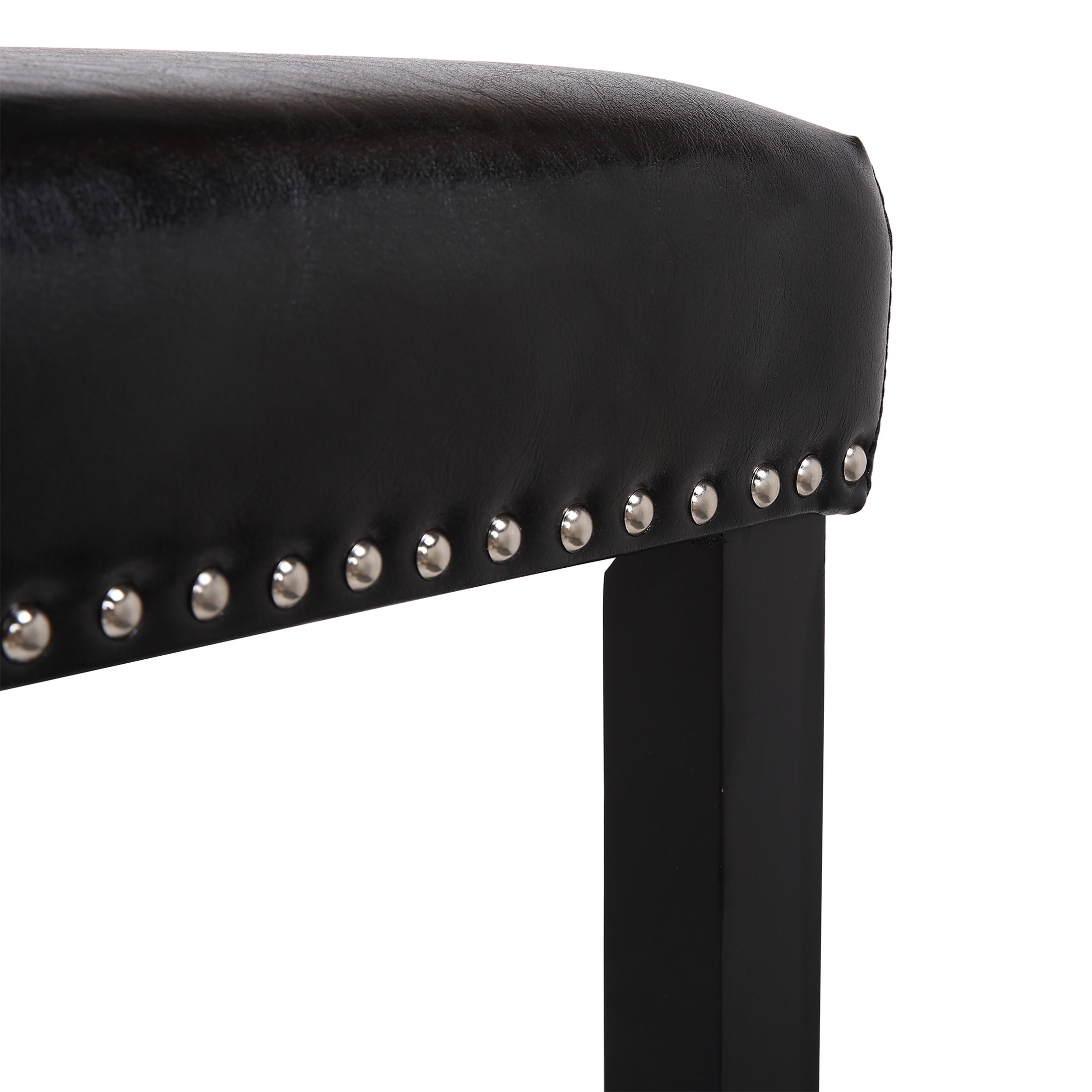 Polytrends Jameson Upholstered Polyester Black 24 Inch Counter Stool (Set Of 2) Black/Black Wood Rubberwood Footrest Leather Glam