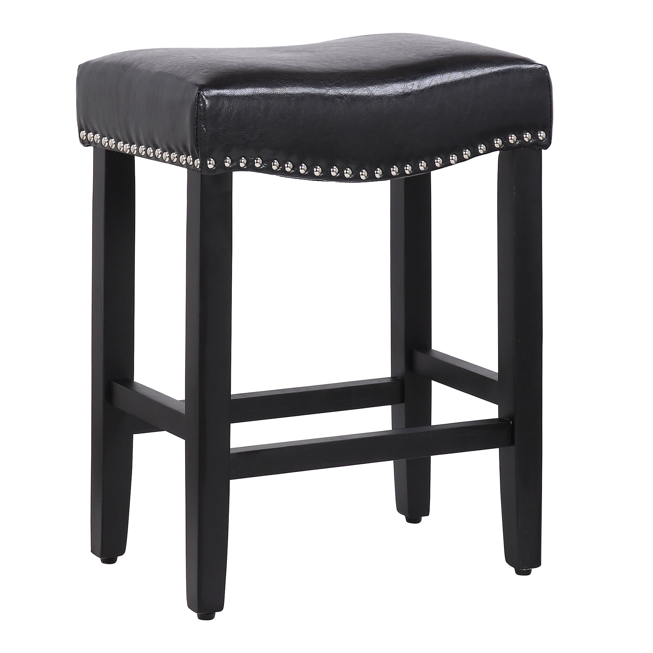 Set Includes: Two (2) Jameson 24″ Saddle Seat Bar Stools Antique Black Solid Rubberwood Legs Add a Touch of Vintage Charm to the Design for Aesthetic Appeal Adjustable Feet Levelers Balance the Chair on Uneven Floors, Ensuring Stability Without Wobbling