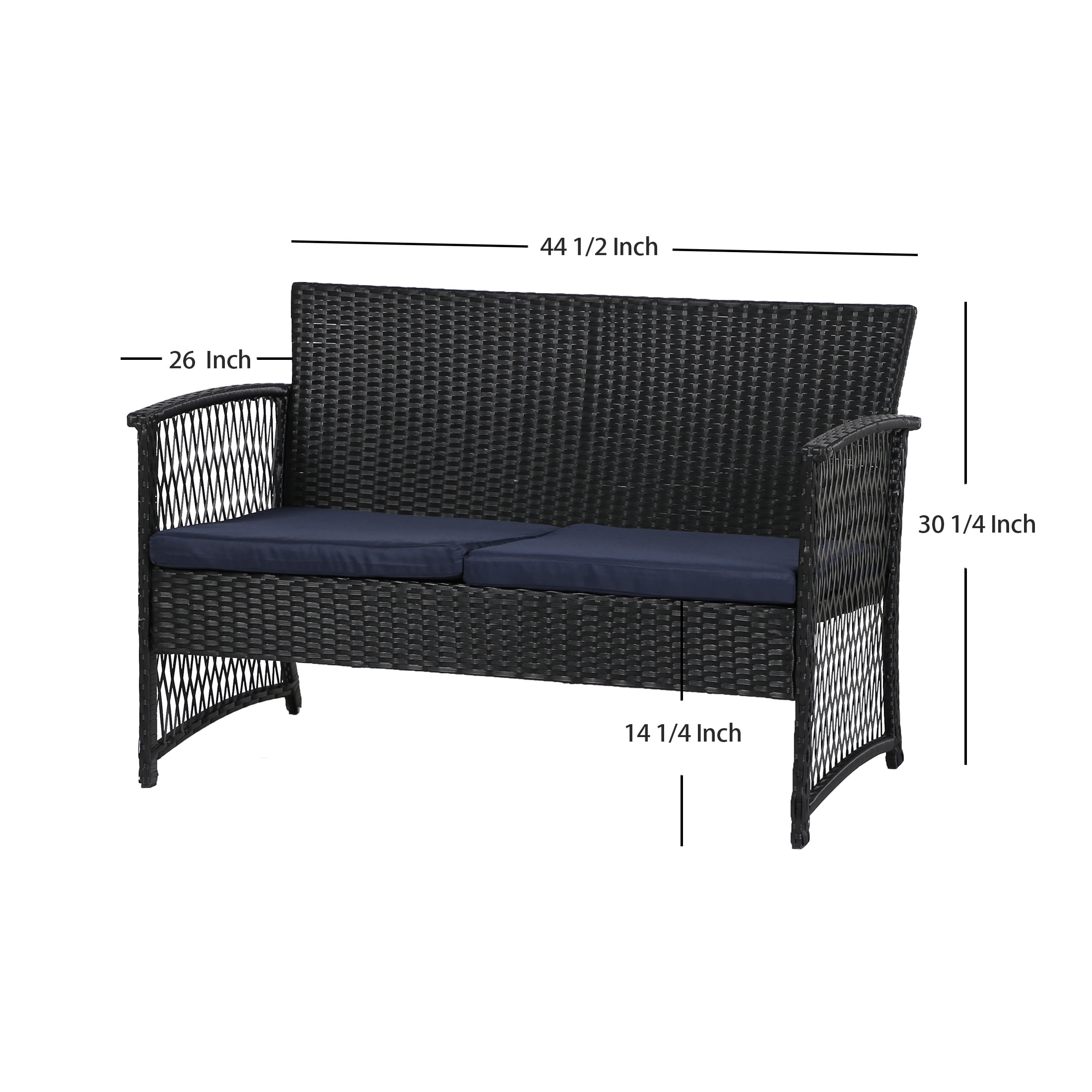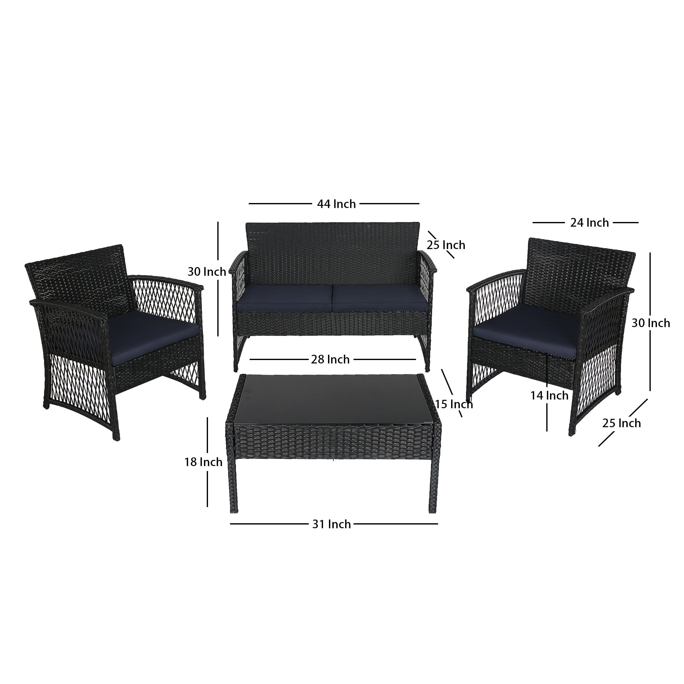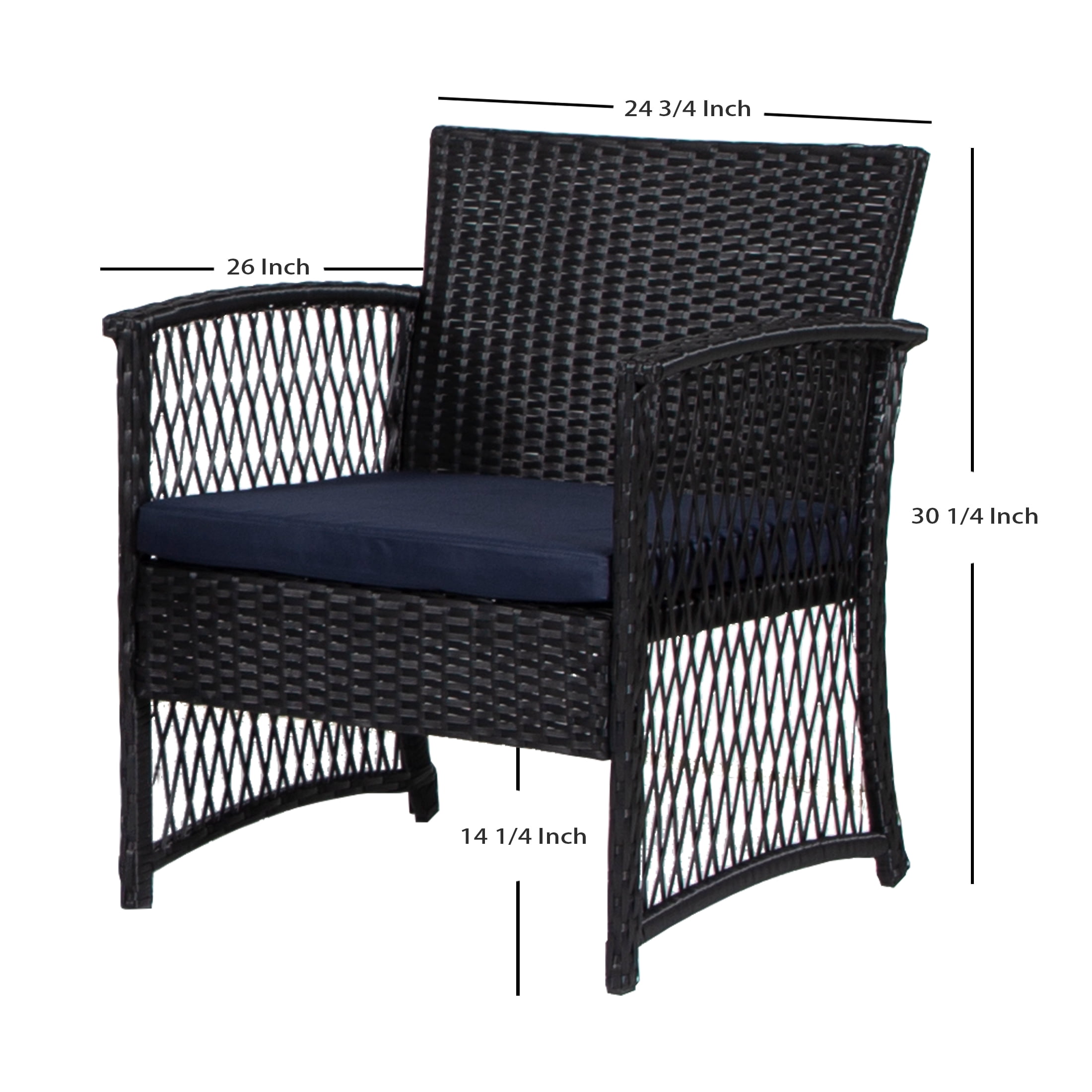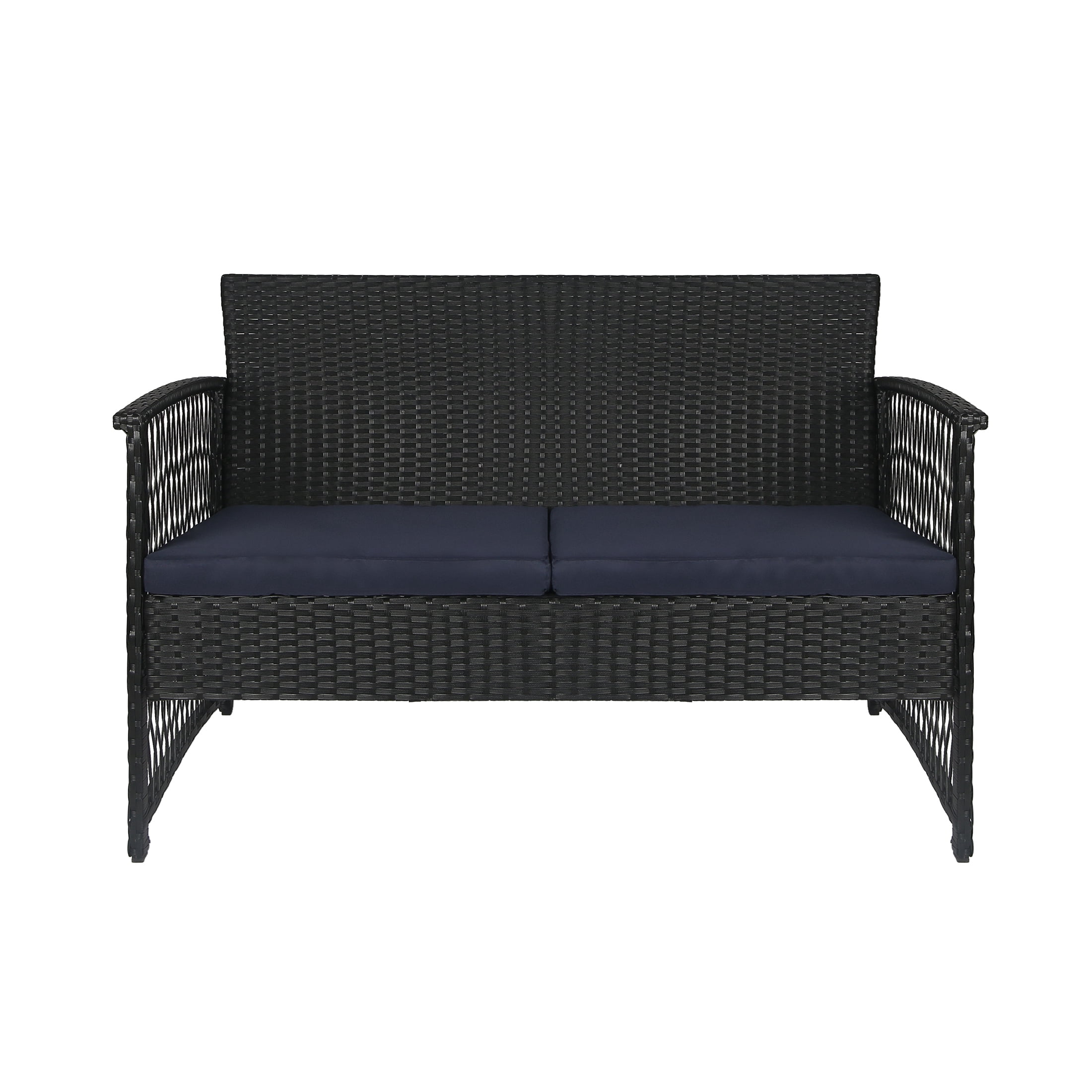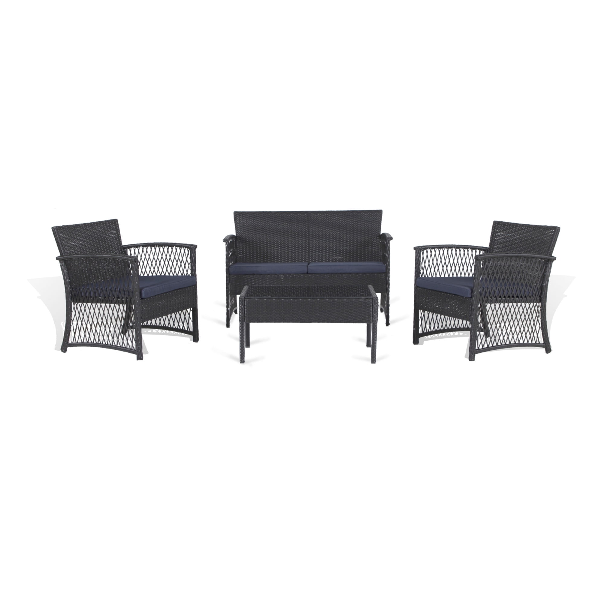 Polytrends Madison Outdoor 4-Piece Rattan Patio Furniture Chat Set Black/Navy