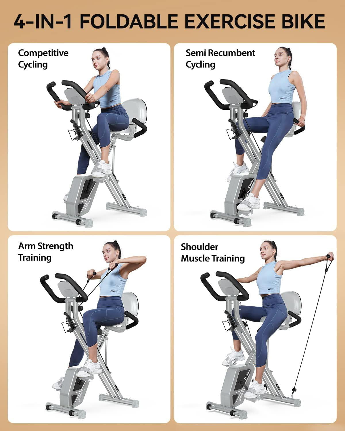 Product Description Why You Choose pooboo 3-in-1 Folding Magnetic Indoor Cycling Bike ? No time to do exercise we need or spend expensive fee to be a gym member?Sit along before a screen for a long time cause fat accumulation on belly?Skin slack after gave birth to a baby? LCD Monitor & Phone Holder:The advanced LCD Monitor of the exercise bike display Time, Speed, Distance, Heart Rate and Calories clearly, tracking your exercise data. Hence, you know your daily workout.Enjoy riding and entertainment at the same time with the Pad/Phone Holder of the exercise bike stationary Exercise Your Arm Two length adjustable resistance bands help to exercise your arm muscles and upper body while riding. Add resistance training to your workouts with the Dumbbell, Set of 2 Resistance training not only tones muscles and builds strength, but it can also burn calories, increase energy levels, protect bone health Upright Exercise Bike Indoor with 2 Dumbbells Equipped with 2 dumbbells, you can exercise your arm strength while stretching your legs. Each dumbbell weighs 2.2 pounds.Easy-grip neoprene coating for a secure hold. Attractive Muscles–Perfect for use in any exercise or program to tone and sculpt your arms, shoulders and back, including cardio for higher intensity.
