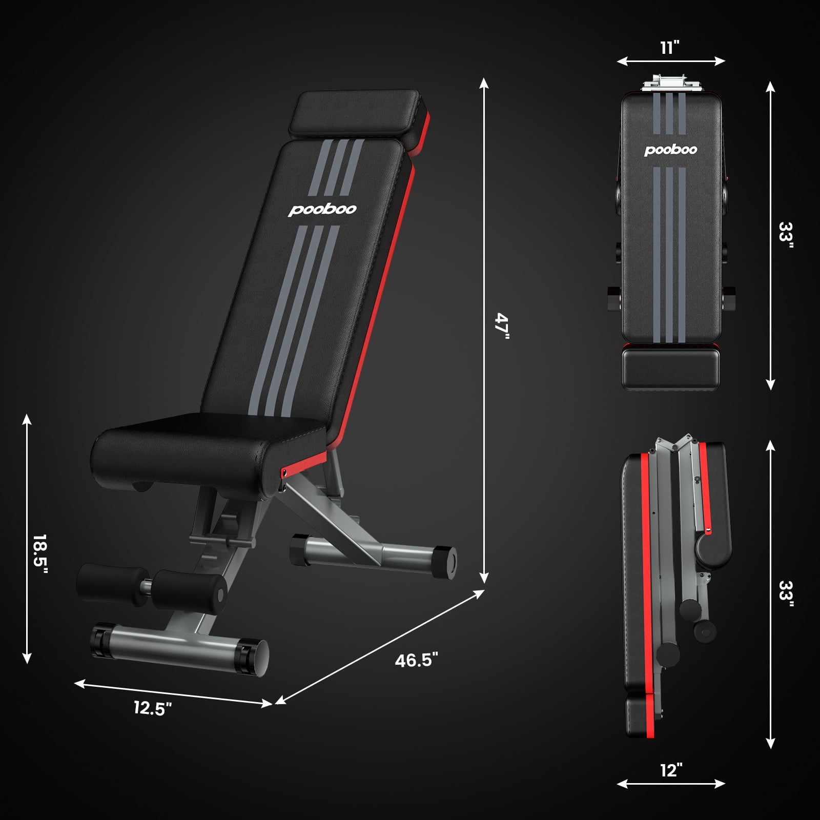 Pooboo Adjustable Dumbbell Bench Foldable Workout Weight Bench Press Incline Decline for Home Gym Strength Training 660LBS