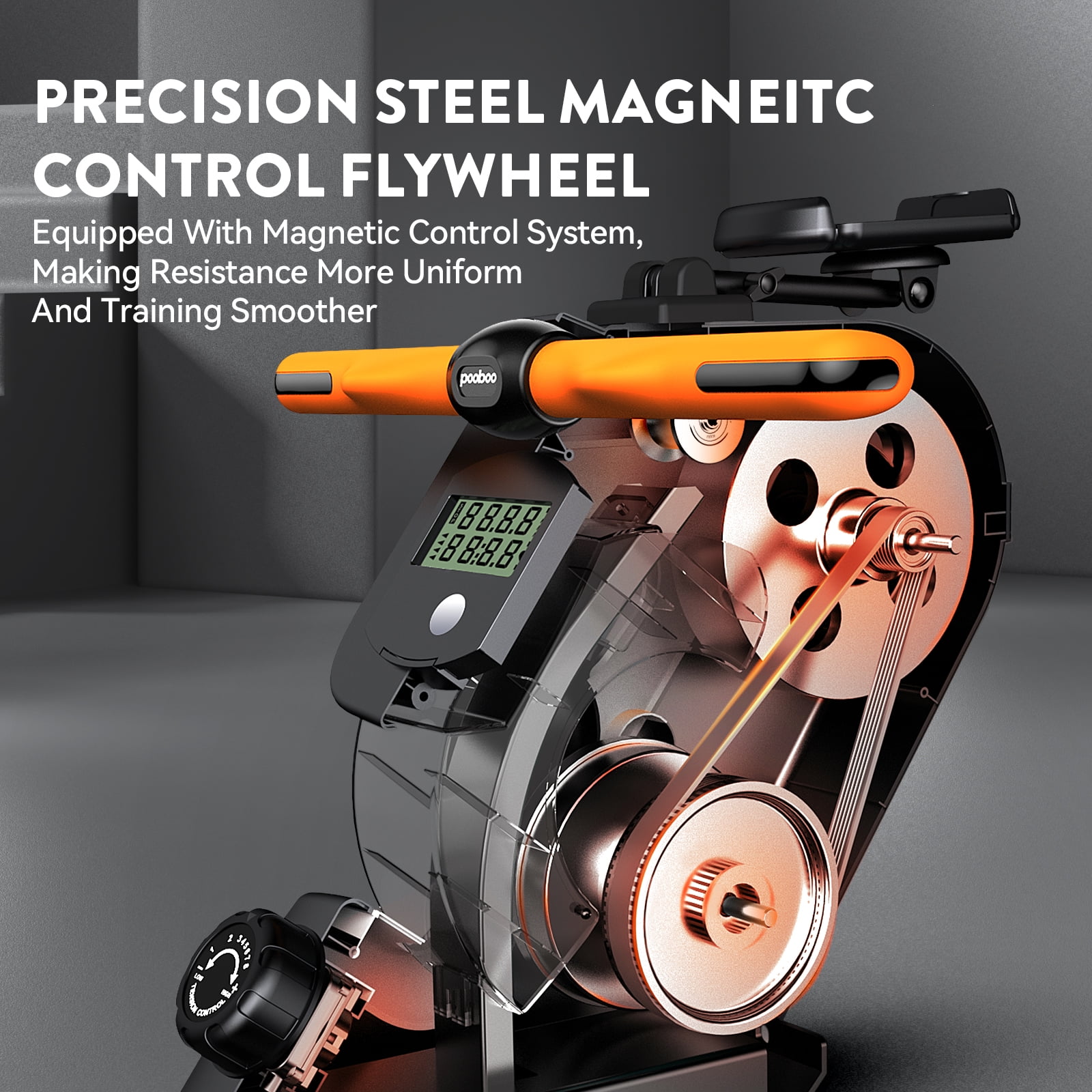 Pooboo Row Machine Magnetic Rowing Machine Indoor Foldable Rower with 8 Level Adjustable Quiet Magnetic Resistance, Ergonomic Seat & LCD Monitor Cardio Exercise Training Max Weight 350 lbs