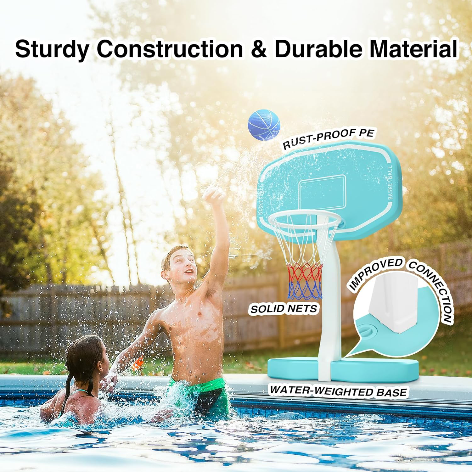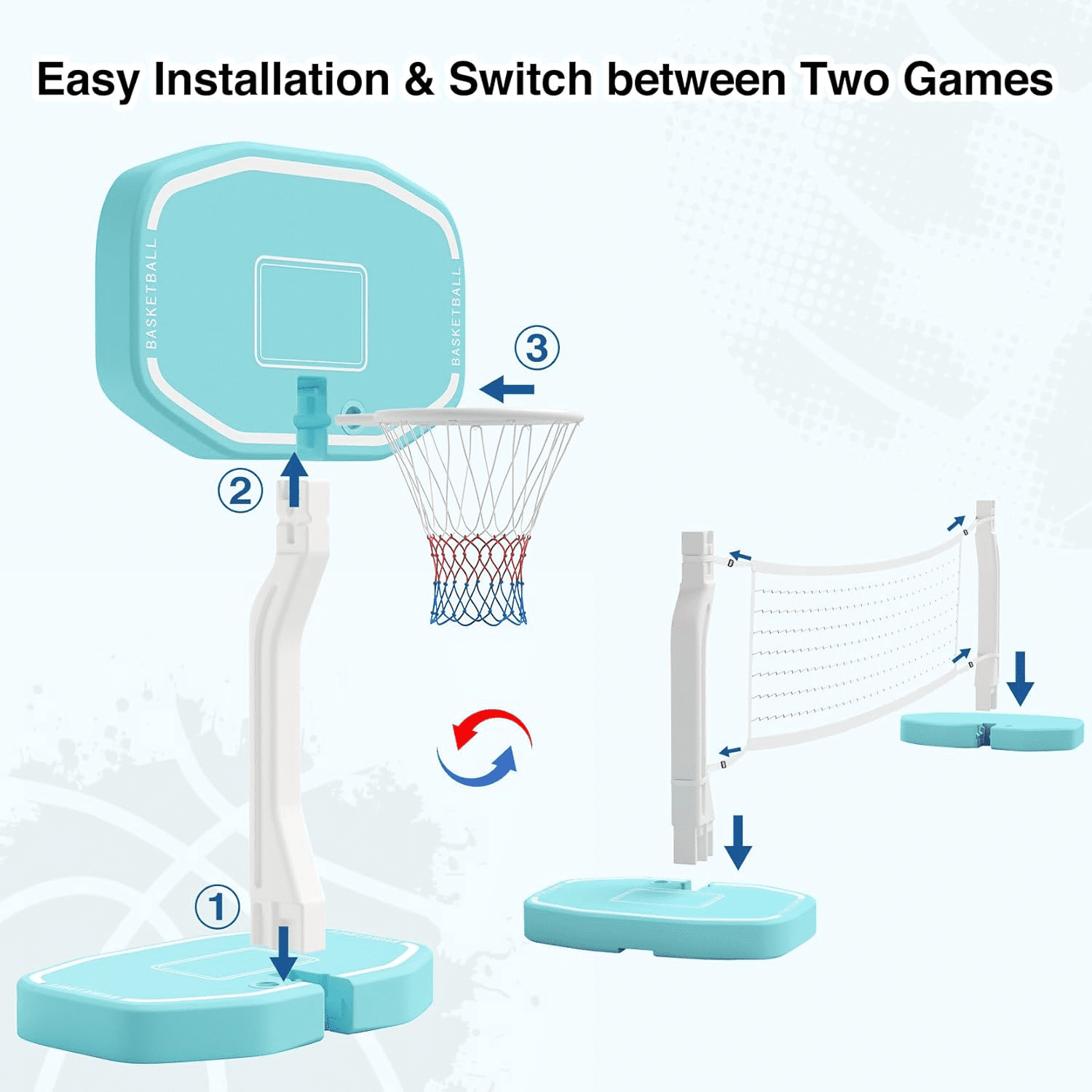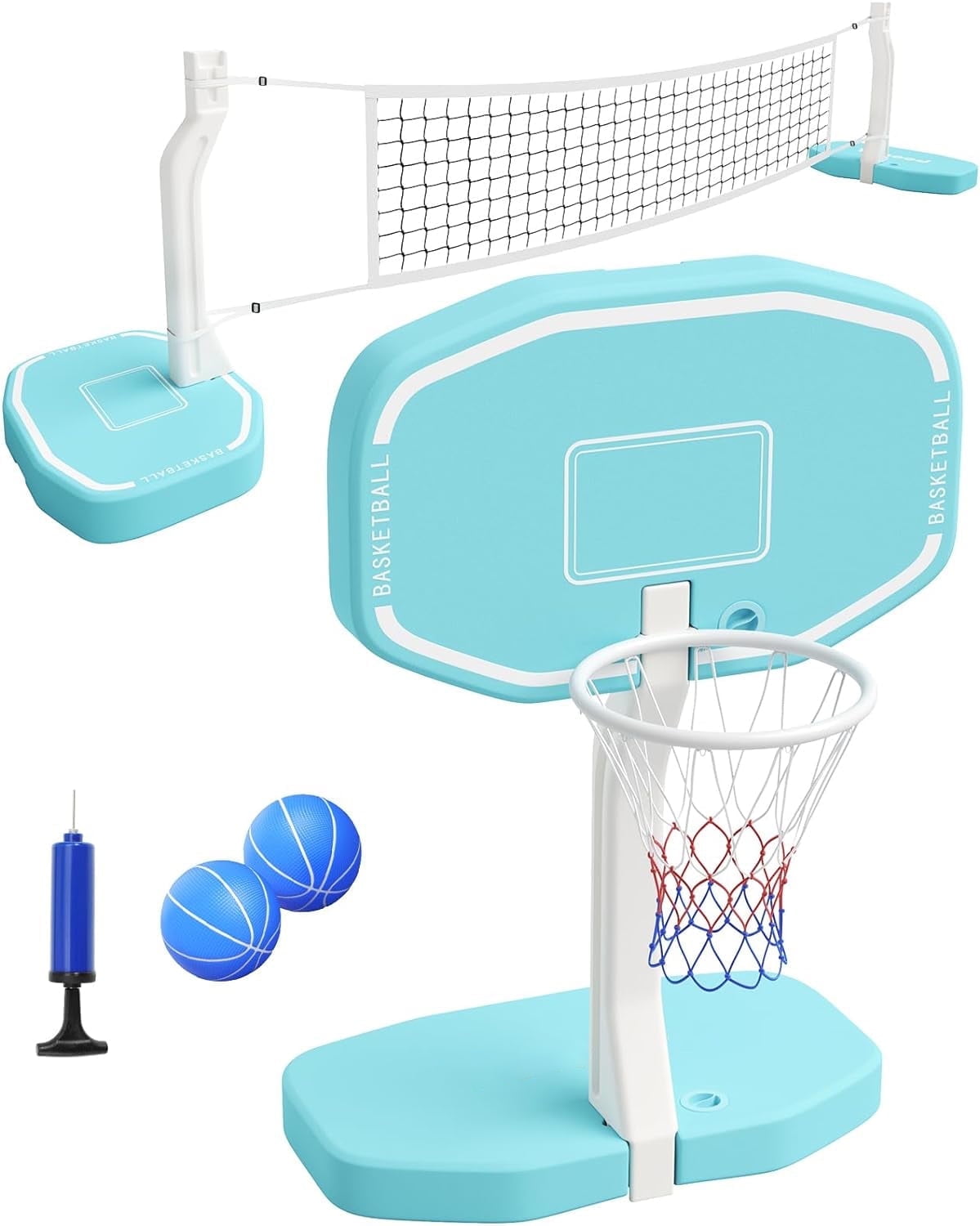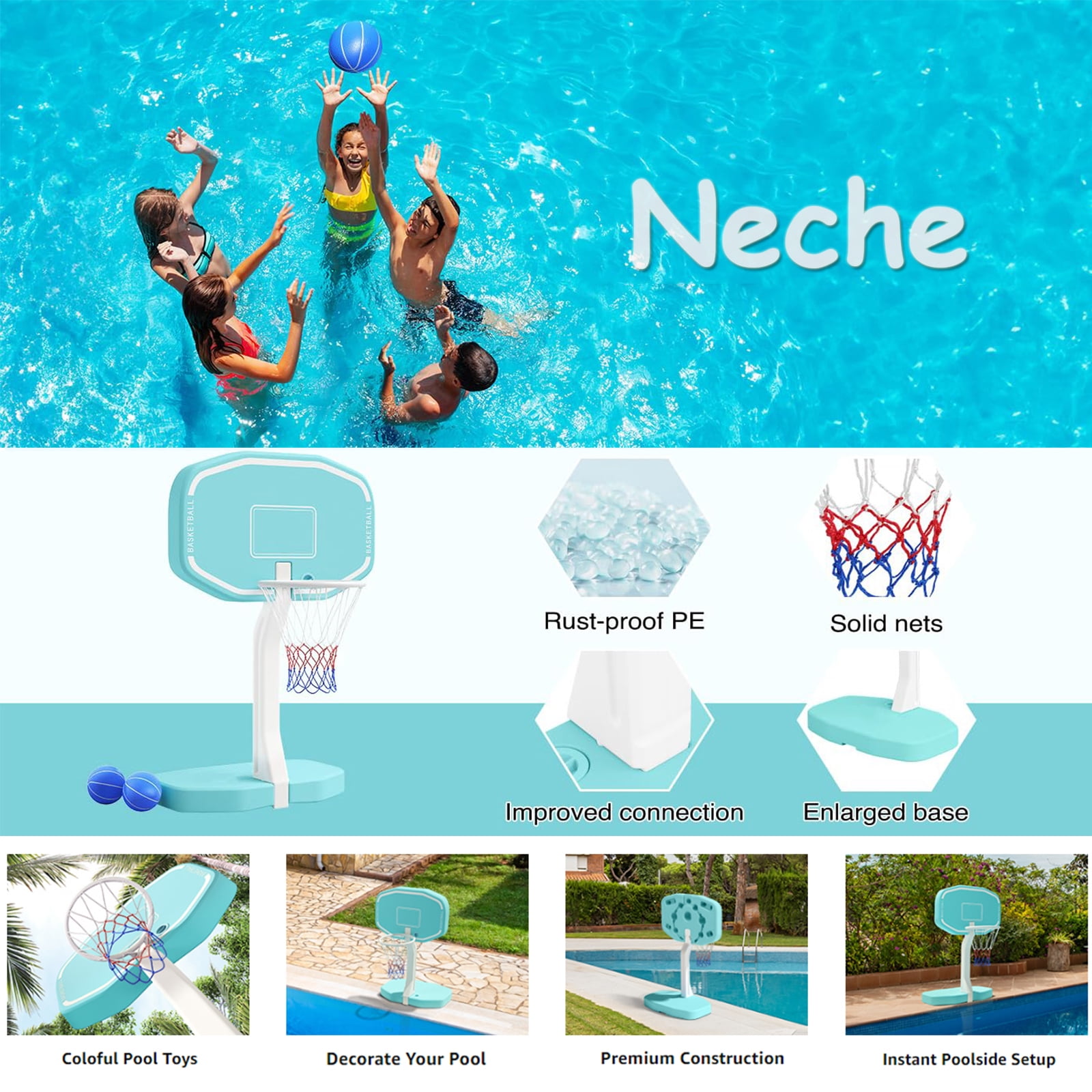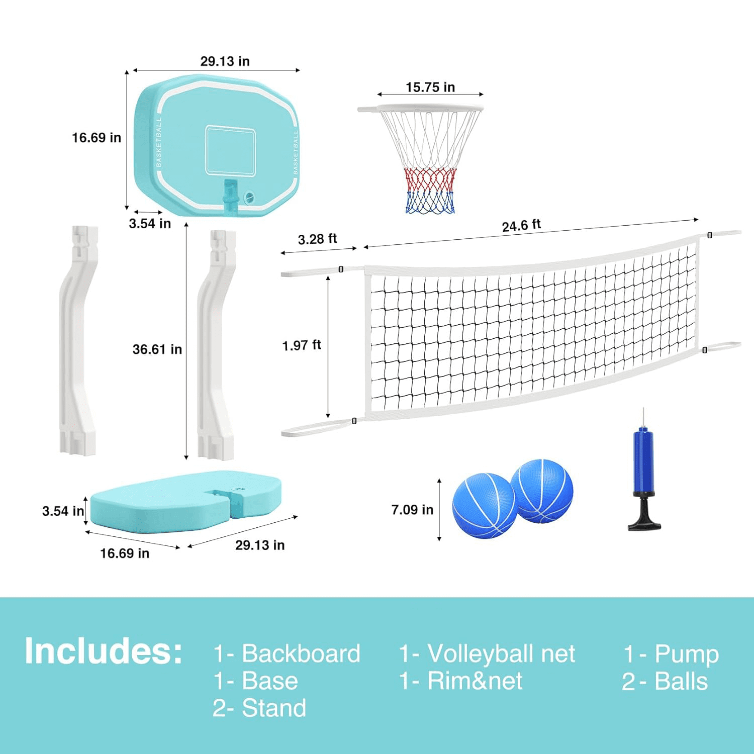 ????????????????Neche has a long history of developing innovative products of the highest quality. At Neche, we realize quality matters and strive to be the best manufacturer of recreational pool games and home decor in the industry. This Pool Basketball Hoop & Pool Volleyball Net, is made of safe, environmentally friendly and rustproof PE material and is one of the few 2-in-1 multifunctional Swimming pool games set. ????????????????Pool Basketball Hoop & Pool Volleyball Net, 2 in 1 Pool Toys Pool Accessories Pool Games for Inground Pools, Swimming Poolside Basketball Set for Kids Adults. ????2-IN-1 Multifunctional: Instantly switch between full court pool basketball and pool volleyball in seconds with no tools required; set includes 2 water basketballs and 2 water volleyballs with pump; ????Fullcourt Action: No-compromise design allows for exciting ‘full-court’ pool basketball for competitive back and forth action with family & friends; ????The volleyball net:Allows for up to a 25ft width that allow for exciting ‘full court’ back and forth gameplay. To transition to volleyball, simply rotate the bases and attach the net and you’re ready to play within seconds (no tools required); ????Premium Construction:Made of high-quality PE and reinforced structural connections, rust-proof and more durable; ????Decorate Your Pool:A great addition to summer pool games, helpful for parent-child interaction and exercising; ????Coloful Pool Toys:It is perfect for enjoying fun in the pool with friends and families on a hot summer day. ????Product Dimensions:29.13 x 16.69 x 50.4 inches ????Basketball Backboard Size:29.13 x 16.96 inches ????Item Weight:24.2 pounds ????Age Group:Kids,Adults,Family ????Package List:The pool basketball set includes:1 x backboard, 1 x base, 2 x stand, 1 x rim, 1 x volleyball net, 2 x balls and 1 x pump. If there are any questions about the product, please feel free to contact us and our after-sale team will get back to you at first time.