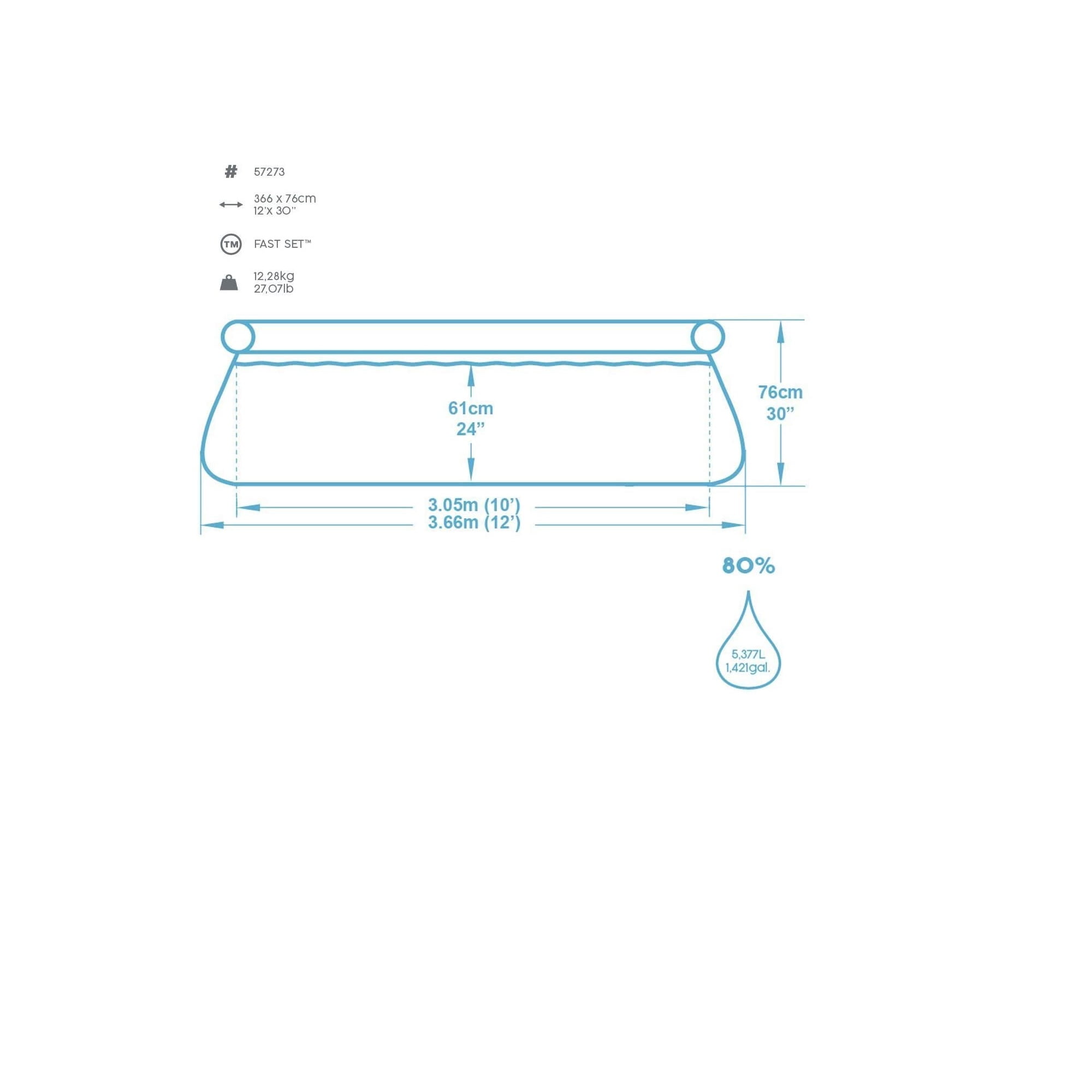 12 foot round inflatable easy set swimming pool Tri-Tech sidewalls made with 3 layers of PVC and mesh for higher resistance and stability Convenient and easy assembly within 10 minutes; No tools required Drain plug connects to garden hose so water can be drained away Includes a pool filter pump; ladder and pool cover not included