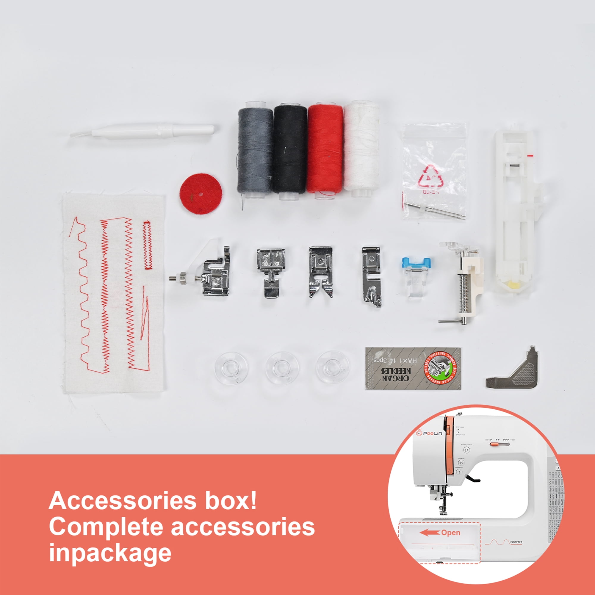 Poolin EOC2720 Homeuse Computerized Sewing Machine for business owner and designer – 293 Stitch Application & Extension Table, Come with Self Threading and Twin Needle. Better for helping your business grow faster and ensure the high efficiency.