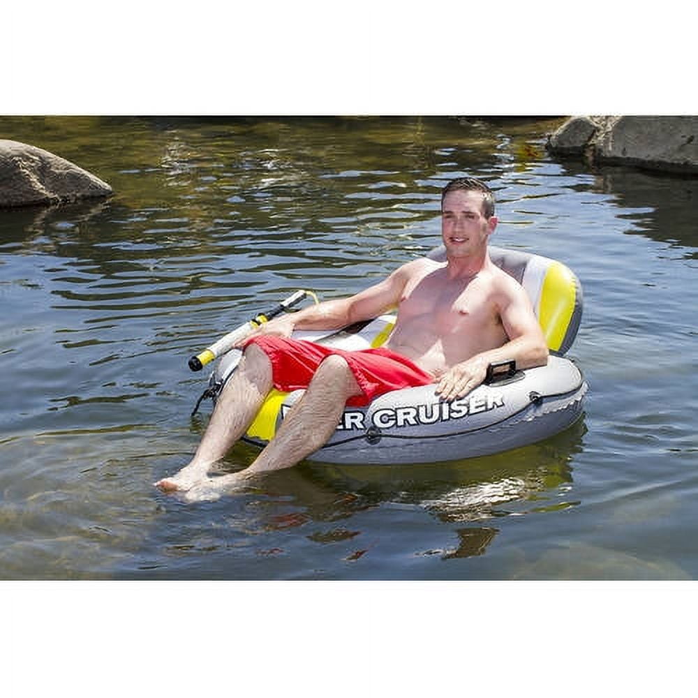 Lazy days on the river or lake call for this Poolmaster® 47″ DLX Cruiser tube! Constructed with on-the-water safety in mind, it’s designed with extra-strength 22-gauge vinyl, 2 inflatable air chambers within the seat, and an additional chamber in the oversized backrest. For added fun, an auto-fill launcher lets you have water wars with your fellow loungers.