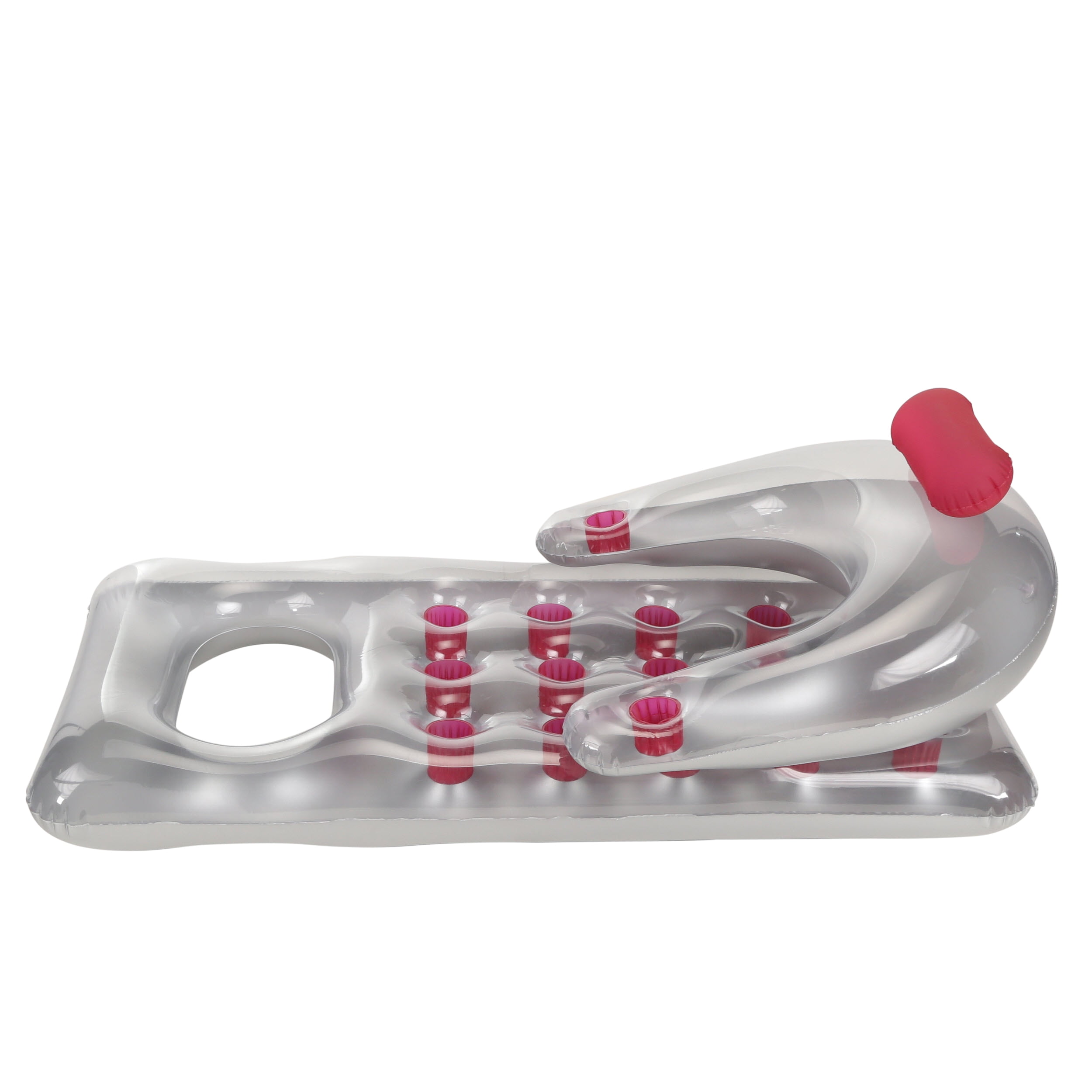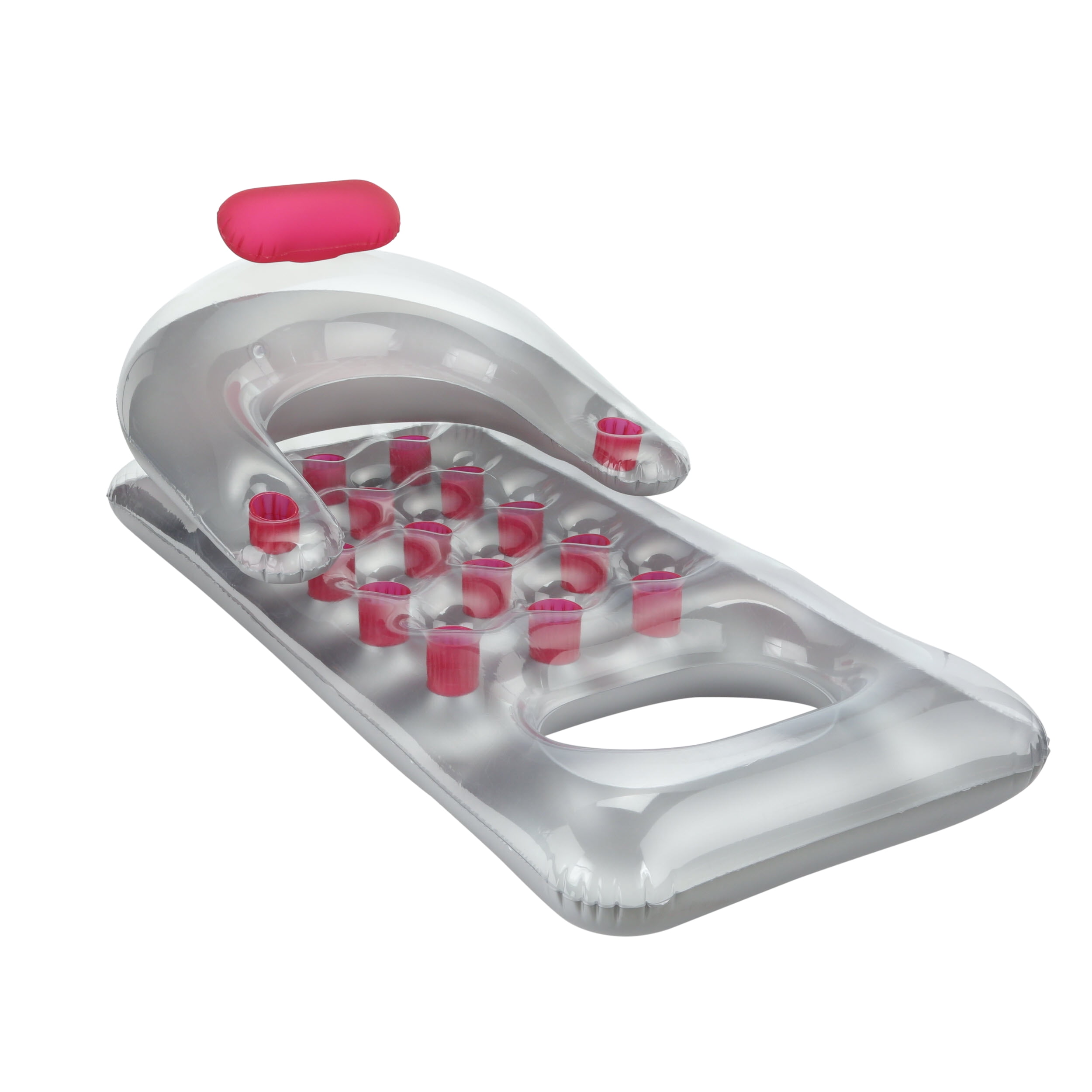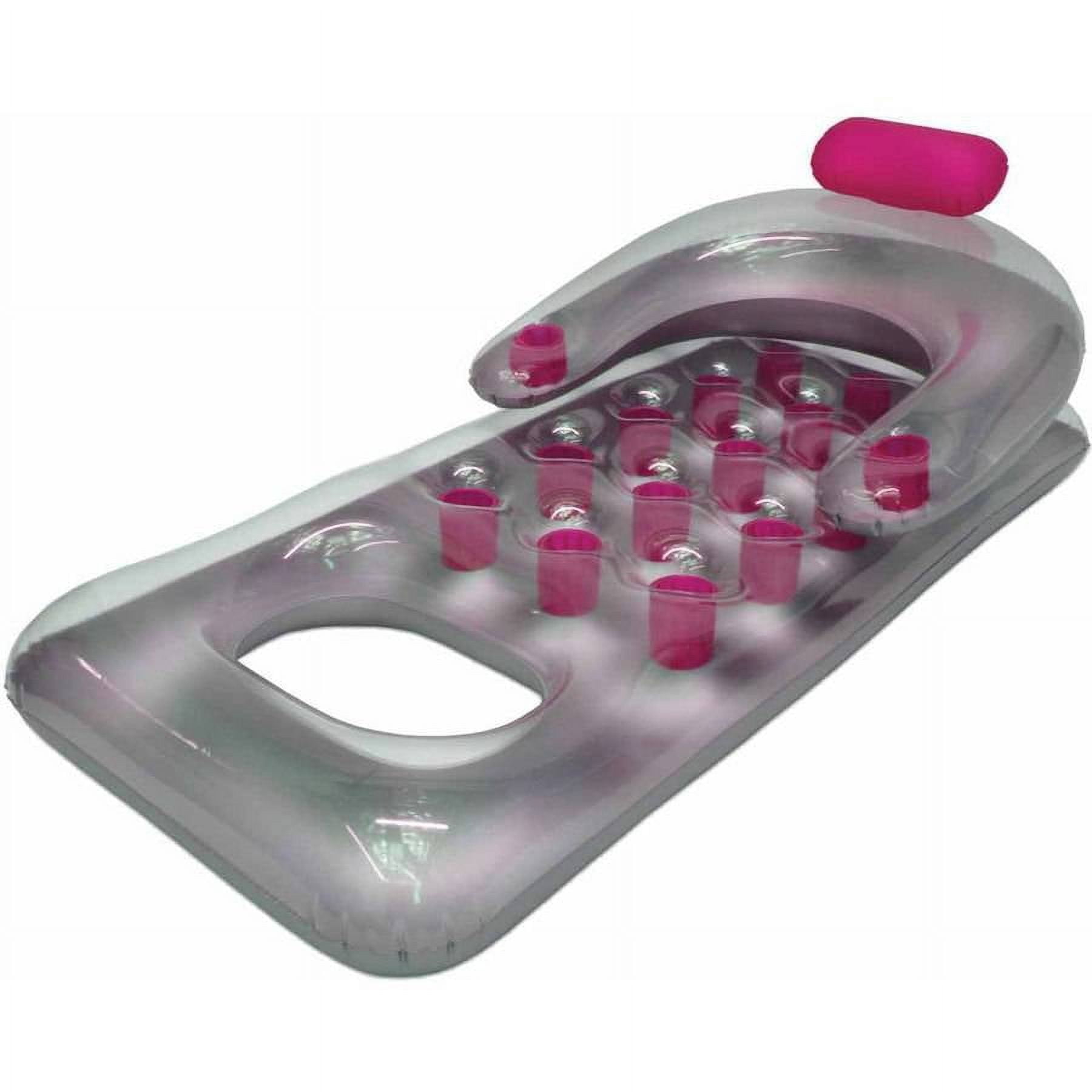 Cooling off in comfort is the objective and relaxation is the result when lounging in a Poolmaster float or lounger. The Poolmaster French Classic Lounger is constructed with a reflective-style vinyl bottom and clear vinyl top that features 15 pockets in bright contrasting colors. An open leg rest, roll style head rest and large contoured back/arm rest with built-in beverage holders create ultimate comfort. It is made with 11-gauge vinyl and available in two assorted colors of pink and blue. It is built for the serious backyard vacationer and can satisfy even the most discriminating pool enthusiast! Enjoy a day of relaxation and floating with your friends and family with these loungers from Poolmaster.