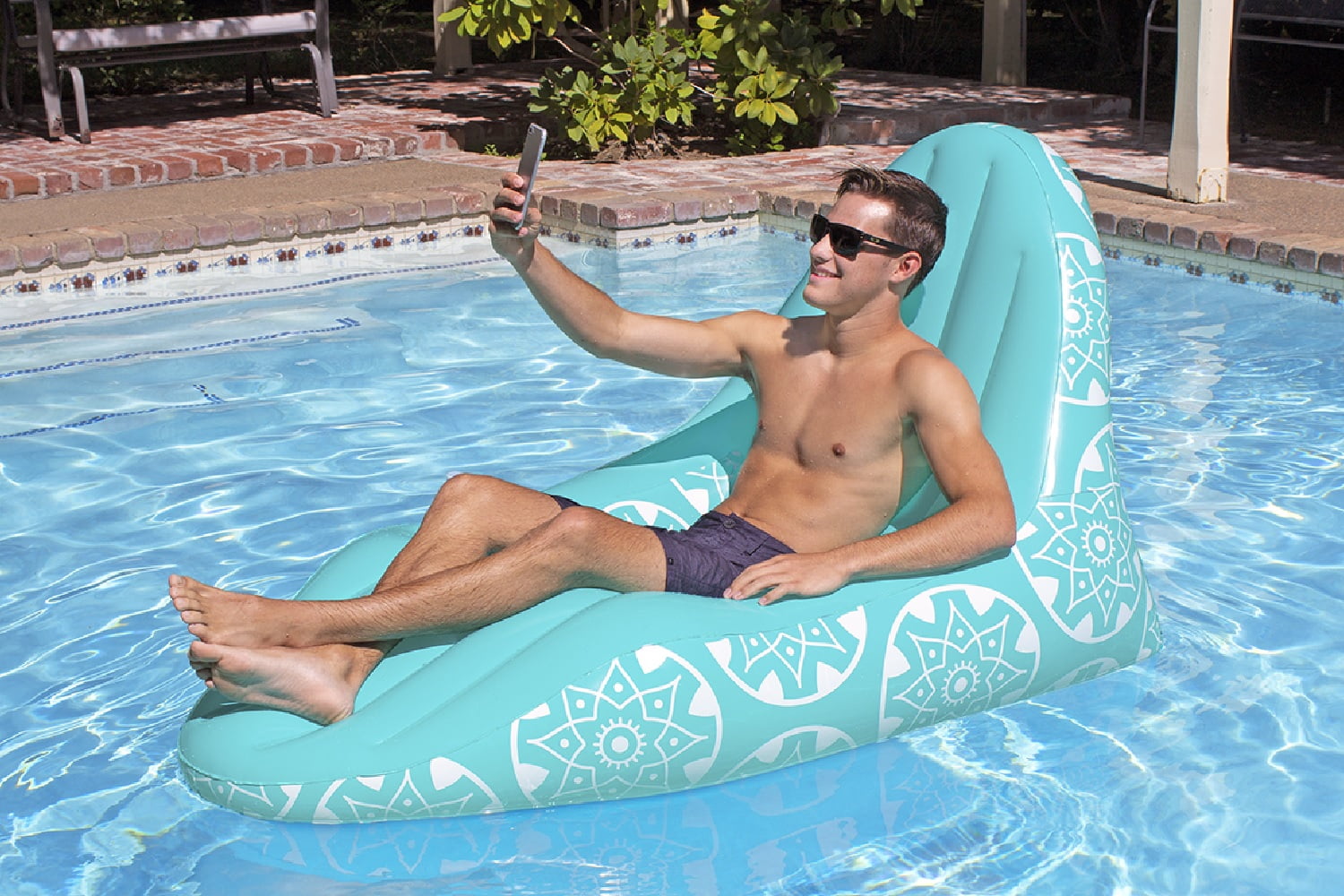 Deluxe contoured lounge is oversized and designed to fit all body shapes Wide-body design provides water stability; includes integrated soft beverage pocket Contoured shape provides a comfortable ergonomic lounging position Includes easy inflate / deflate valve; constructed with durable 12-gauge vinyl Enjoy as a water lounge, poolside lounge, or indoor lounge; recommended for adults 60 long x 34 wide-inches, deflated Recommended for adults Please Note: This item contains a single swimming pool float.