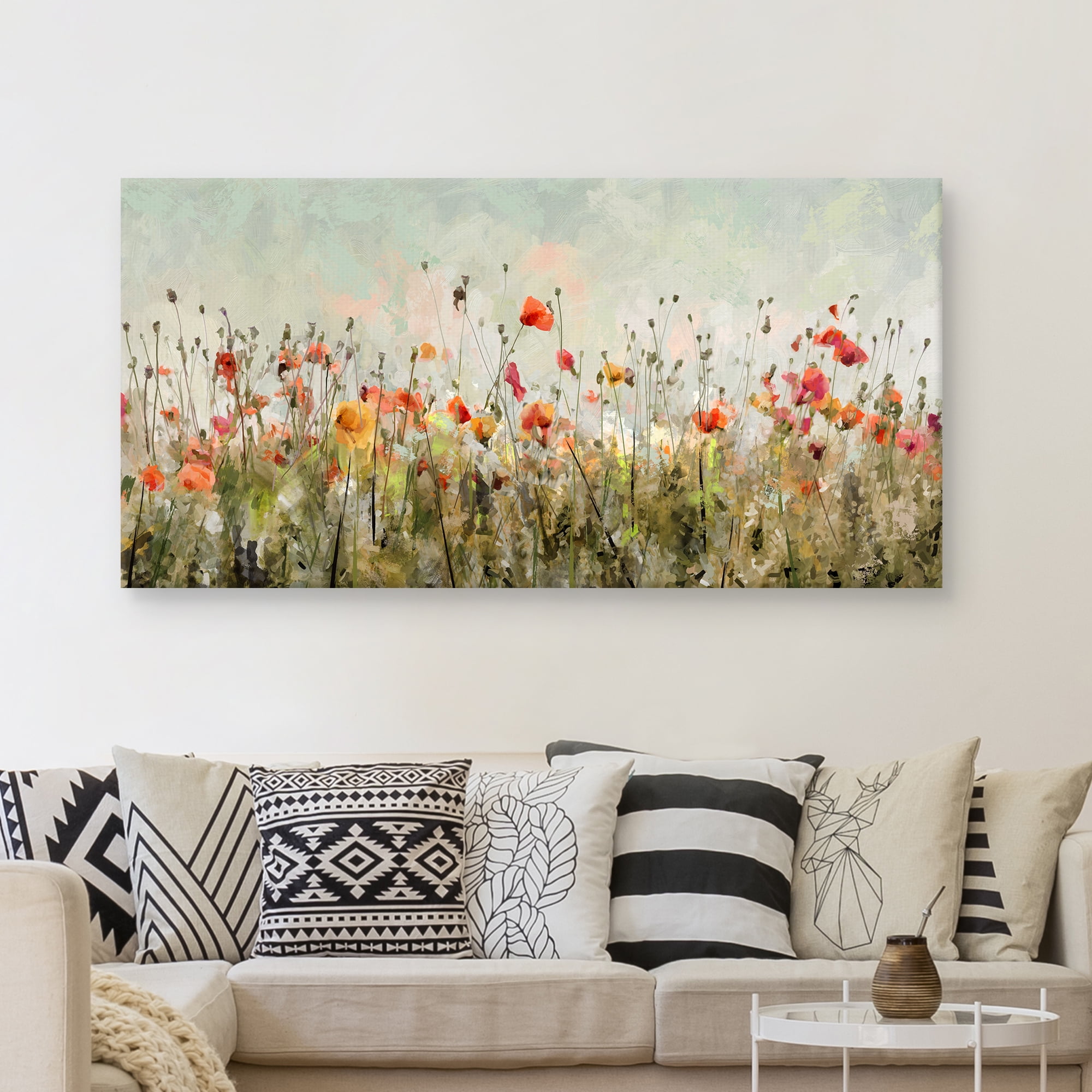 Poppy field floral art Imported Gallery wrapped canvas Great for home or office decor Lightweight Wipes clean