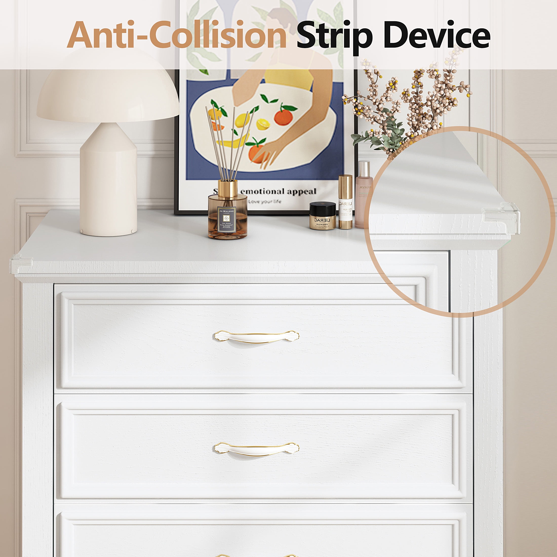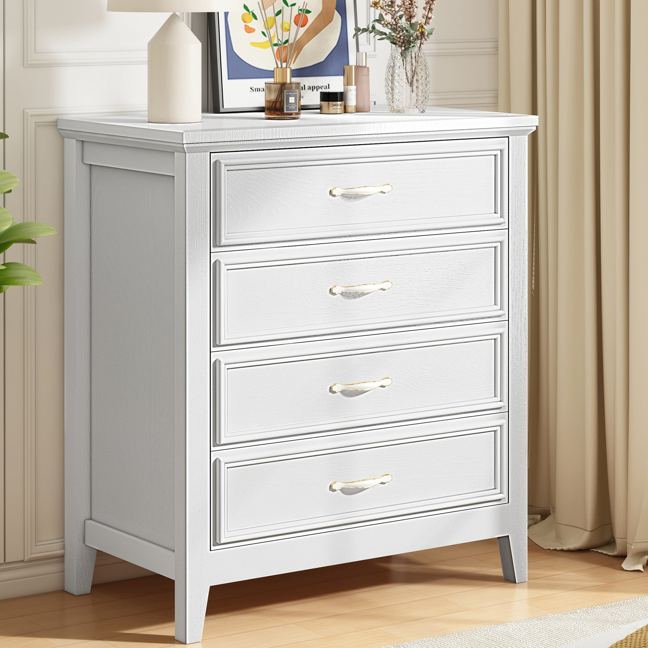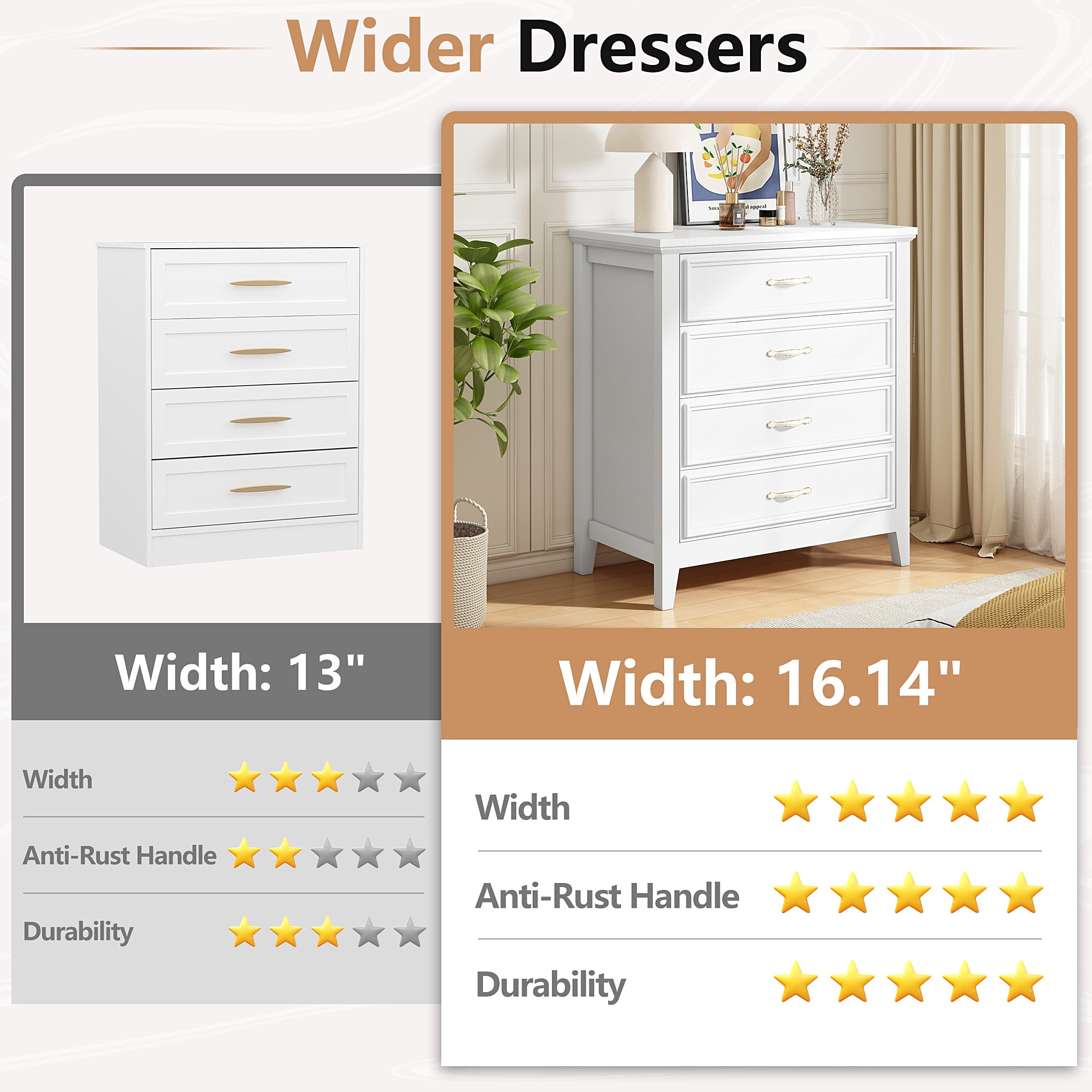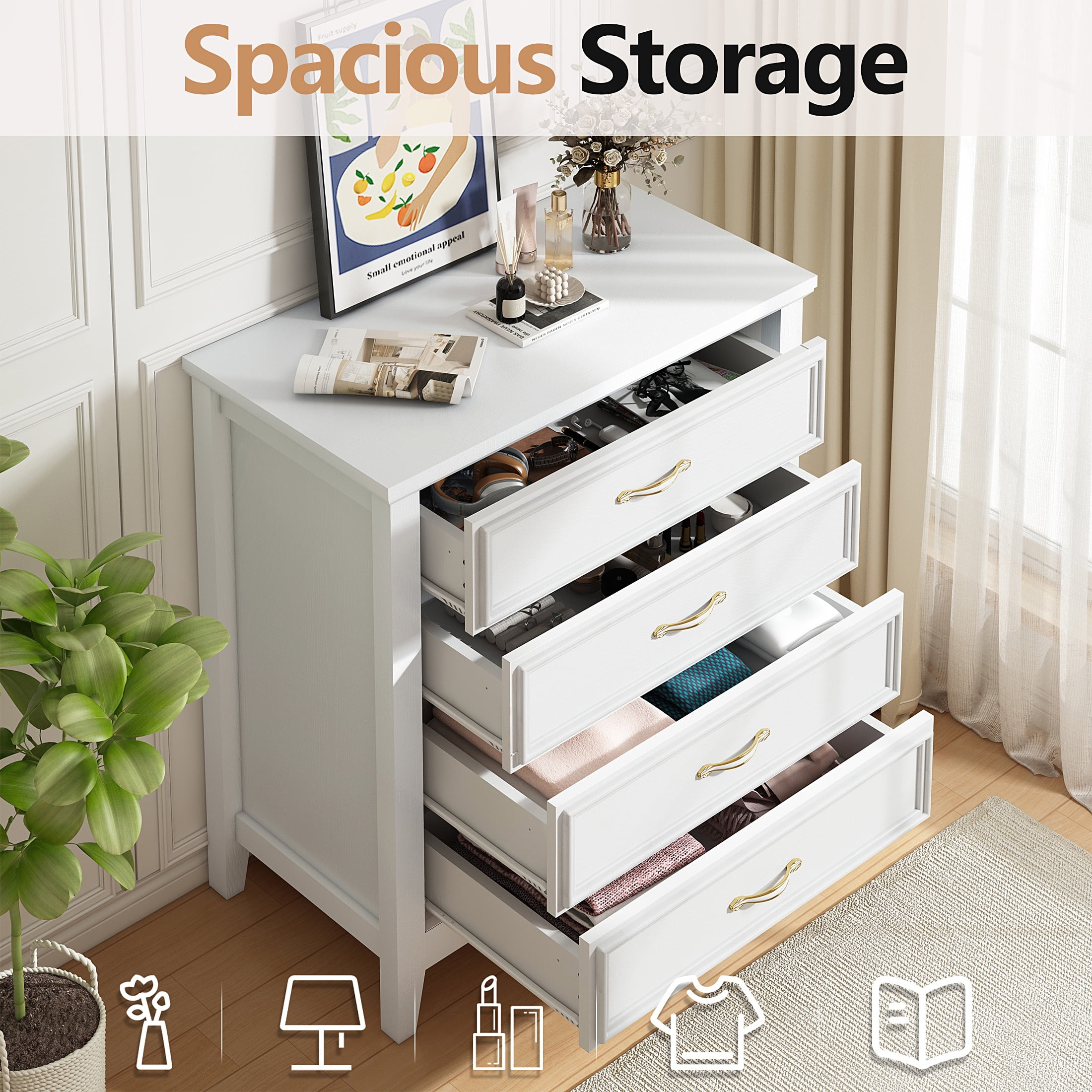 PORKISS 4 Drawer Dresser for Bedroom, Wood Chest of Drawers with Anti-Collision Device, Modern Storage Cabinet Dresser Organizer with Metal Handle for Closet, Living Room, Hallway, White