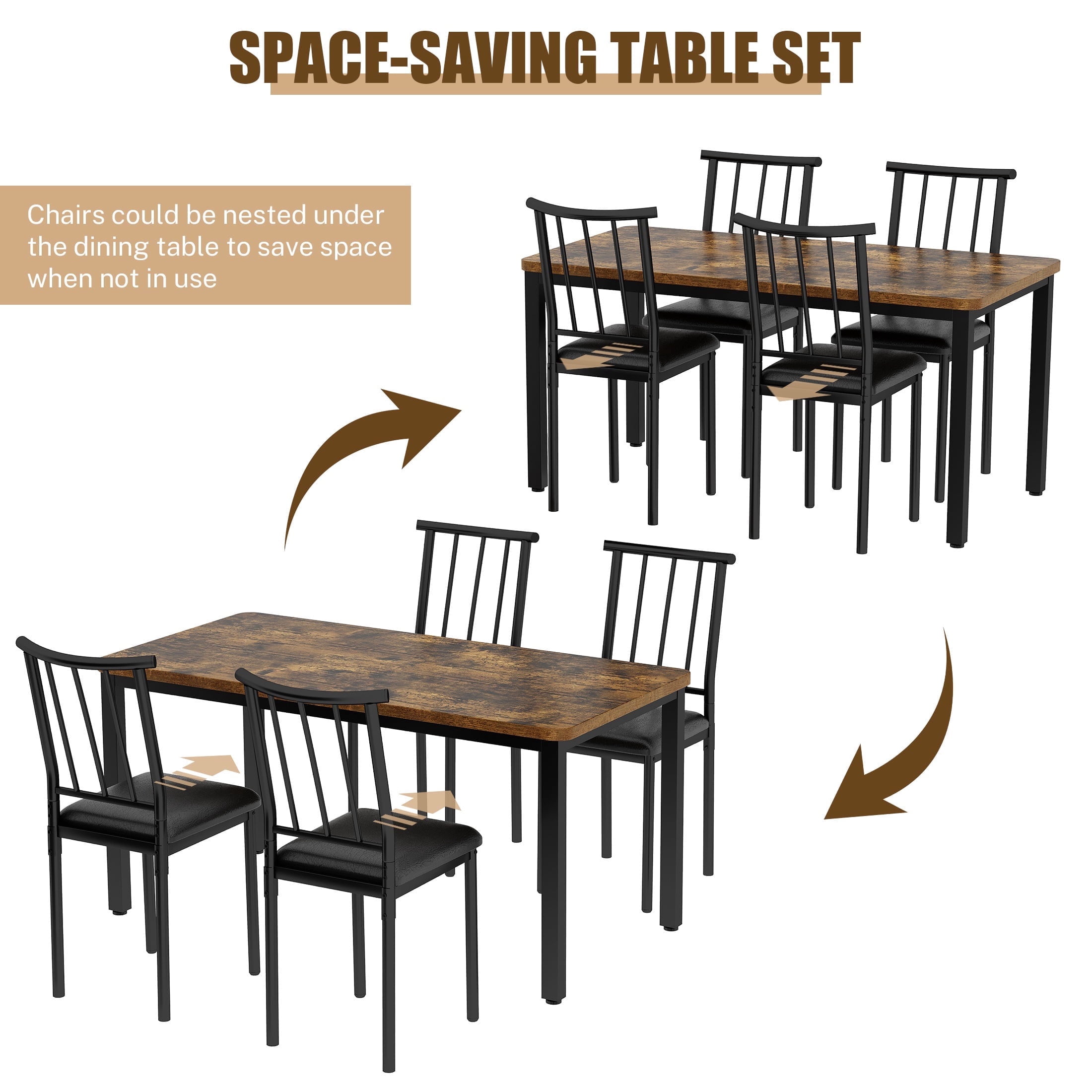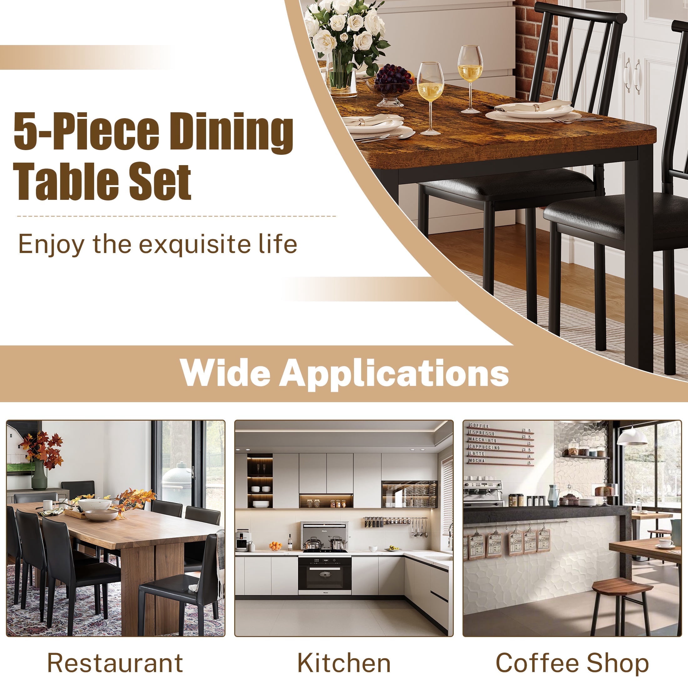 PORKISS Dining Table Set for 4, Modern Dining Table with 4 PU Leather Chairs, Modern Kitchen Table Set with Storage for Breakfast Nook, Cafeteria Dining Room, Brown+Black