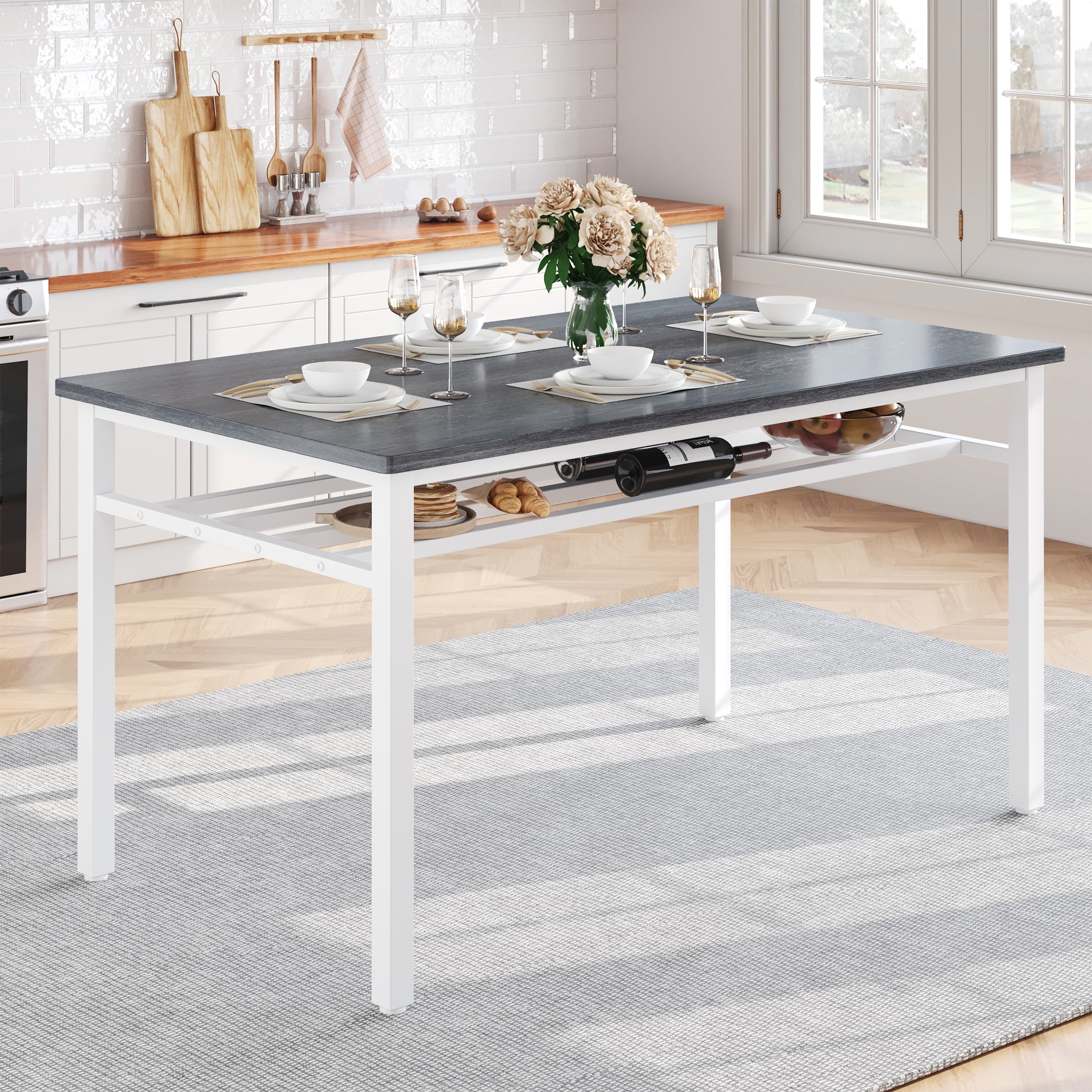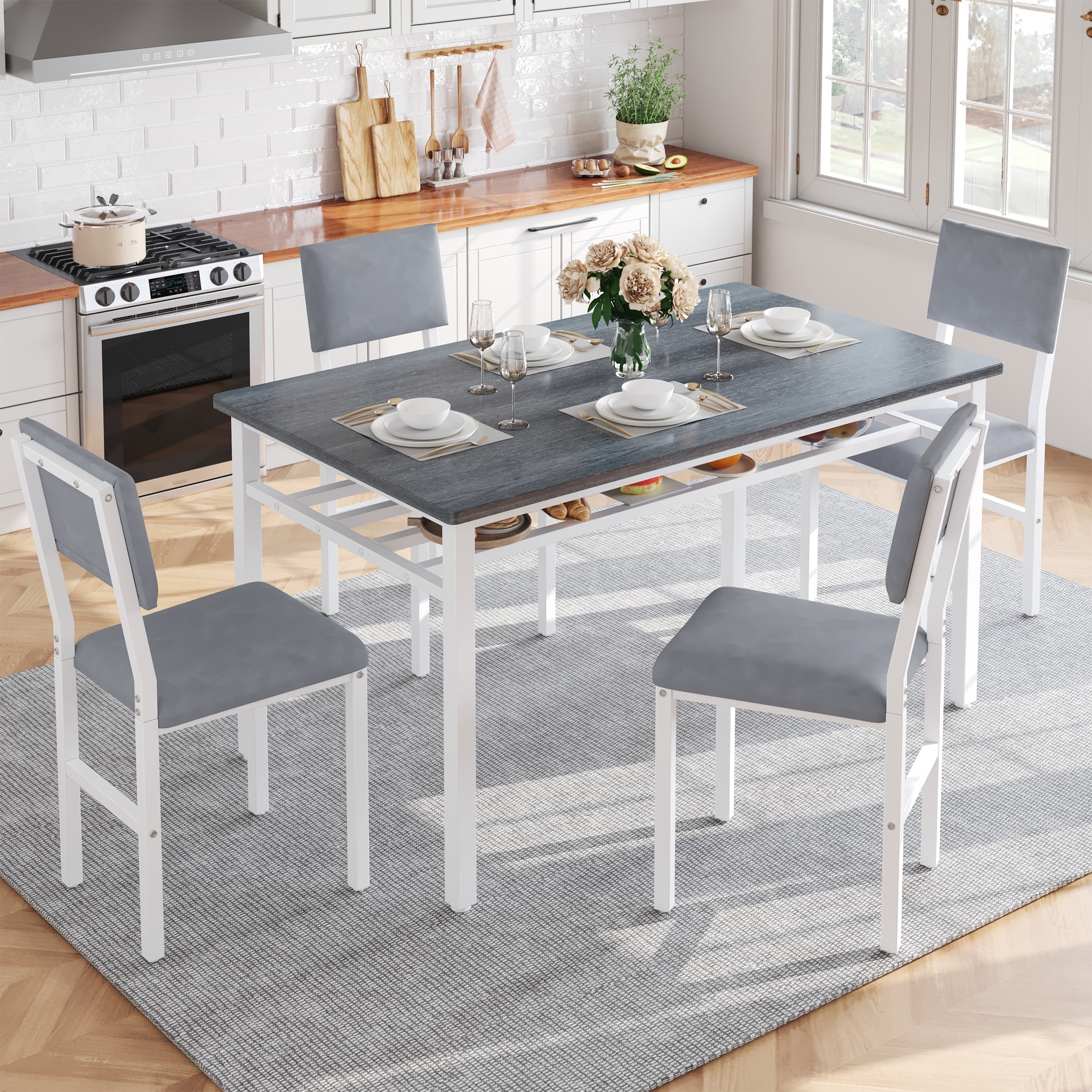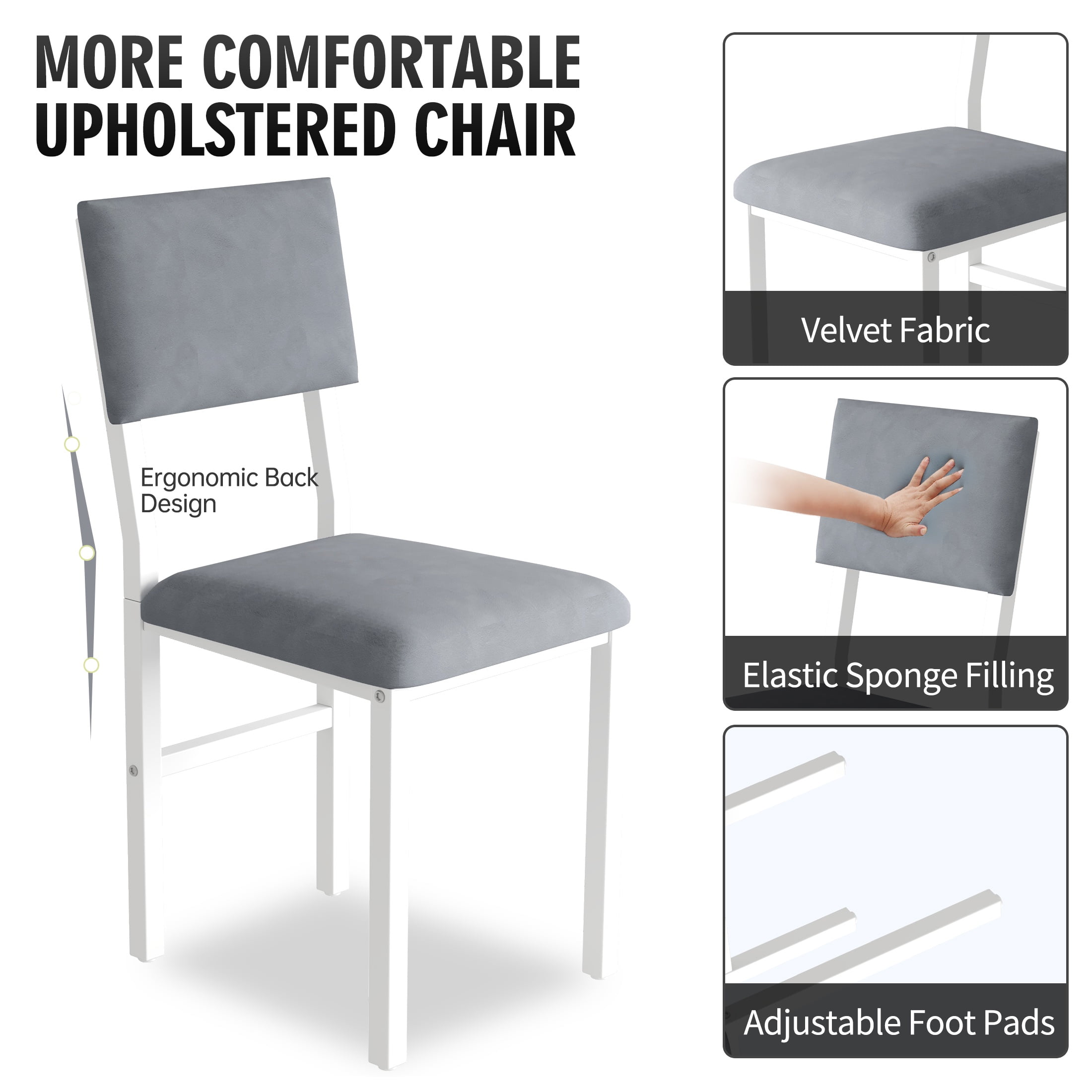 PORKISS Dining Table Set for 4, Modern Dining Table with 4 Velvet Chairs, Modern Kitchen Table Set with Storage for Breakfast Nook, Cafeteria Dining Room, Gray+White