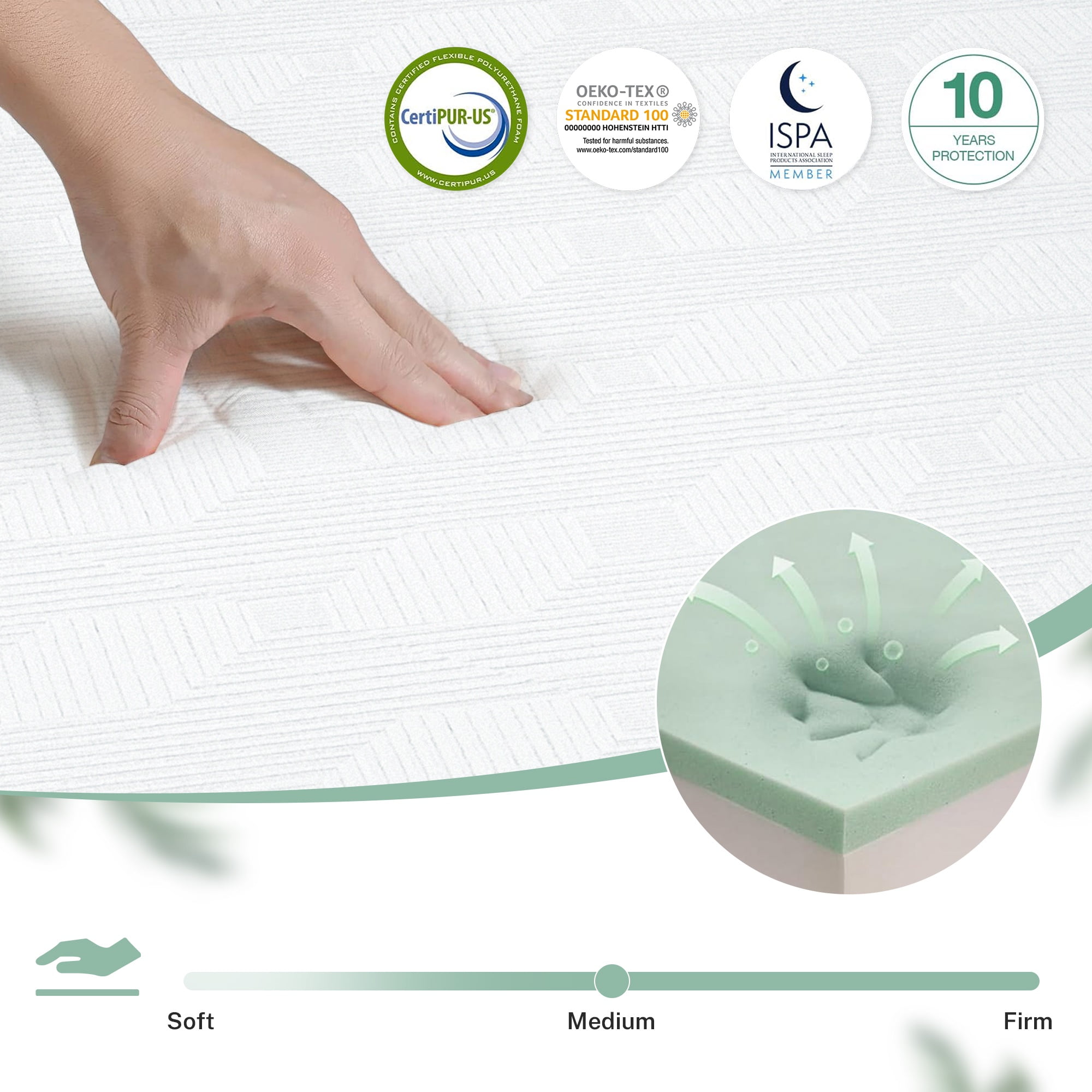 Optimal Cooling and Breathability – Stay cool and comfortable all night long with our cooling memory foam mattress. The breathable knitted fabric cover enhances airflow and provides a soft, luxurious feel. It’s the perfect choice for those seeking a refreshing sleep experience. Designed for All Sleepers – Whether you sleep on your back, side, or stomach, this medium-firm mattress offers balanced support and pressure relief. The layered foam construction adapts to your body, alleviating back pain and stiffness while promoting muscle relaxation. Safe and Eco-Friendly – Rest easy with a mattress free from fiberglass and harmful chemicals. The CertiPUR-US-certified memory foam meets rigorous standards for content, emissions, and durability, ensuring a safe and odorless sleep environment for you and your family. Convenient Setup and Maintenance – The PORKISS mattress comes compressed in a box for easy transportation and setup. It quickly expands to its original shape in 48-72 hours and is compatible with any solid surface. The zippered cover allows for simple, spot-cleaning maintenance. Durability Backed by Warranty – Invest in a mattress designed for long-lasting performance with the Flex Support Base Foam providing durability and stability. Enjoy peace of mind with a 10-year limited warranty, reflecting our commitment to quality and your satisfaction in sleep comfort. Age Group: All Ages, Universal.