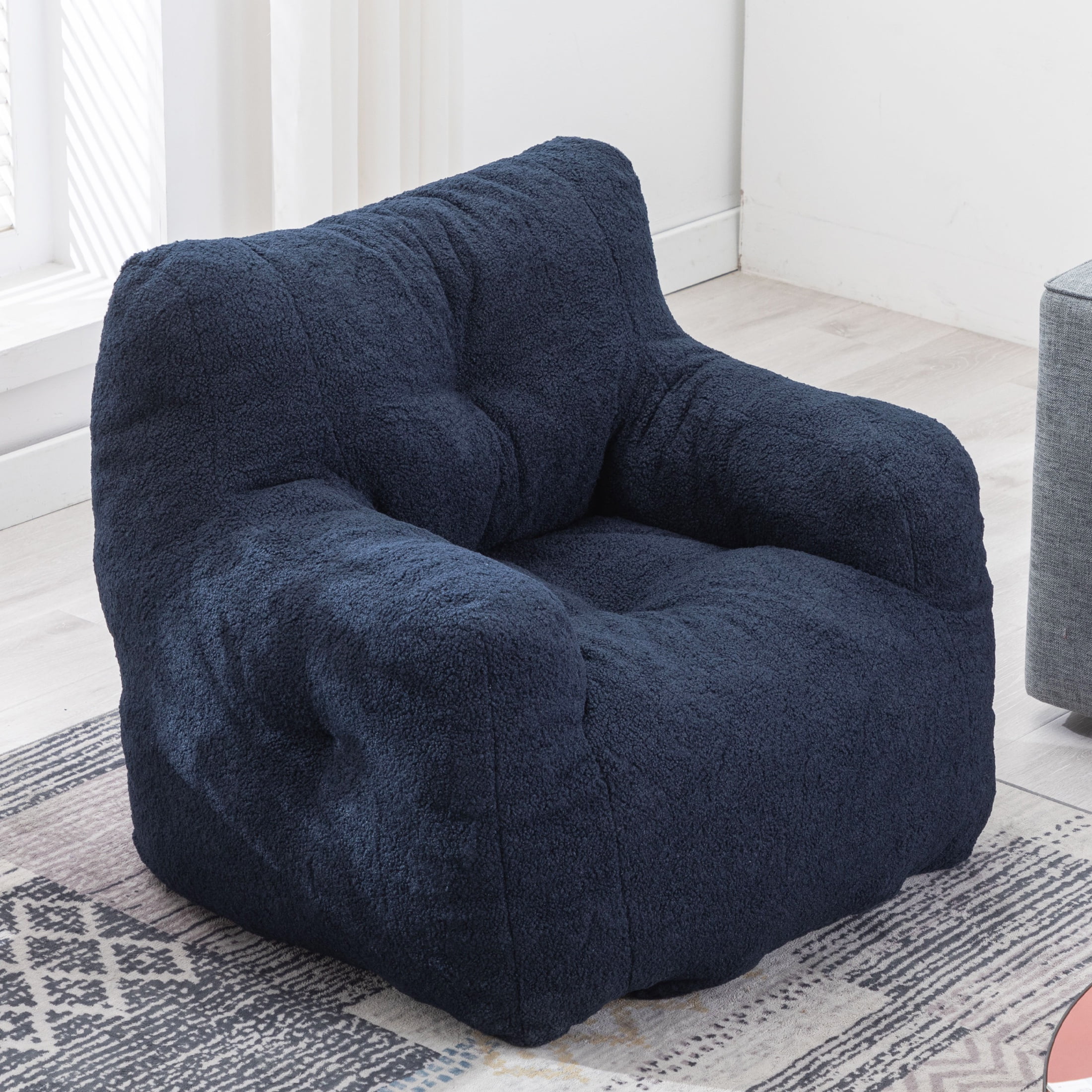 PORKISS Bean Bag Chair for Teens & Kids, Soft Foam Lazy Sofa with Teddy Fabric, Single Leisure Sofa Chair for Dorm Bedroom Living Room, Blue