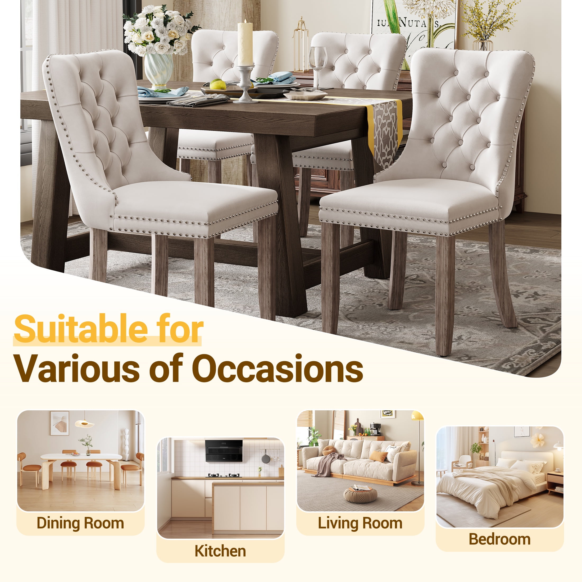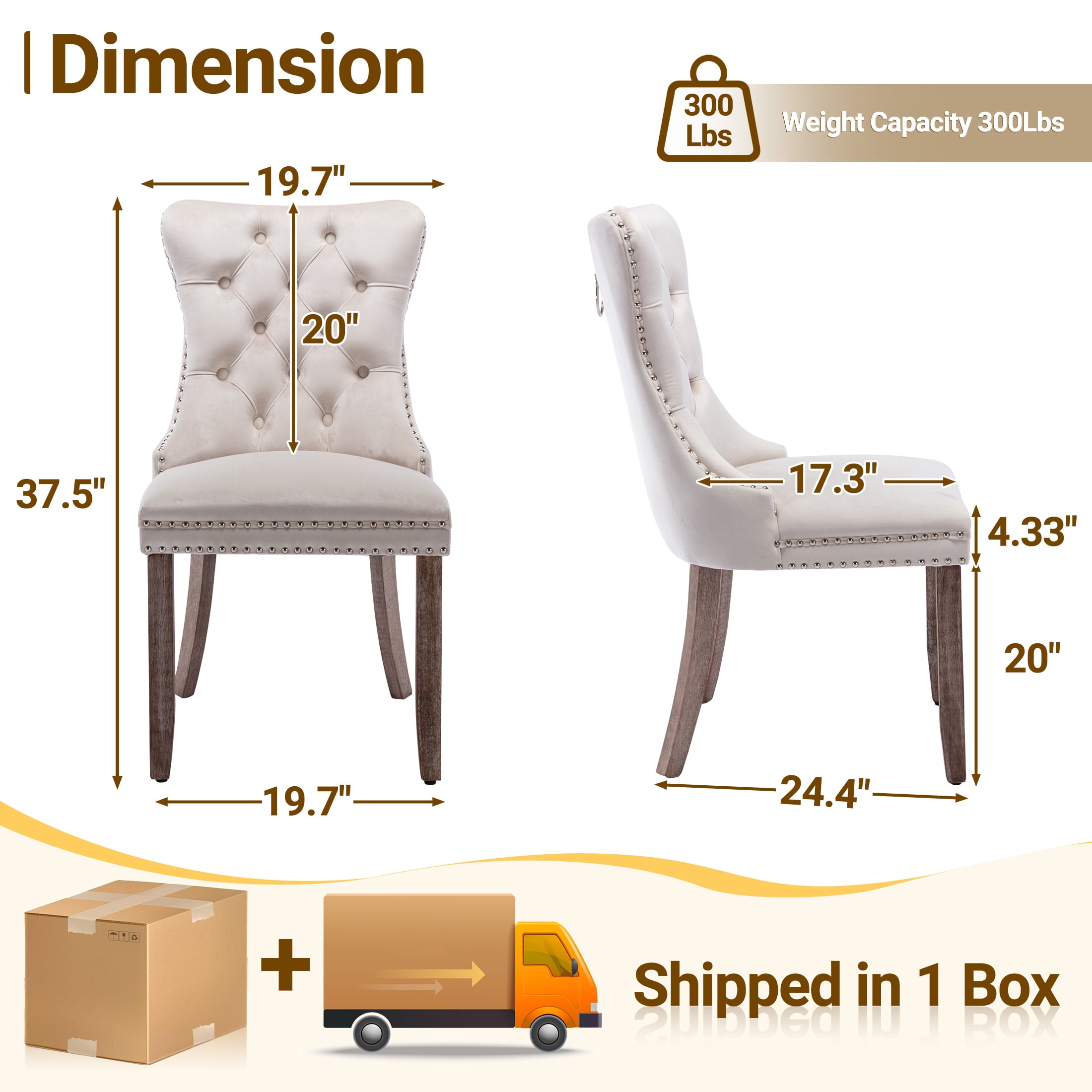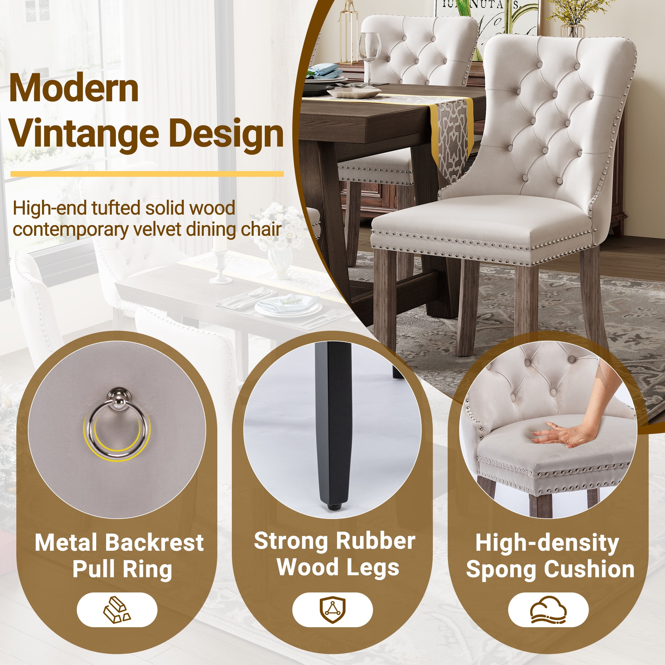 Paproos Dining Chairs Set of 2, Upholstered High-End Tufted Dining Room Chair with Back Ring and Nailhead Trim, Modern Velvet Kitchen Chairs with Solid Wood Legs for Kitchen, Home, Beige