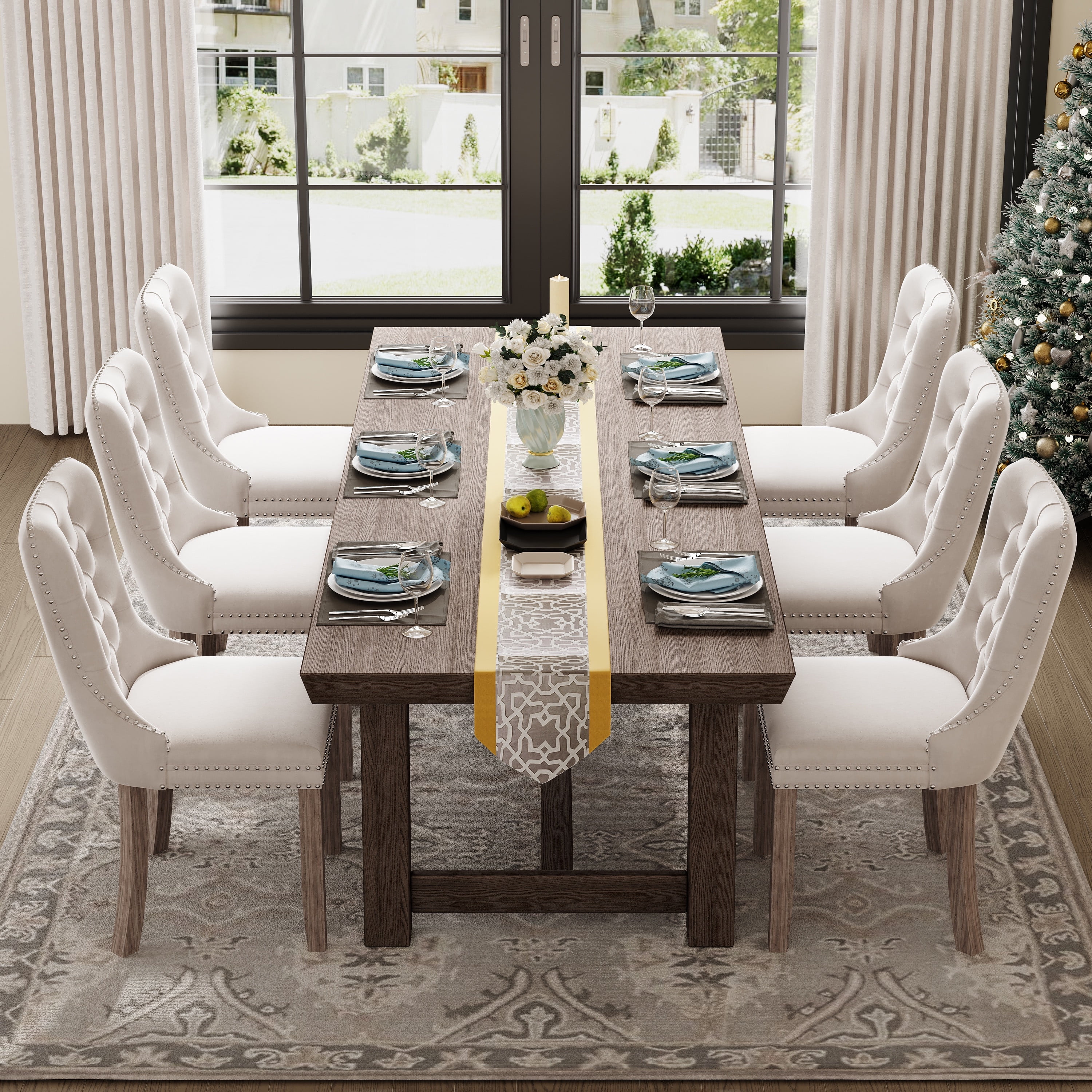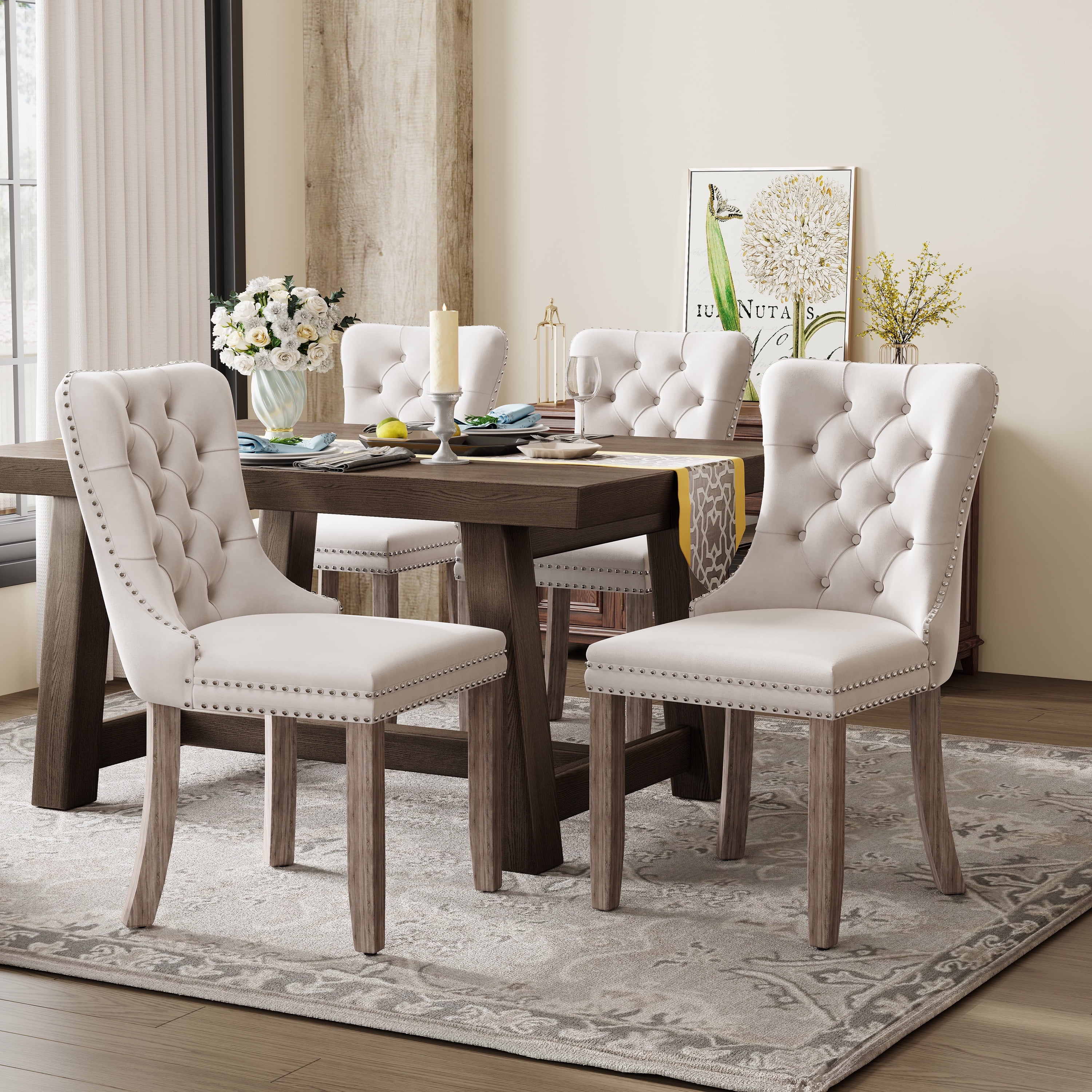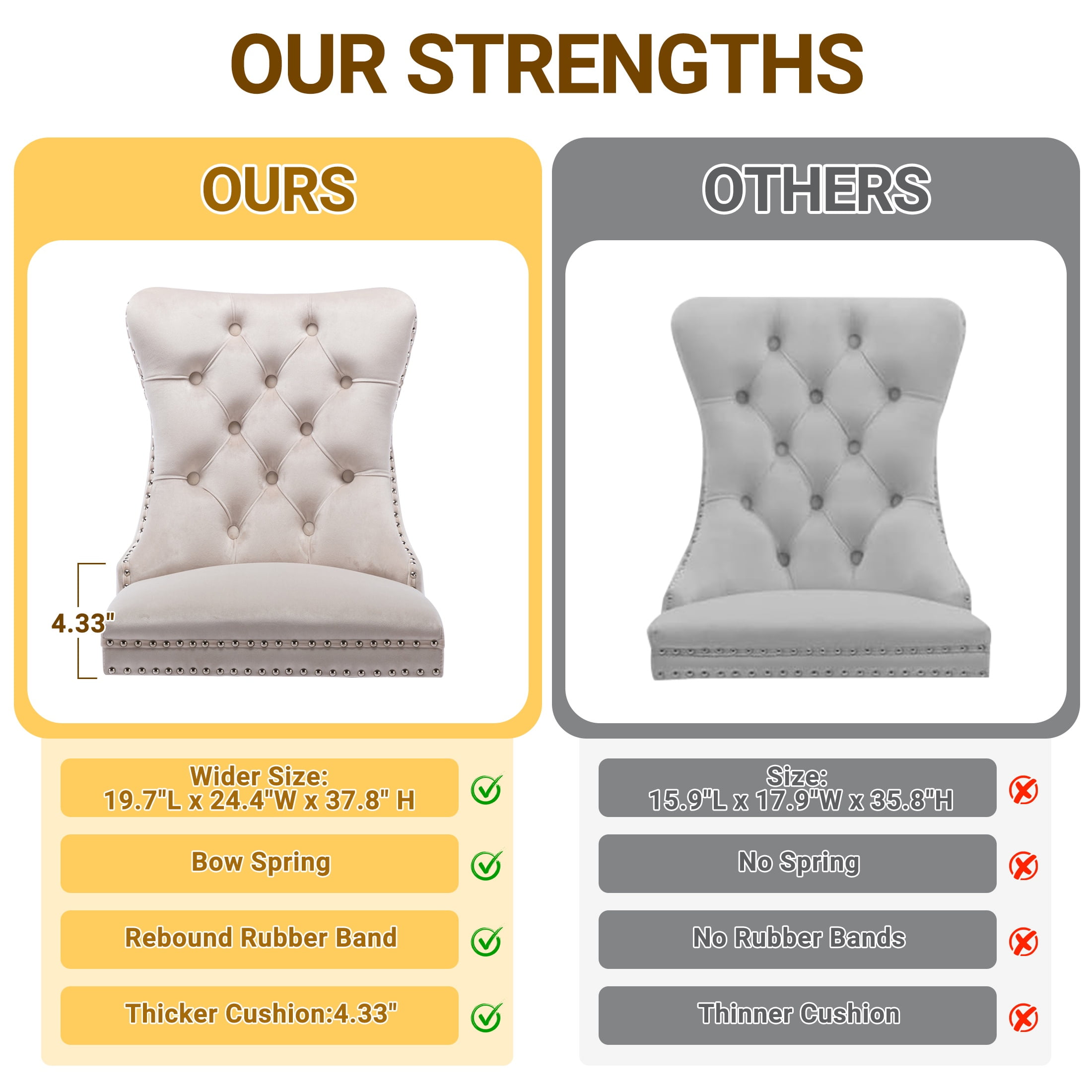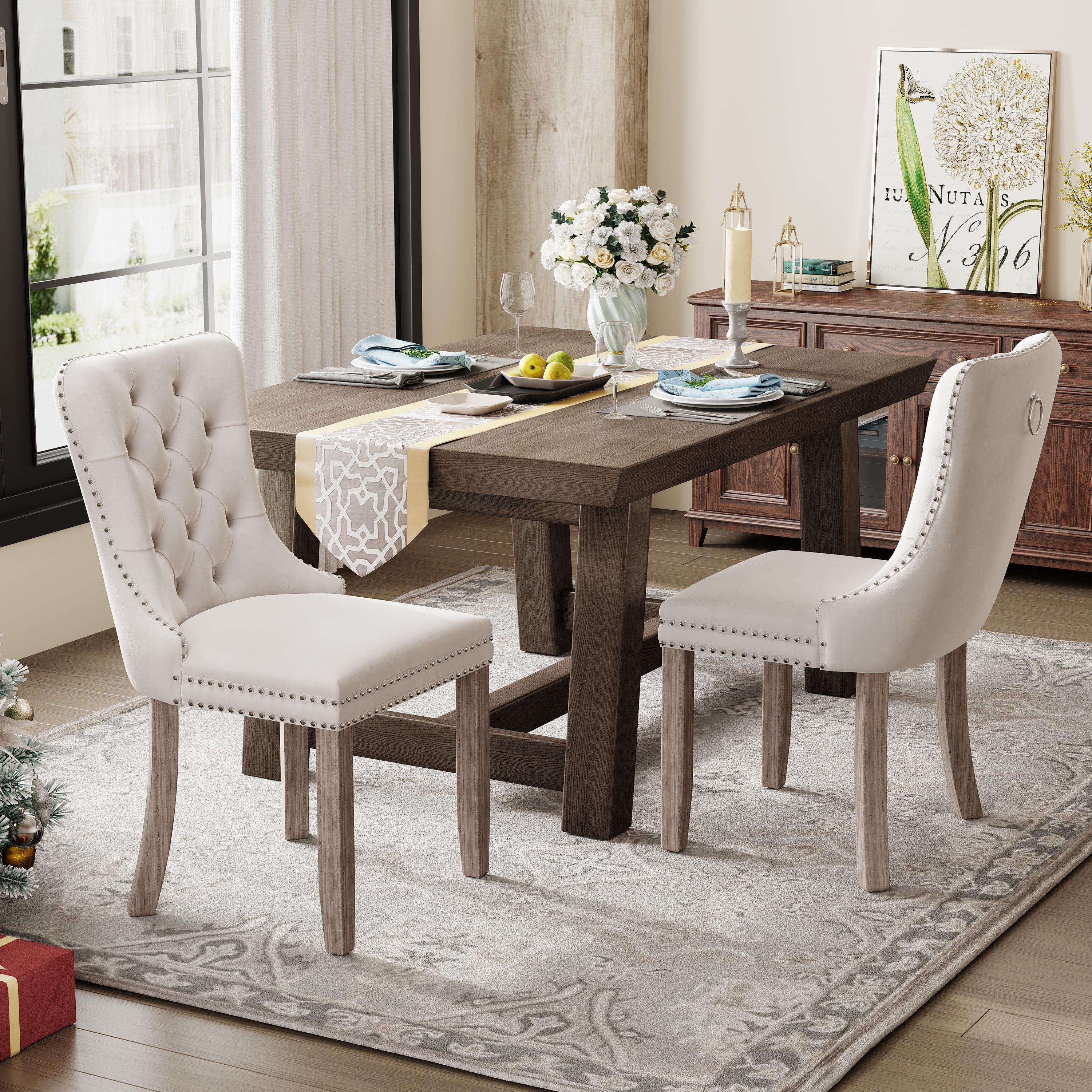 Paproos Dining Chairs Set of 2, Upholstered High-End Tufted Dining Room Chair with Back Ring and Nailhead Trim, Modern Velvet Kitchen Chairs with Solid Wood Legs for Kitchen, Home, Beige